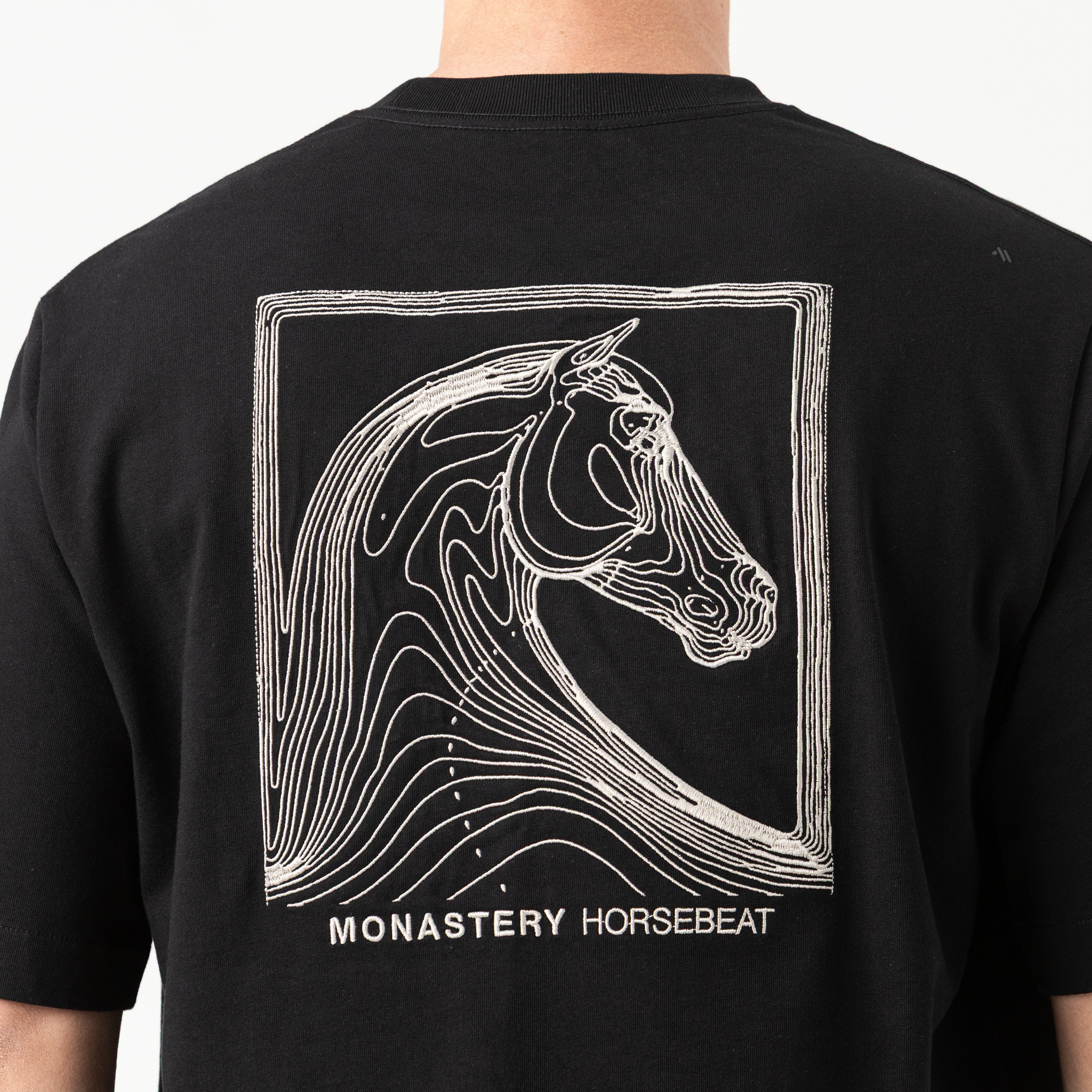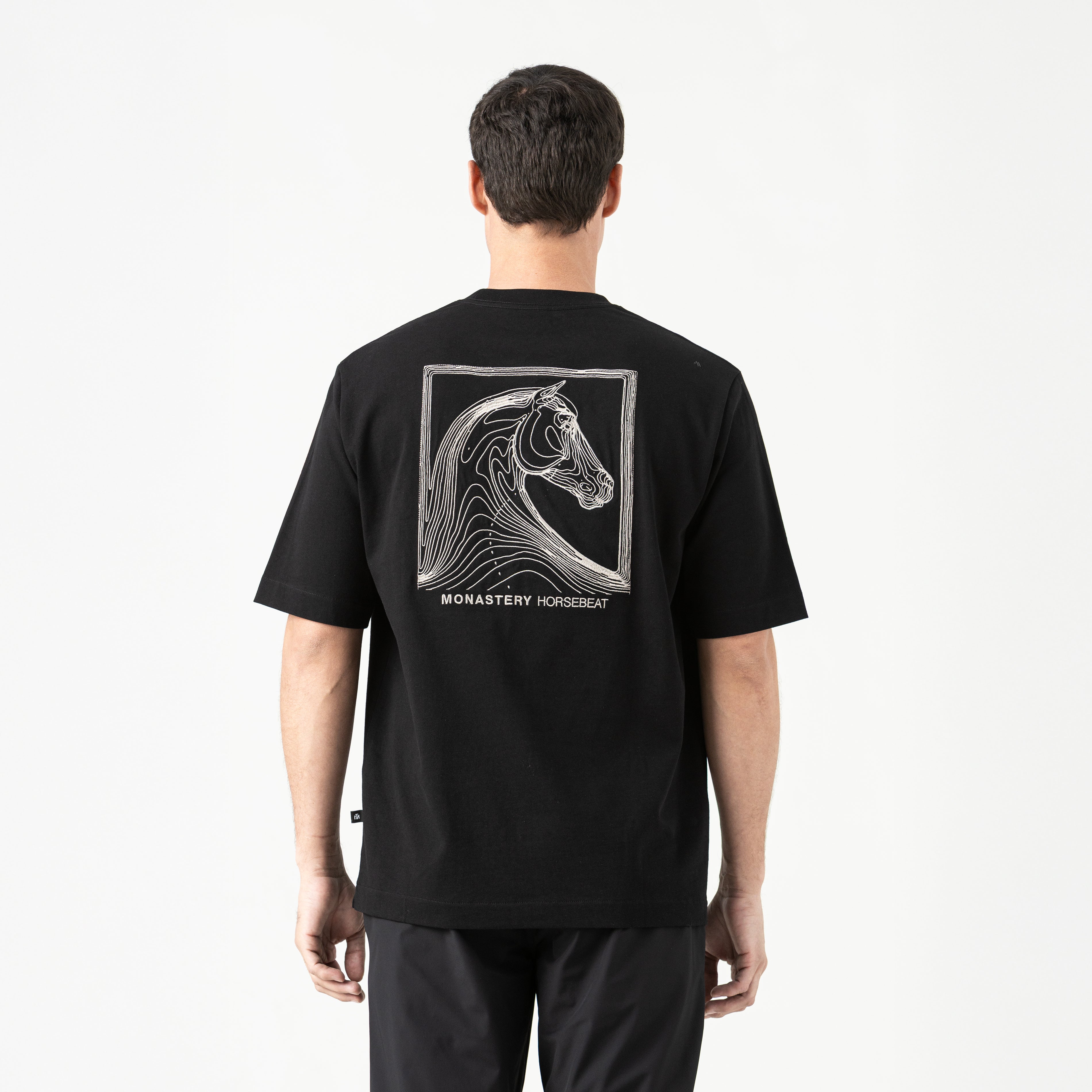 An oversized T-shirt, this piece speaks of restrained strength and inner movement. Crafted from Monastery 2 fabric, this oversized silhouette T-shirt offers body, presence, and a polished structure that adapts to the contemporary language of masculine luxury. On the front, a PU appliqué, a technical element, interrupts the natural texture of the cotton. On the back, an embroidery symbolizes freedom, dominance, and restrained elegance, executed with defined lines and a sculptural character. The 2.5 cm ribbed collar completes the garment with a sober balance. 7C is for the man who inhabits the contradiction between the wild and the controlled.