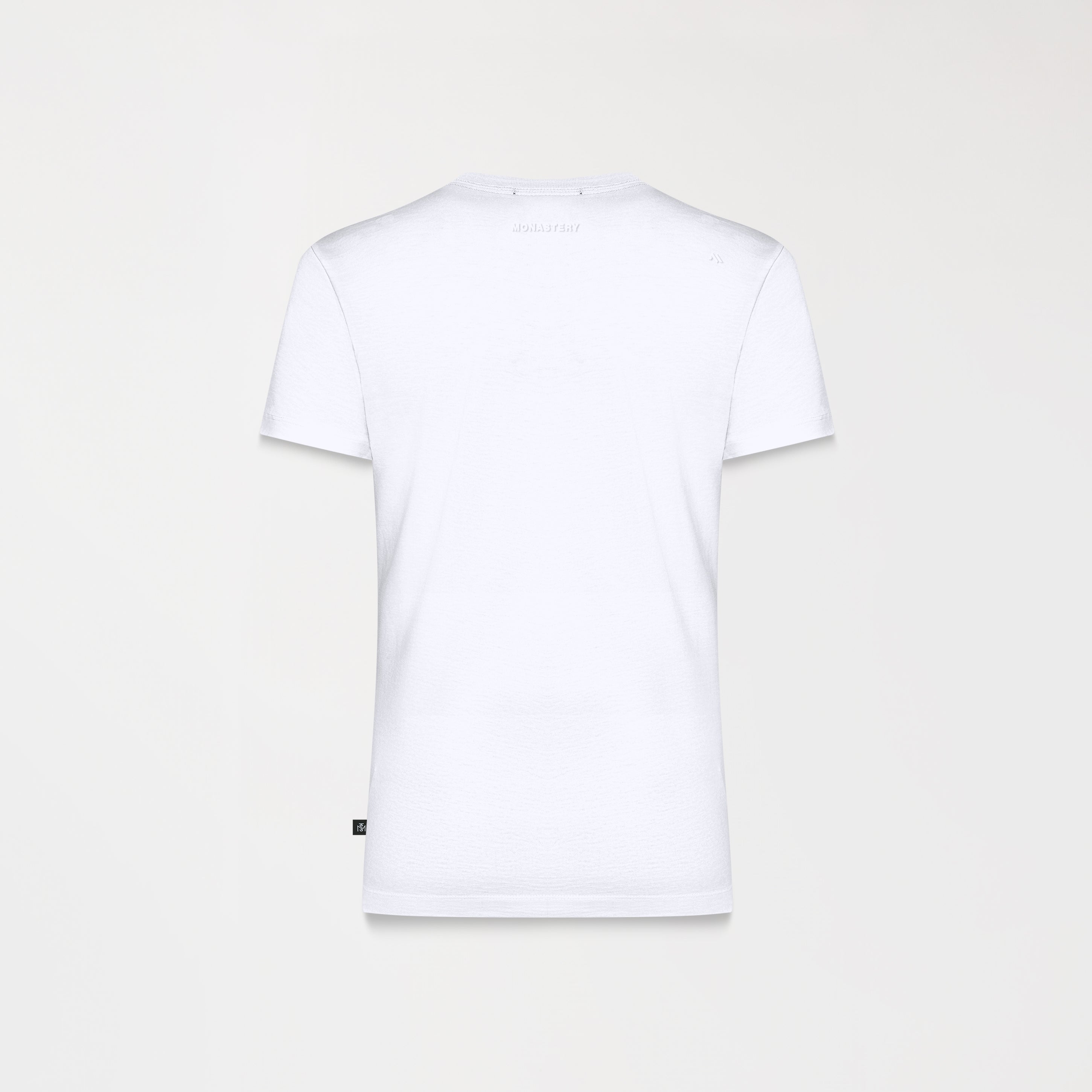 Anya is a feminine T-shirt made from high-quality pima cotton, designed with a regular silhouette that provides comfort and versatility for the Monastery woman. On the front, it combines flat embroidery and flat print, creating a refined visual detail. On the back, it features a tone-on-tone flat print that adds subtlety and cohesion to the design. Ideal for elevated casual looks or to complement minimalist styles with a distinctive touch.