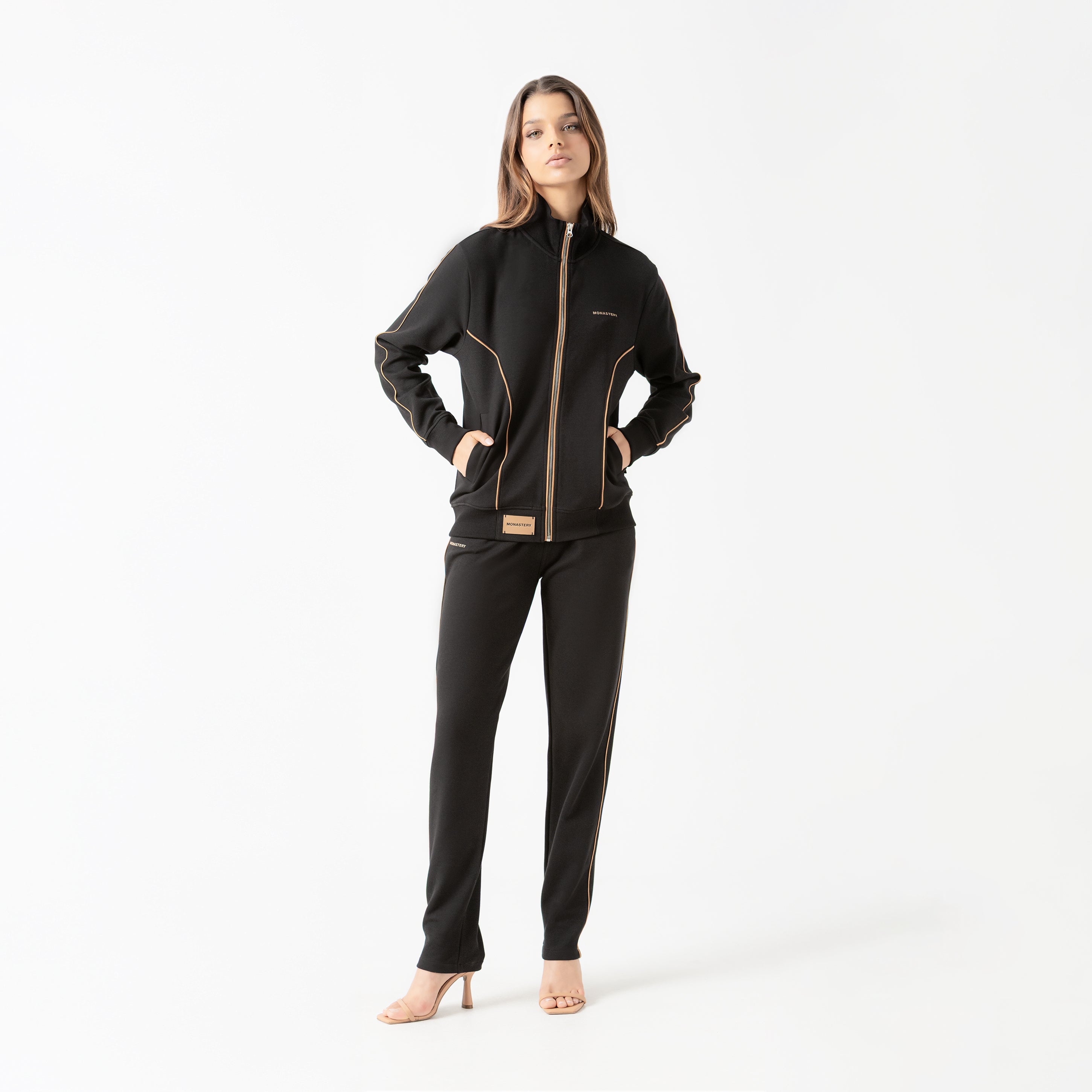 A sporty set consisting of a jacket and pants, designed with contrasting side stripes in a collection color that add style and visual appeal.