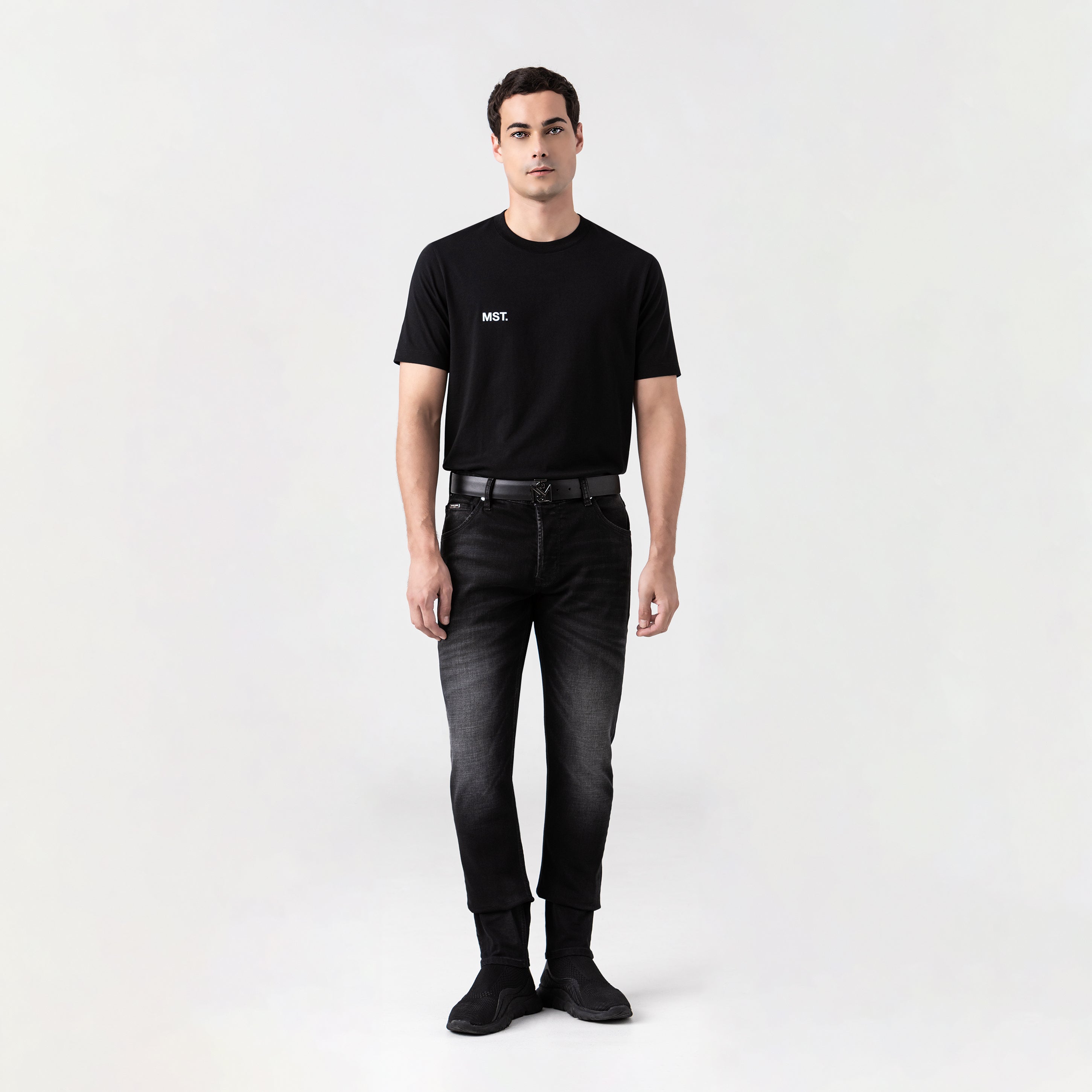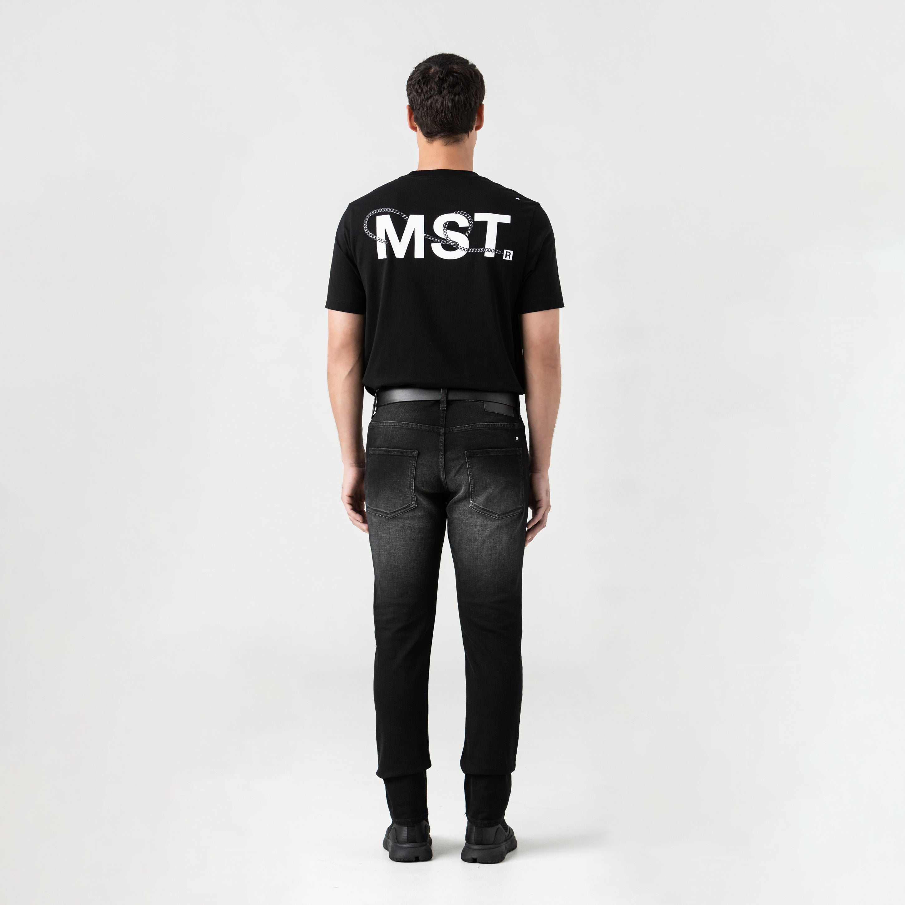 Jeans made from MST denim OL, an exclusive Monastery fabric that guarantees body, durability, and a firm feel. Its dark, distressed tone adds depth and defined character. The shiny silver metal hardware, all countermarked Monastery, is precisely integrated into the design. On the back, a countermarked black claw reinforces the brand's identity. An essential piece, designed to last and stand out in every detail.