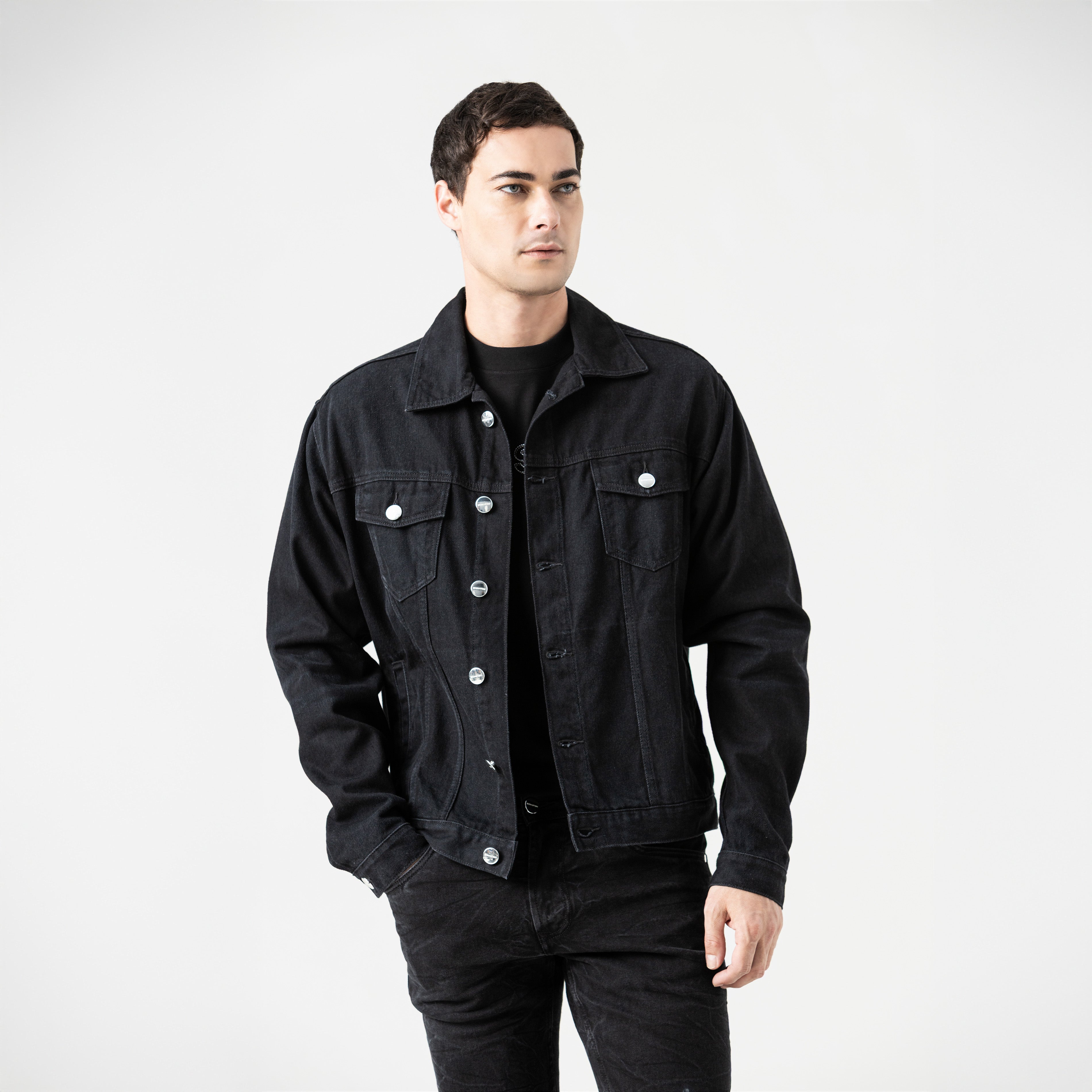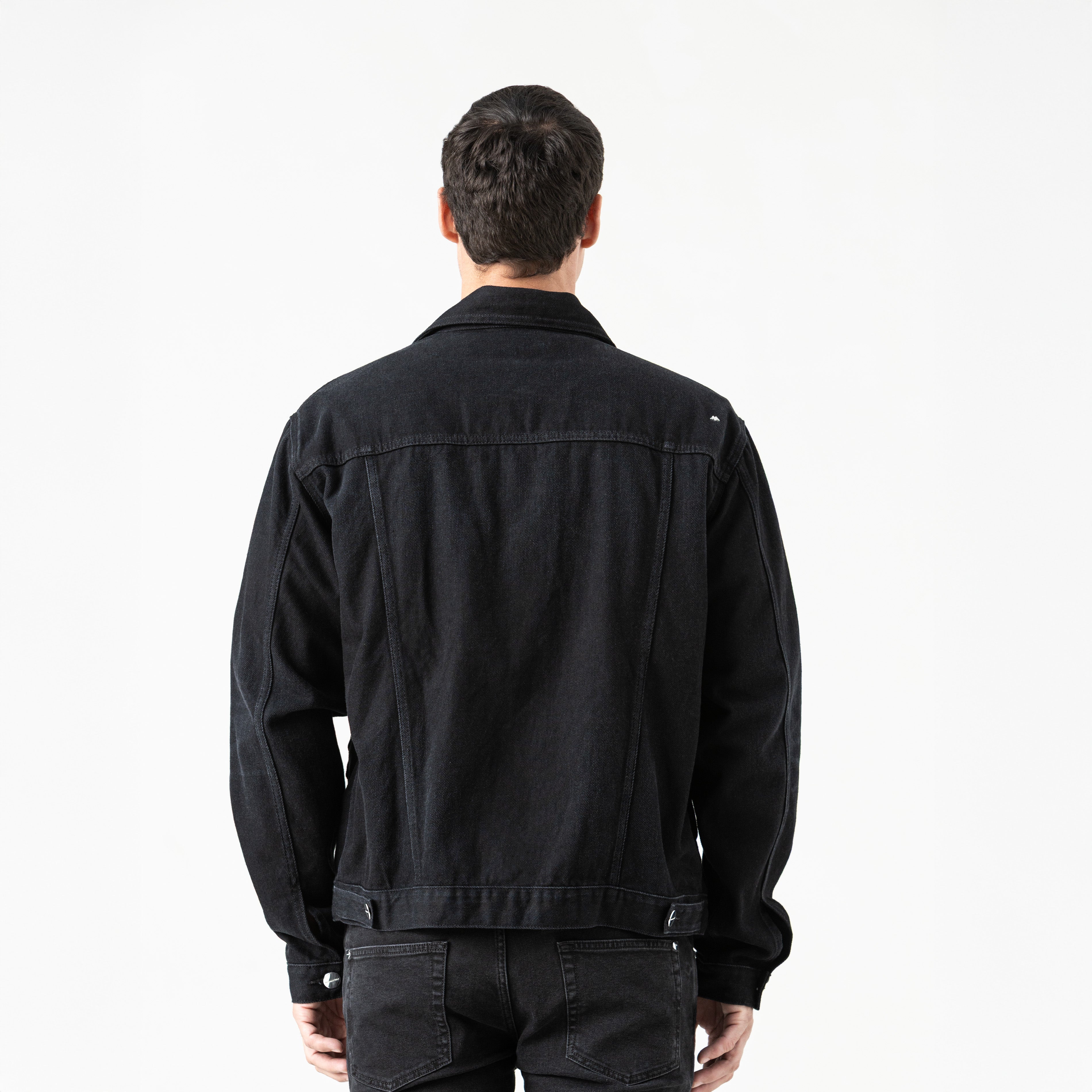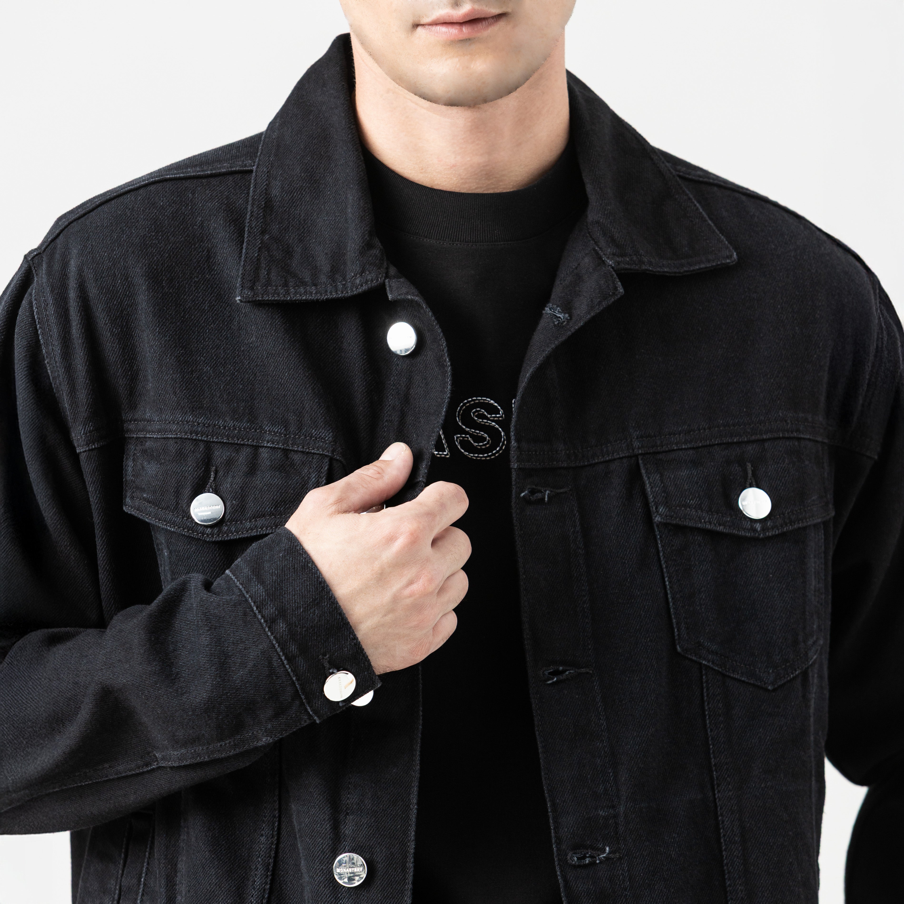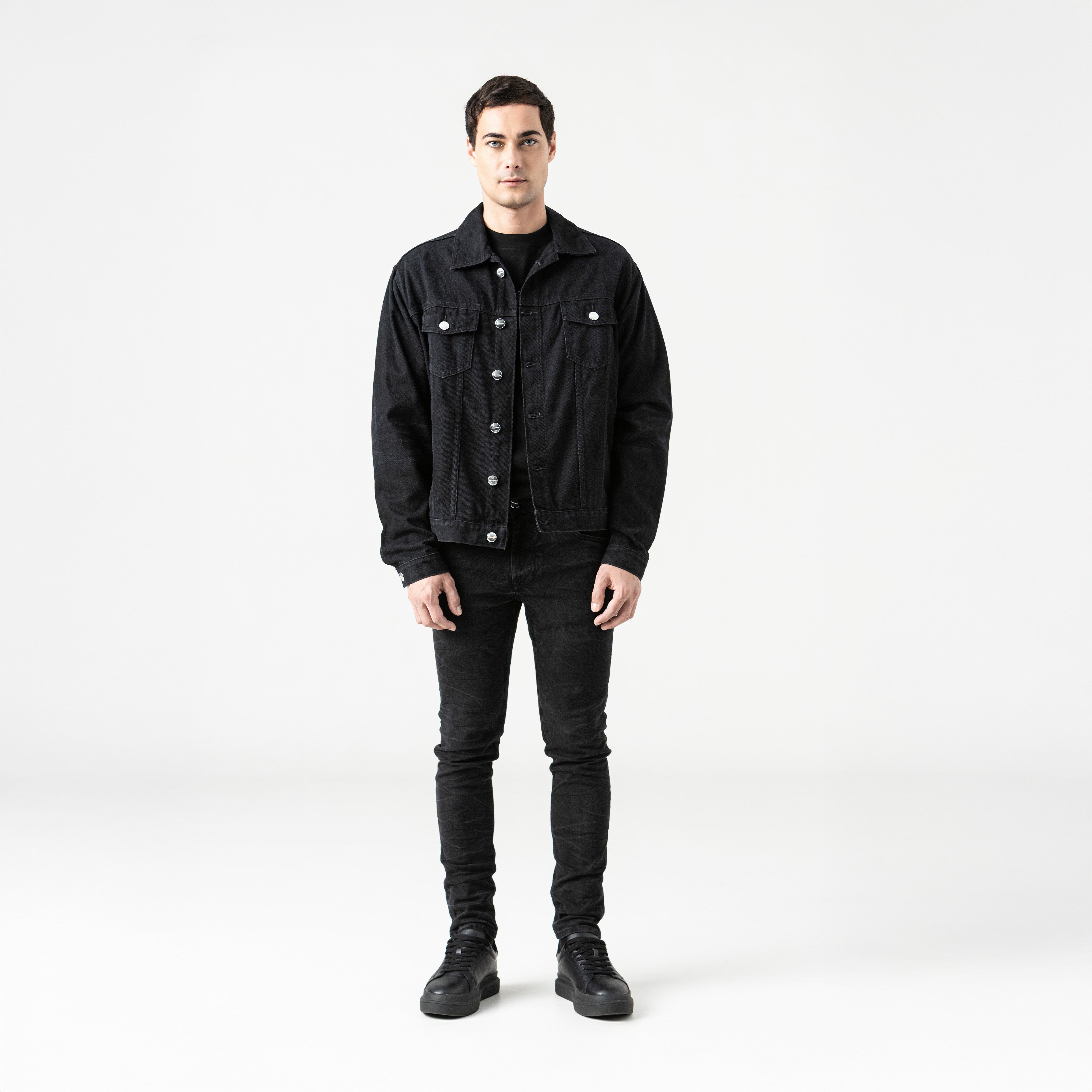 Men's jacket in high-quality MST denim plus, with a contemporary design and unique details. It features contrasting metallic details and an exclusive shiny silver finish for a modern and striking look. The specialized laundry process enhances the denim's texture and tone, creating a garment with character, durability, and a signature signature. Perfect for those looking to stand out with urban style and attitude.