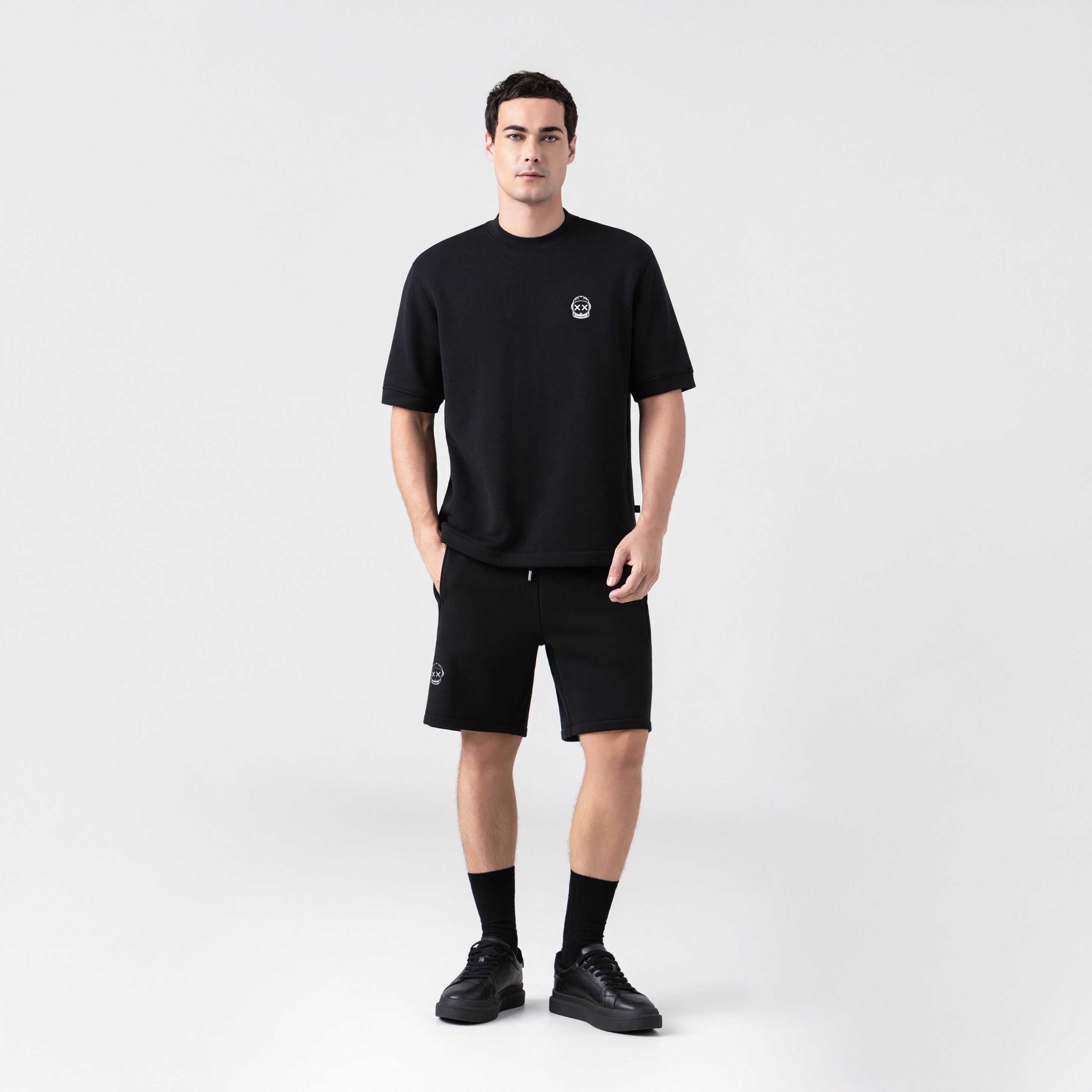 Bronco is a Burda set consisting of a T-shirt and shorts in an oversized silhouette. The T-shirt features a 3cm ribbed collar, a 3D satin thread embroidery of the iconic astronaut Phillip, adding texture and character, and a high-density back print of the Monastery logo. The shorts include front and back pockets, an internal pocket for small items, contrasting metal hardware, a thin matching drawstring, and the same 3D embroidery. Ideal for casual occasions where style and functionality come together with precision and detail.