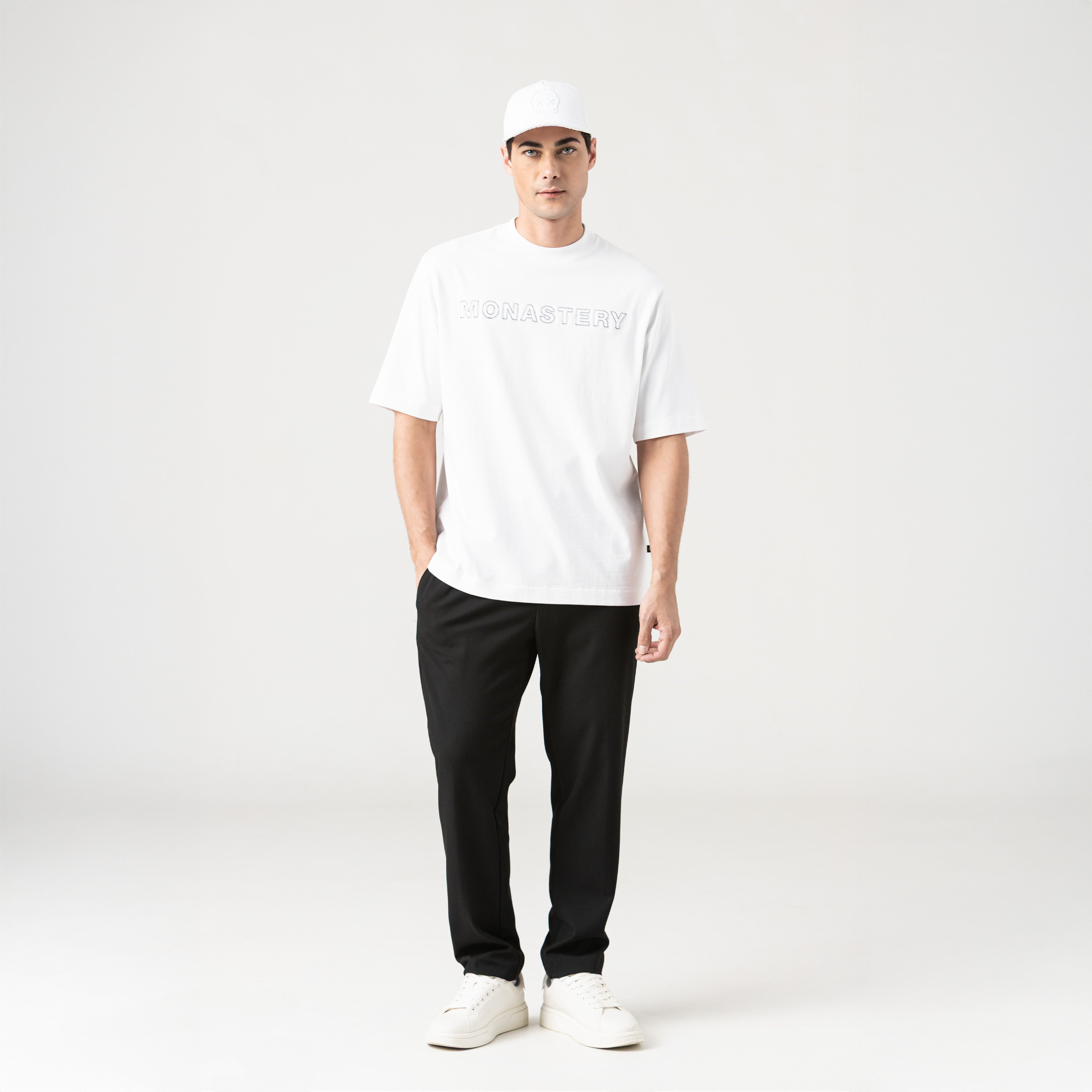The Capone men's t-shirt is crafted from our exclusive 100% cotton Monastery fabric, which provides a structured drape with a soft, premium feel. With an oversized silhouette and a 3cm ribbed collar, this garment stands out for its relaxed and contemporary appeal. The front features a quilted embroidery for a distinctive, handcrafted detail, while the back takes center stage with a print of Phillip, our iconic astronaut, a symbol of vision, freedom, and exploration. Designed for those who express themselves through design and value subtlety in every detail.
