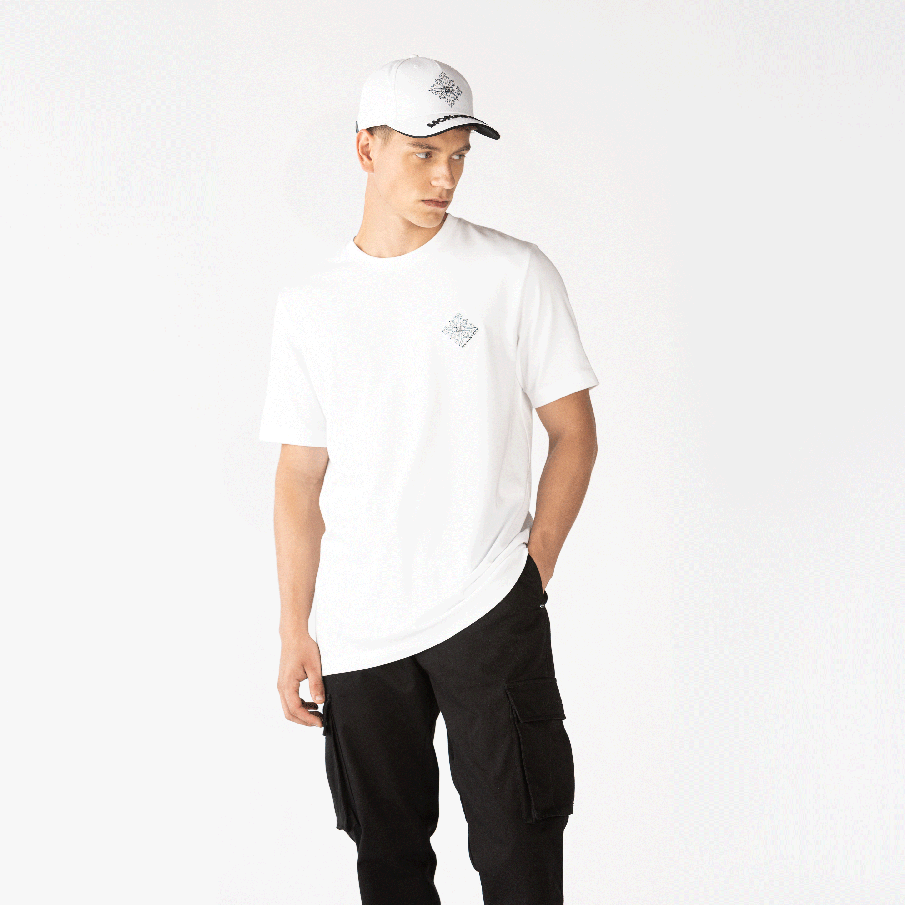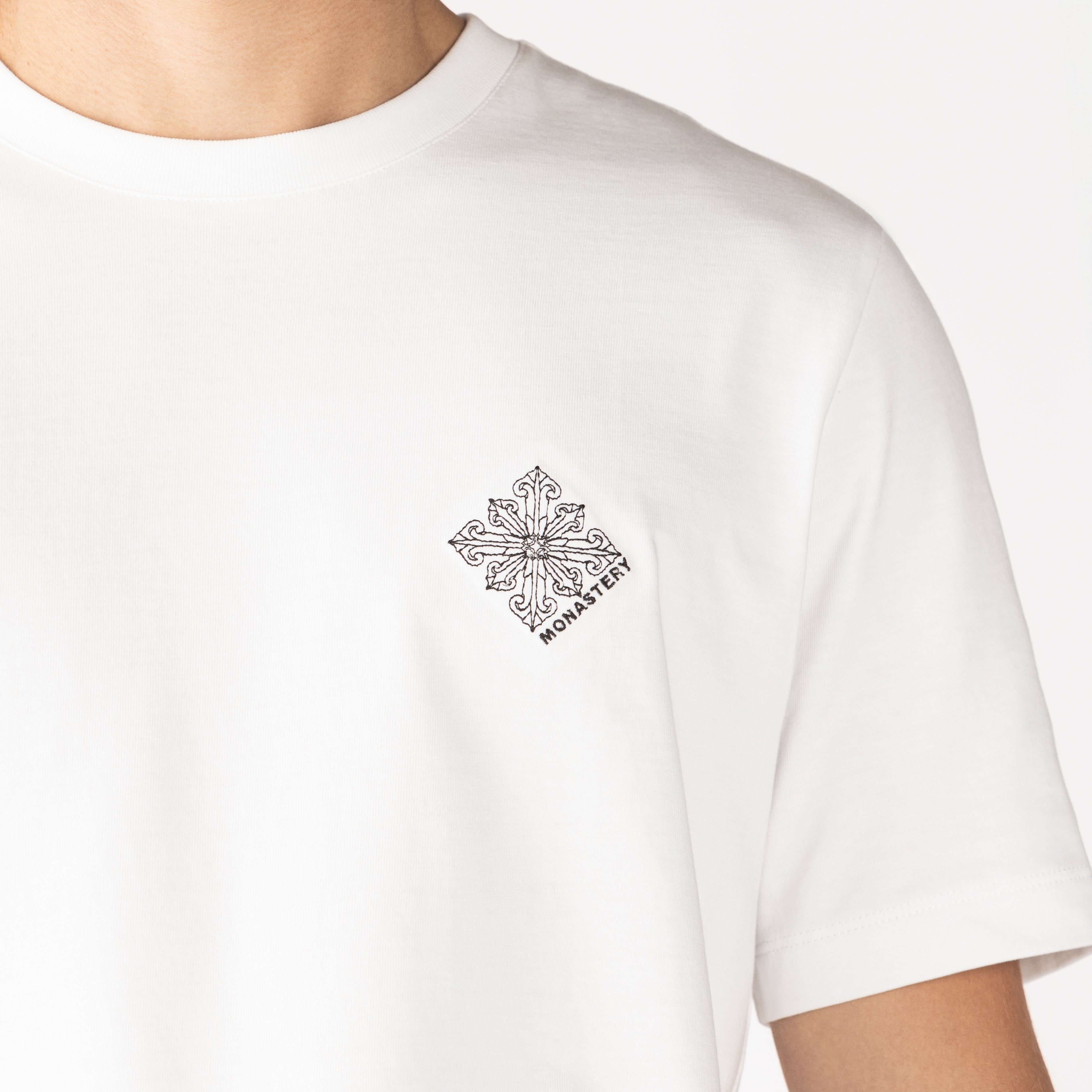 The Catterdale white t-shirt is made in a regular silhouette, made from cotton exclusive to Monastery, this t-shirt offers a soft and comfortable texture. It features a flat cross-shaped embroidery art, located in heart stitch, which provides a modern and meaningful touch. On the back, the signature arts are made in high density, providing a distinctive and elegant finish. Ideal for those looking for a unique and contemporary style.