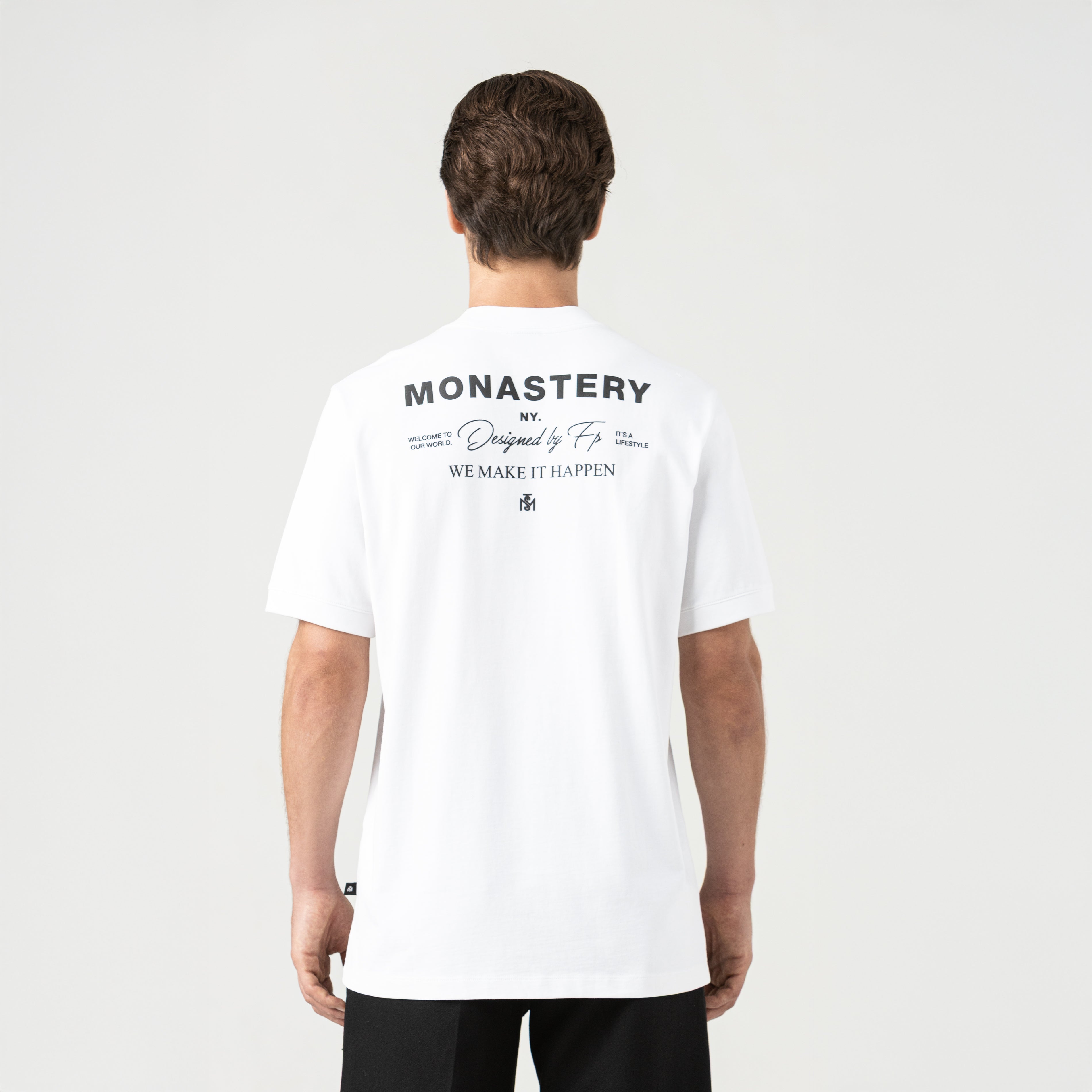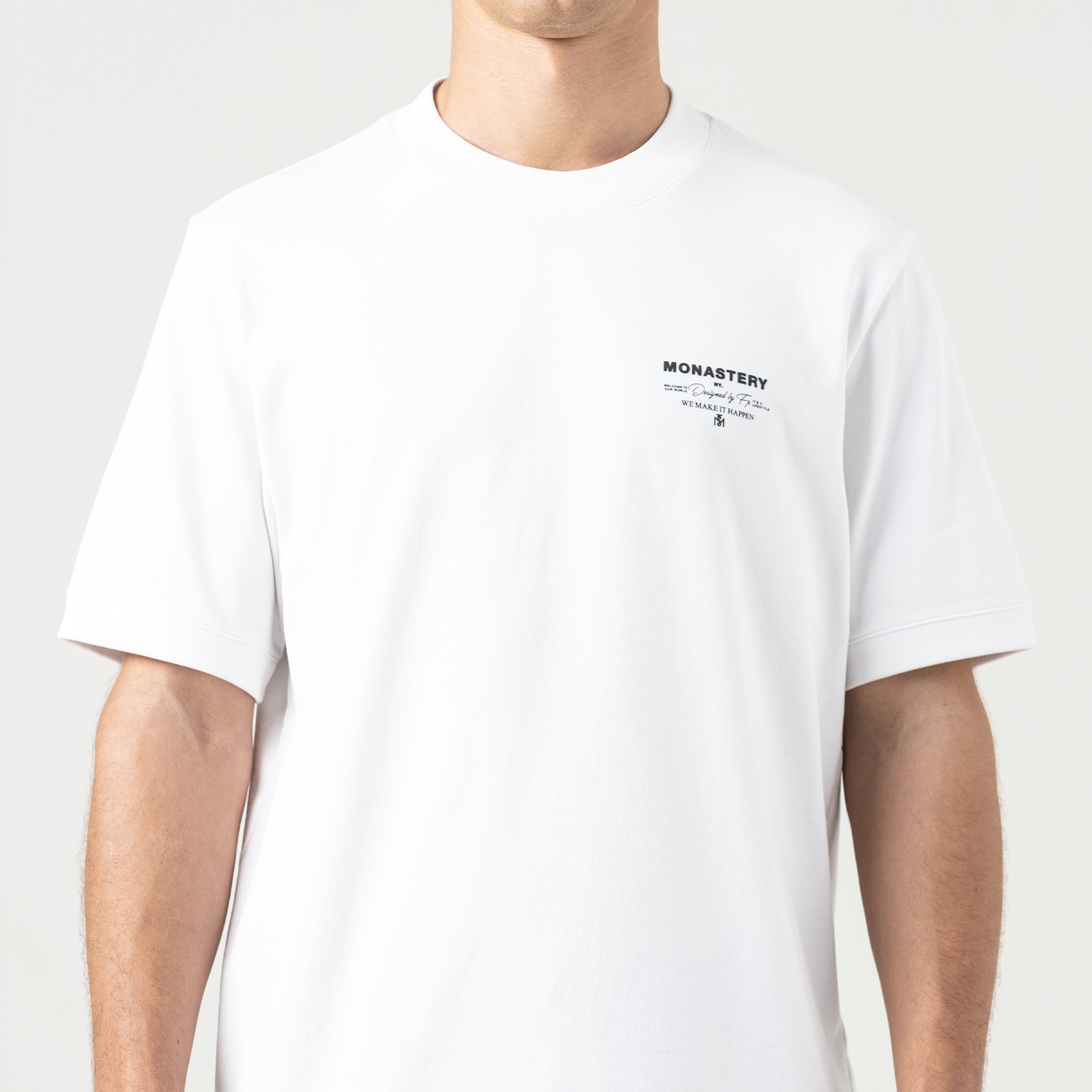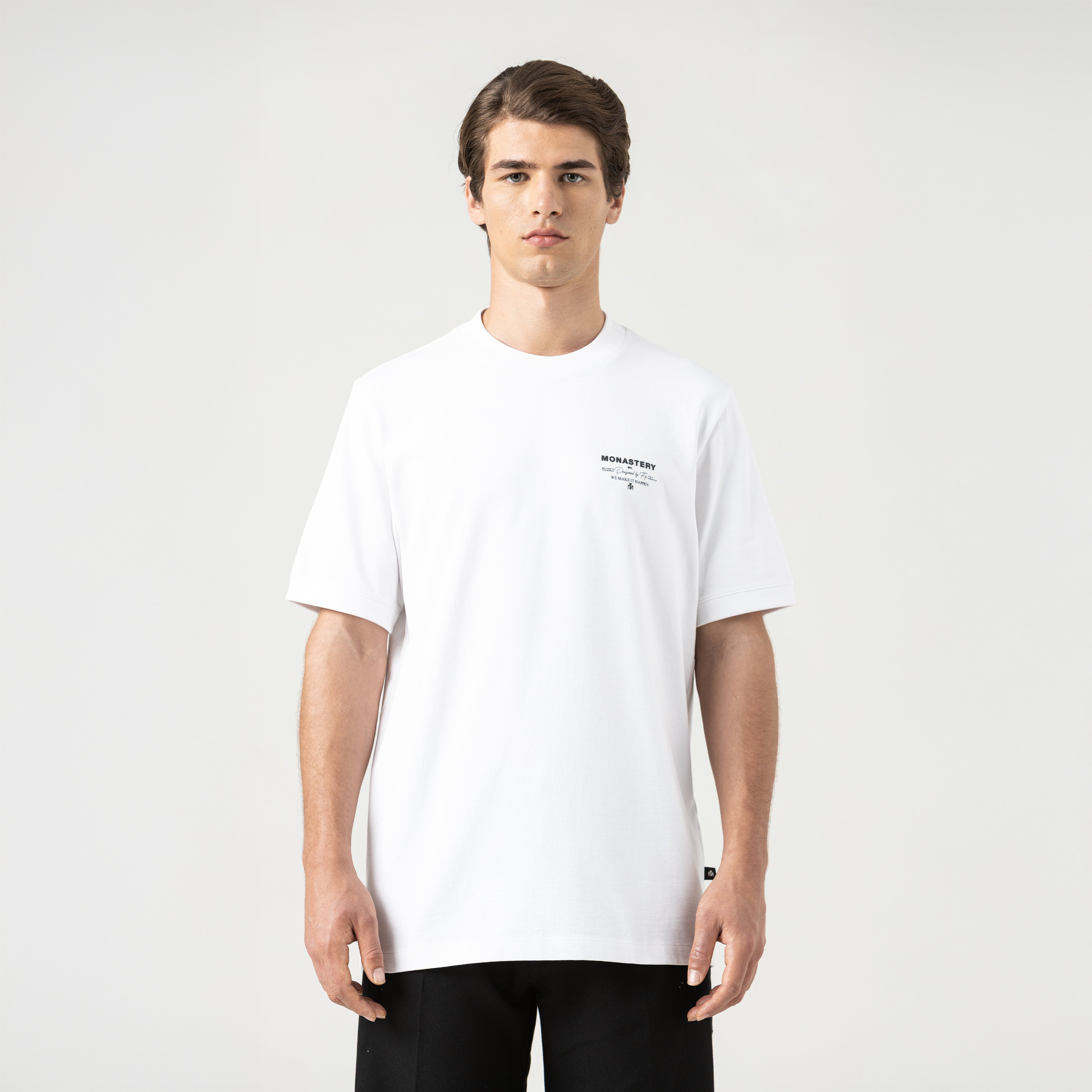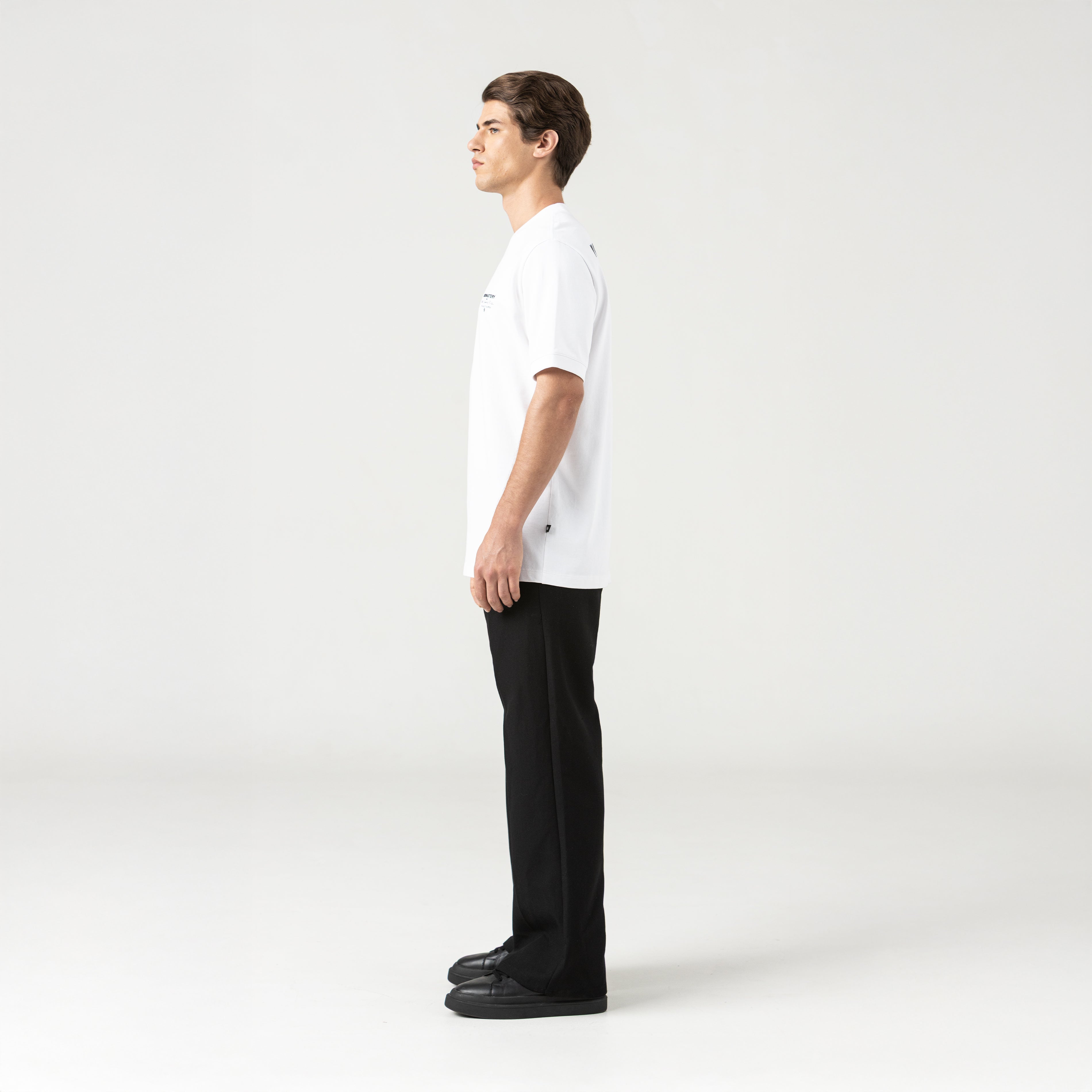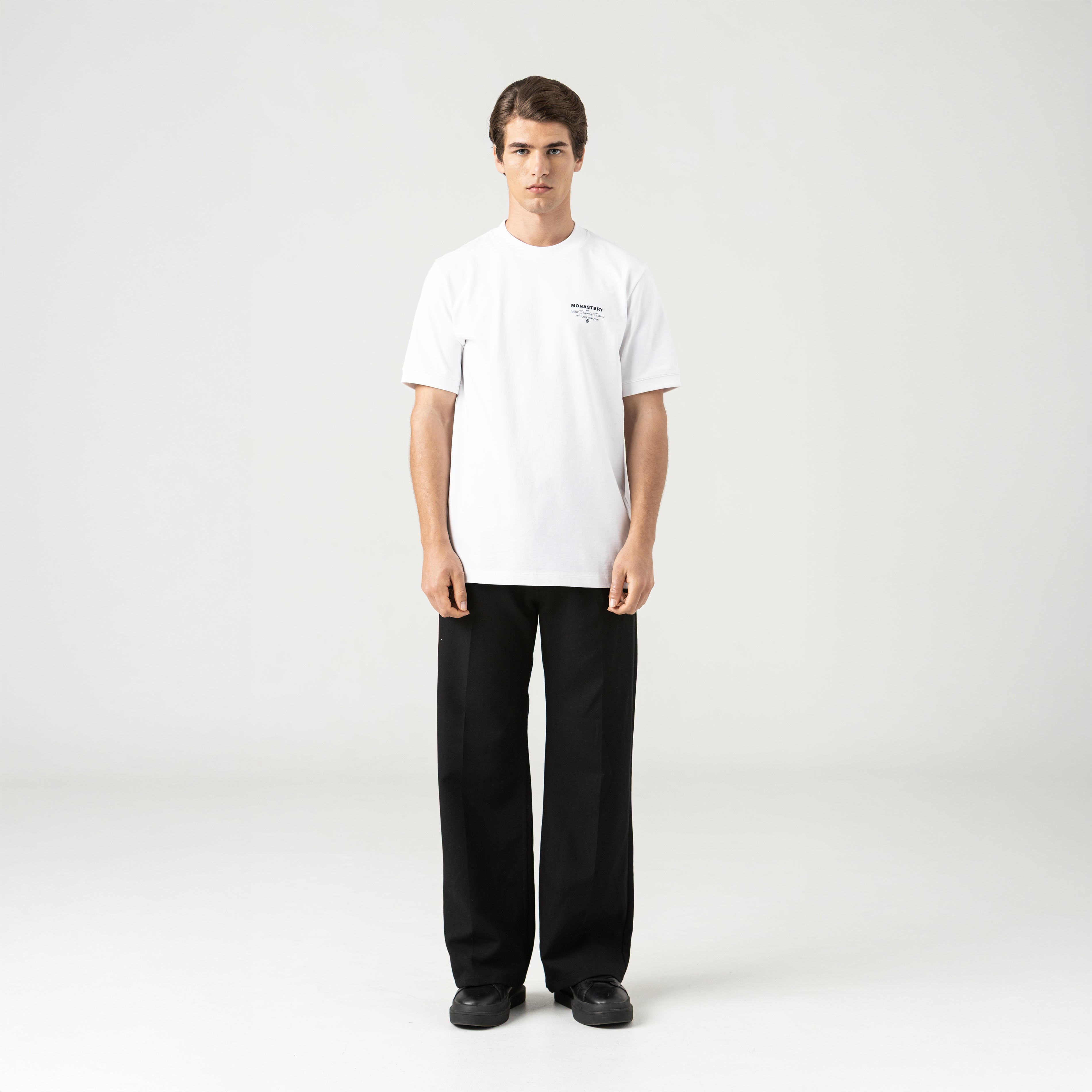 Cracker 1 is a men's t-shirt. With a regular silhouette, a 3cm ribbed collar, and made of high-quality cotton, this t-shirt makes a subtle yet powerful style statement. On the front, a print that combines flat and high-density printing techniques creates an interesting and sophisticated visual contrast.