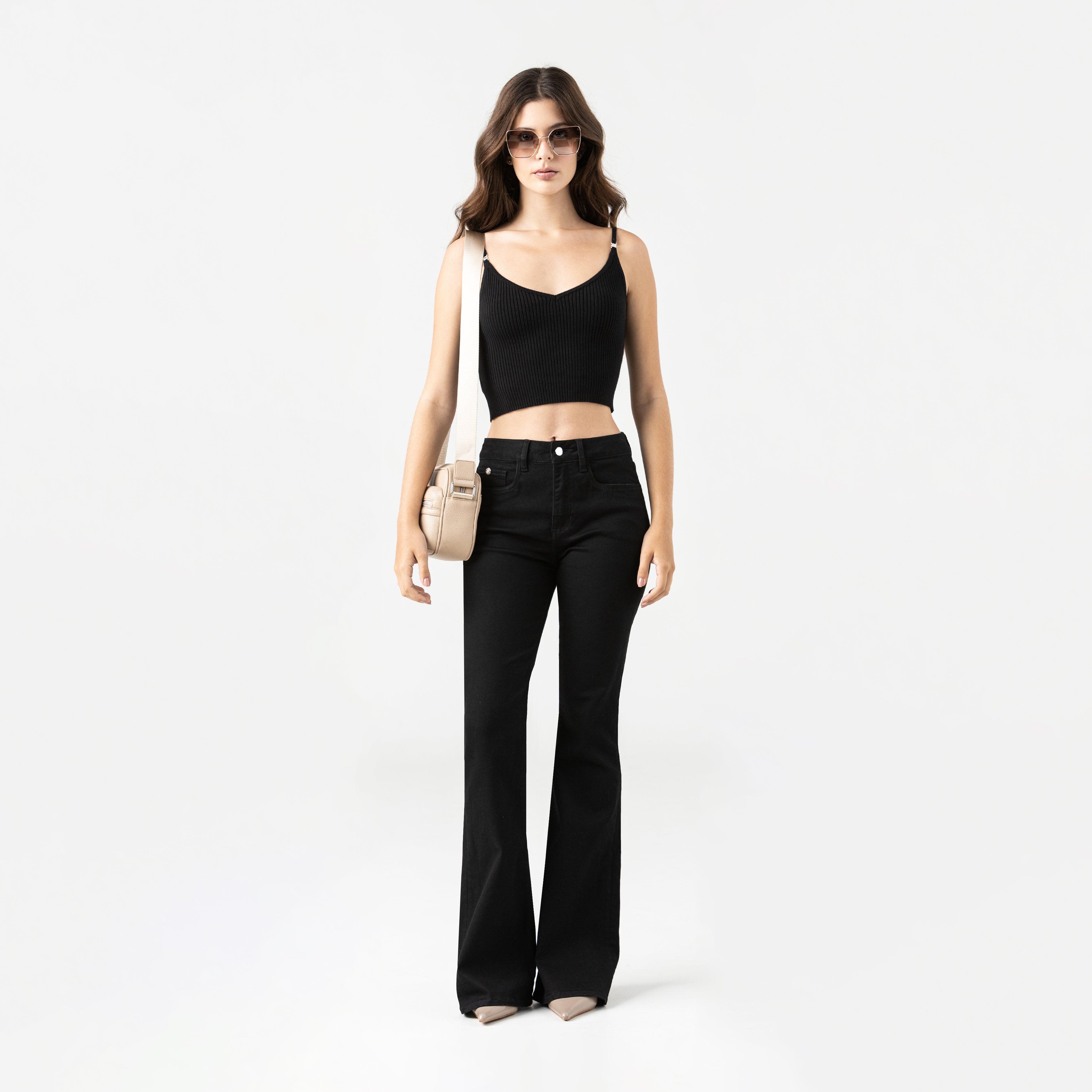 Black women's jeans with exclusive MONASTERY fabrics. This high-rise jean is designed to slim the silhouette and offer a comfortable fit that highlights the waist. Its flattering structure makes it a key piece for sophisticated or casual looks, depending on how you style it. Made with premium MONASTERY fabrics, it ensures high-quality finishes and a timeless style with character. A versatile piece that elevates any outfit with a touch of distinction.