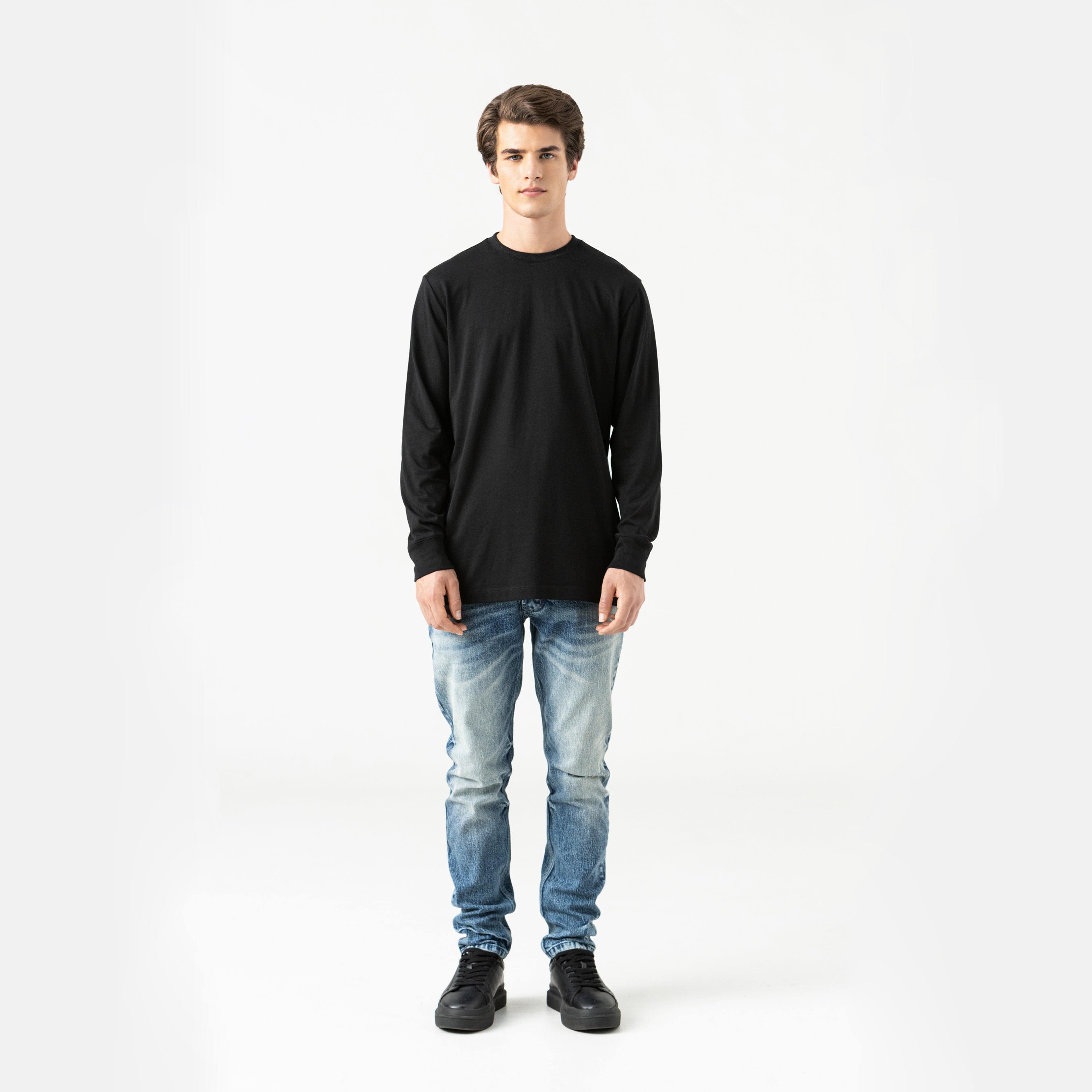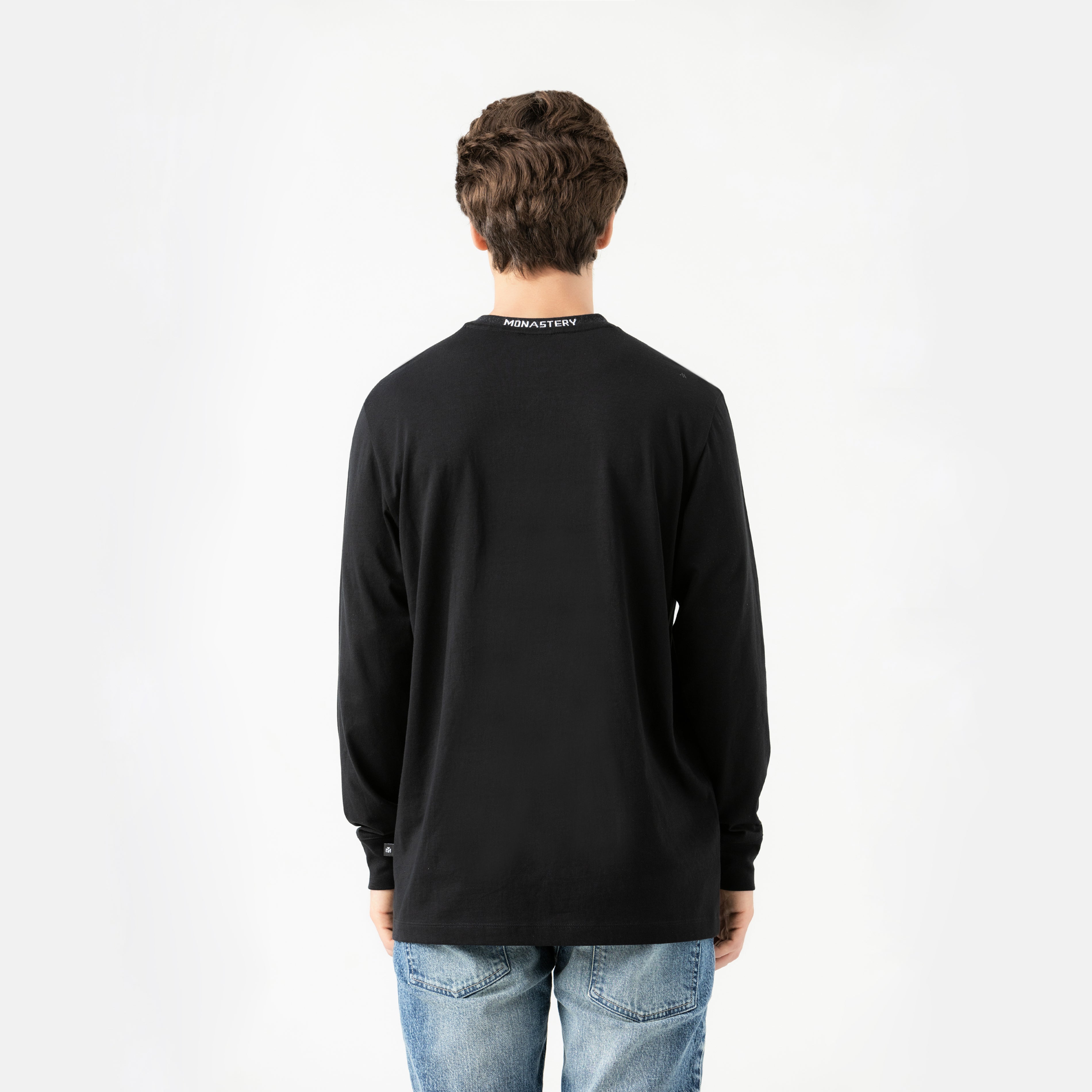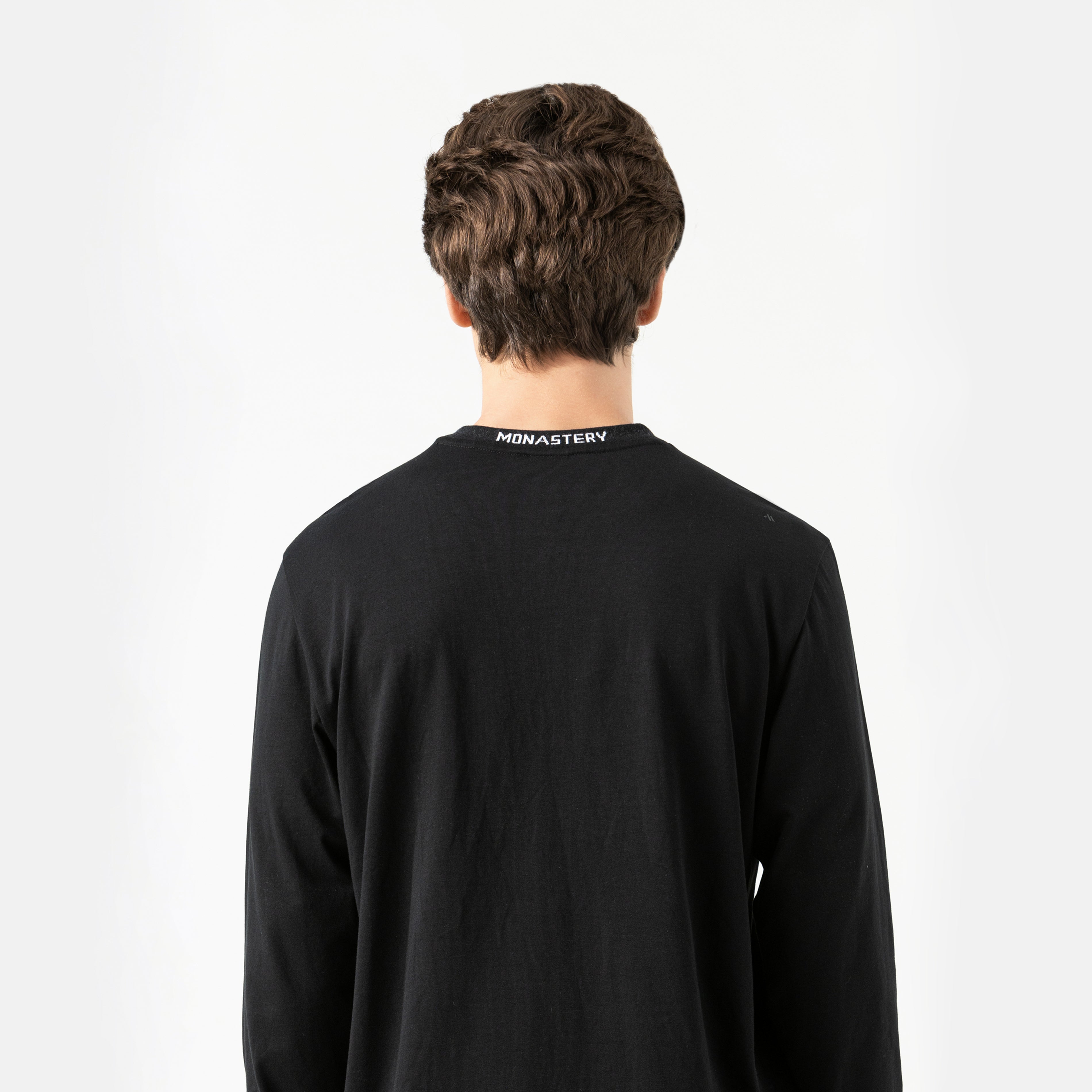 Harvin is a long-sleeved longsleeve made from MST cotton, an excellent quality fabric developed exclusively for Monastery, offering softness, structure, and durability. It features a 2cm double collar that reinforces the silhouette with sobriety. Woven artwork with the Monastery name is integrated into the back of the neck as a subtle and precise graphic detail. The back features the signature logo applied using a high-density technique, adding volume and visual presence. A garment designed for everyday use with a well-defined identity in every element.