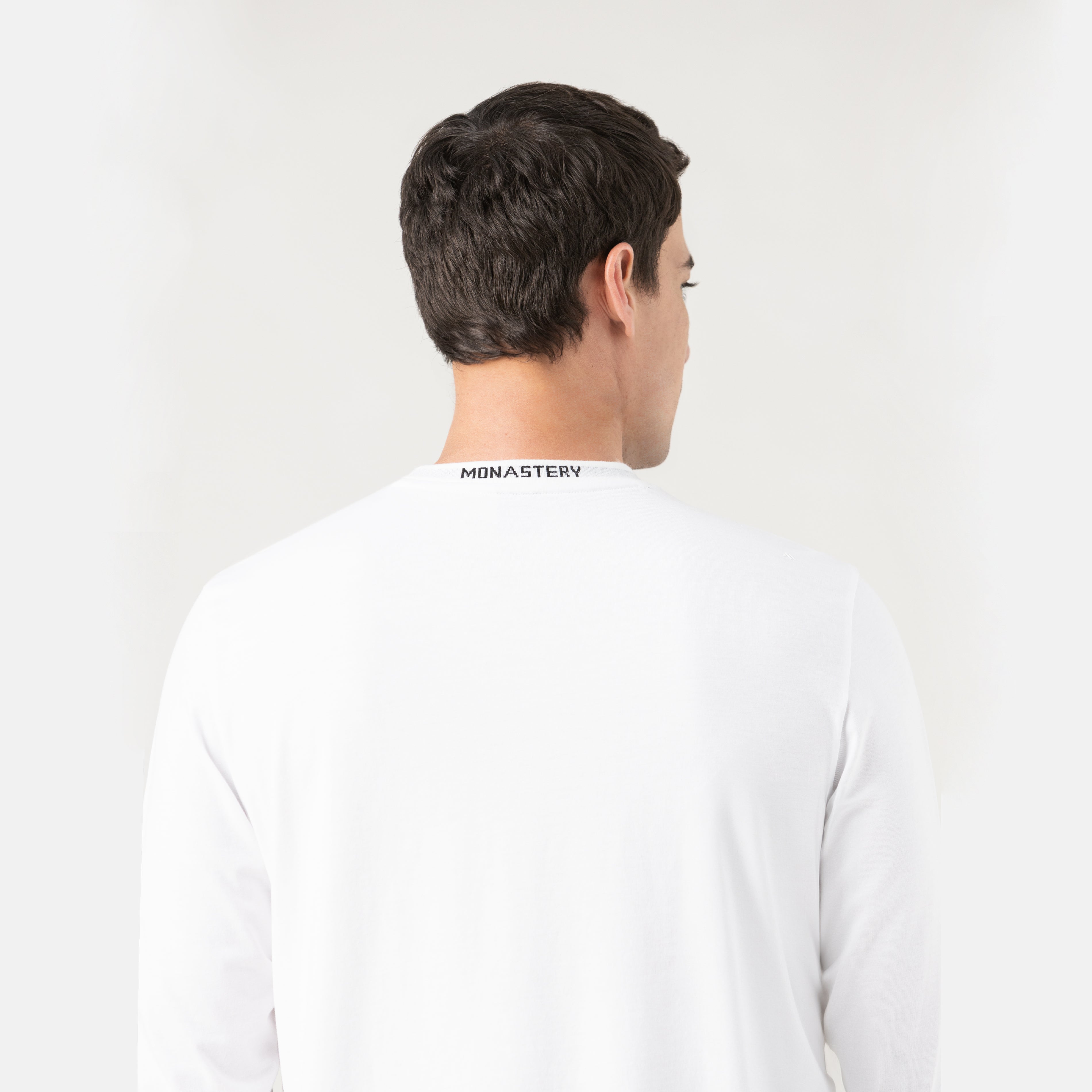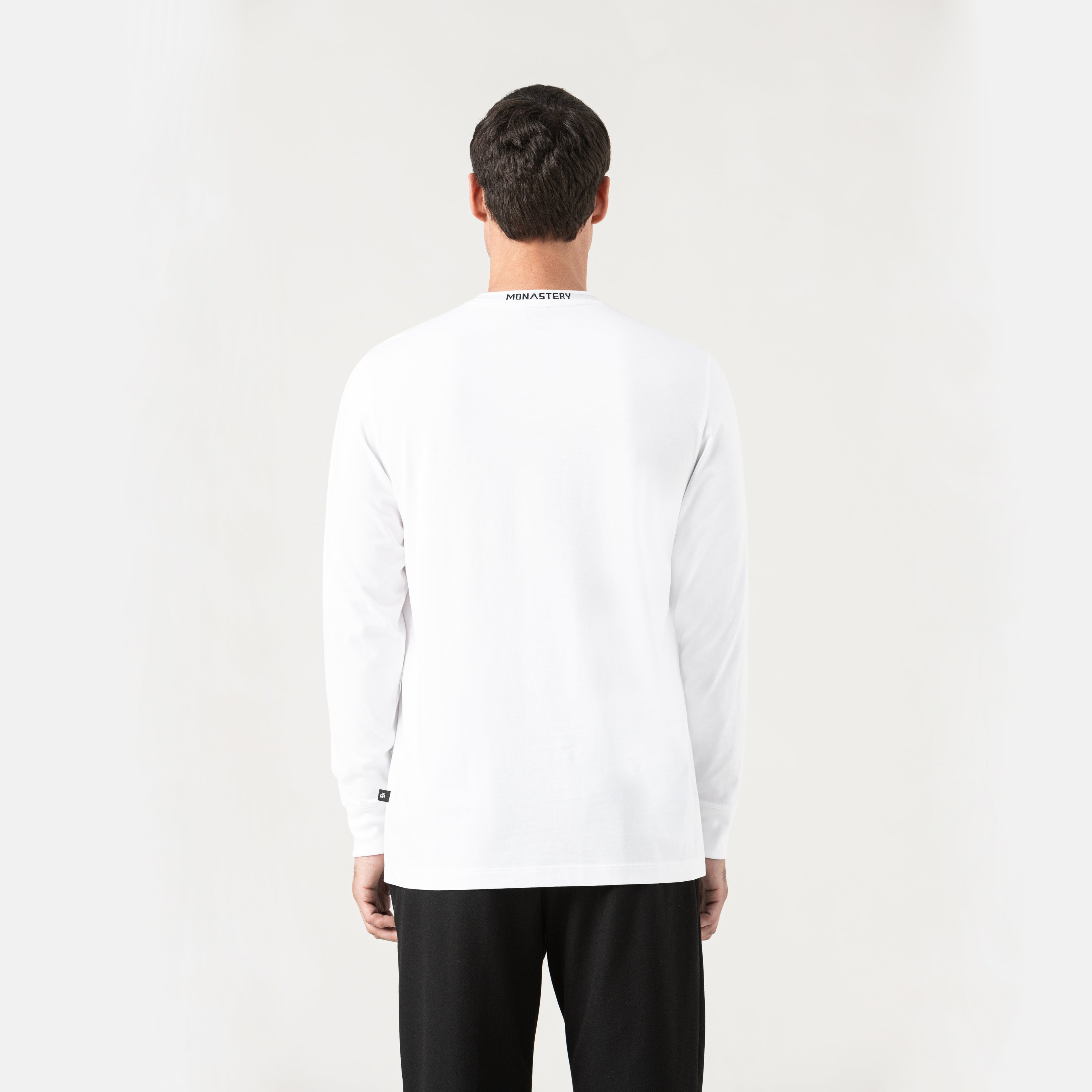 Harvin is a long-sleeved longsleeve made from MST cotton, an excellent quality fabric developed exclusively for Monastery, offering softness, structure, and durability. It features a 2cm double collar that reinforces the silhouette with sobriety. Woven artwork with the Monastery name is integrated into the back of the neck as a subtle and precise graphic detail. The back features the signature logo applied using a high-density technique, adding volume and visual presence. A garment designed for everyday use with a well-defined identity in every element.