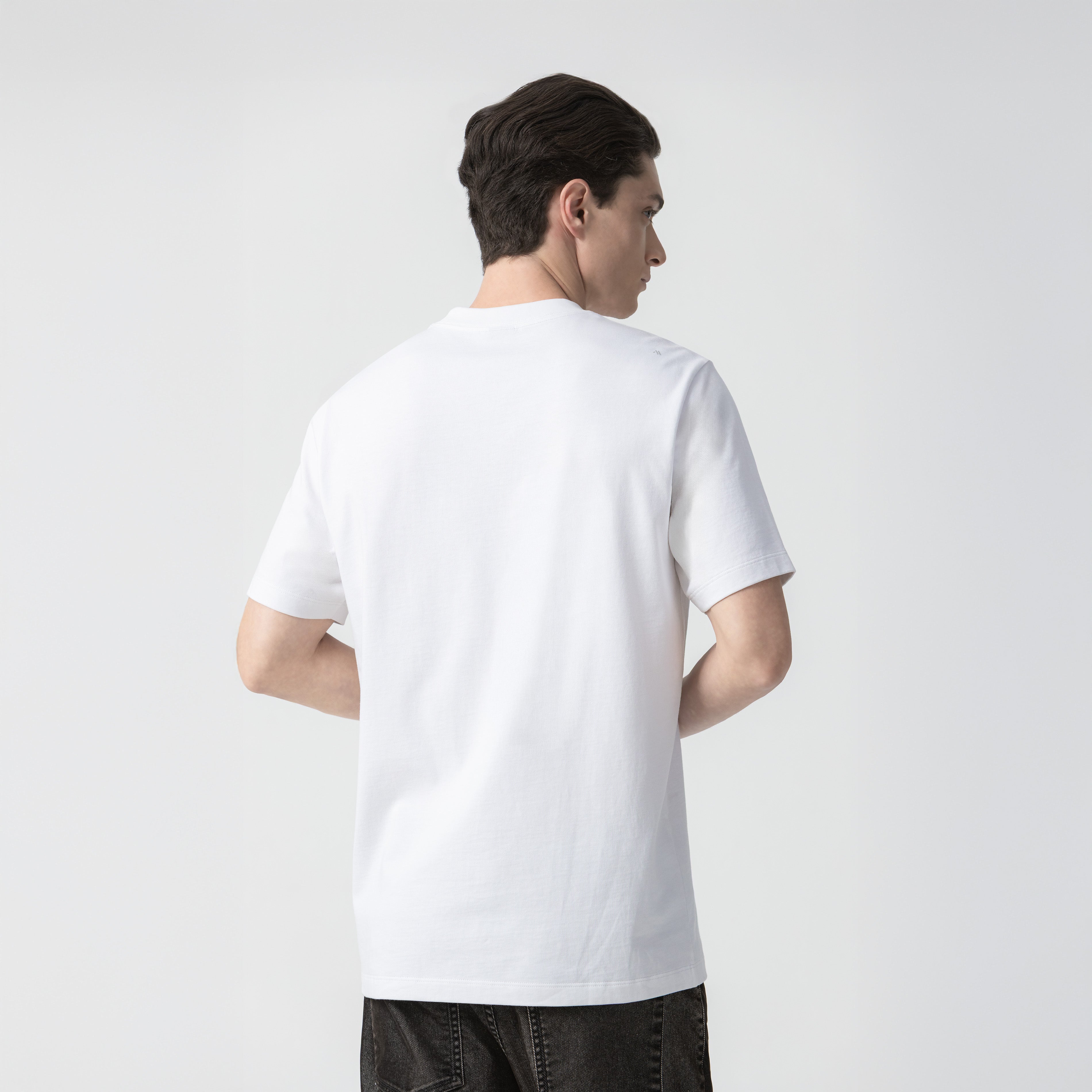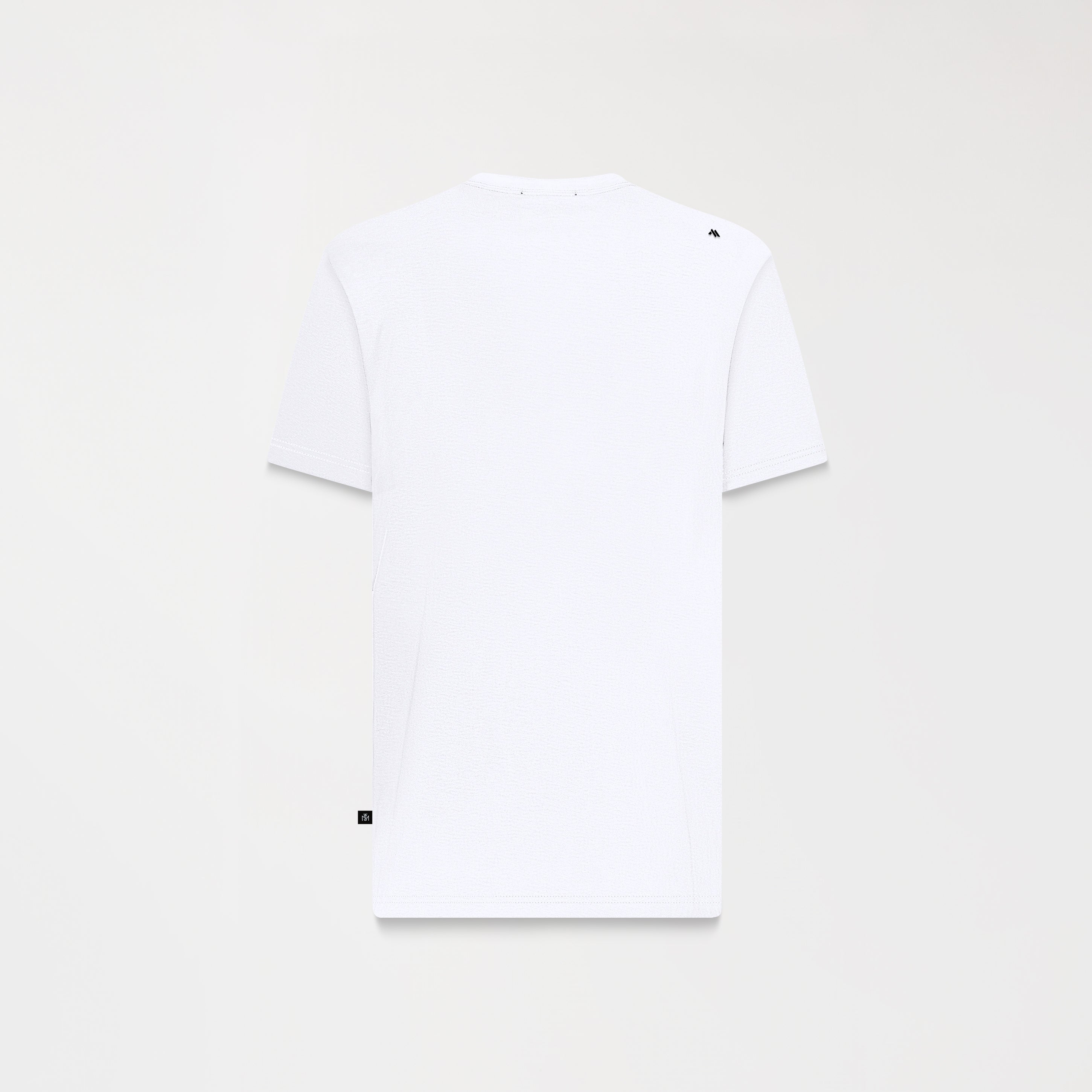 Hudson is a men's regular-fit t-shirt made from Monastery 2 fabric, a premium cotton that provides softness and structure.It features a distinctive triangular detail at the neckline that reinforces its technical design. On both the front and back, the logo is applied using a silver foil technique, creating metallic reflections that enhance its visual presence.