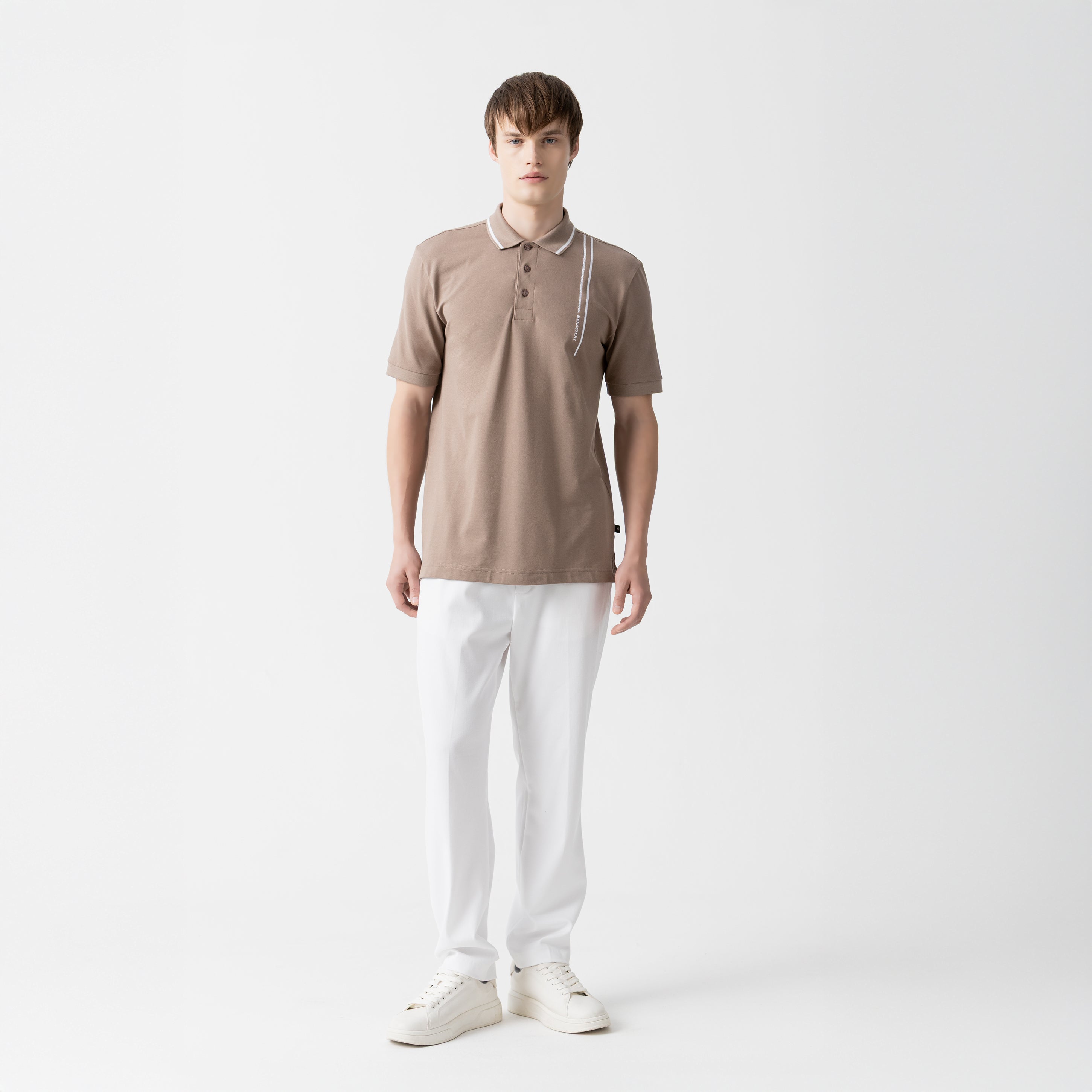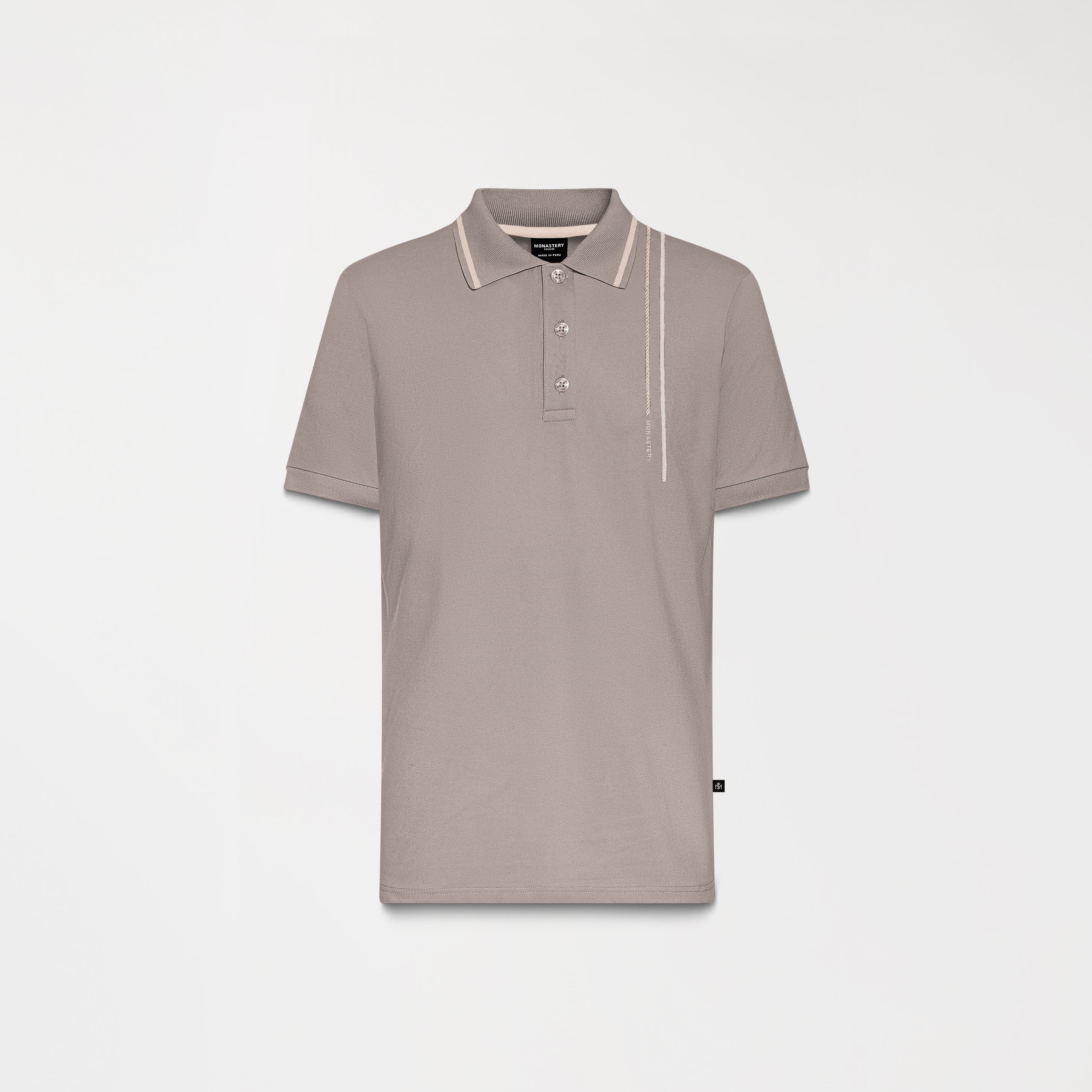 Issos is a men's polo shirt crafted from Pima cotton piqué, a high-quality material renowned for its softness, breathability, and durability. With a regular fit, it features a knit collar with tipping and knit cuffs, lending a classic and refined touch. On the front, rope-effect embroidery is combined with flat embroidery, creating texture and handcrafted detail; while on the back, a solid print balances the design with understated elegance and visual coherence.
