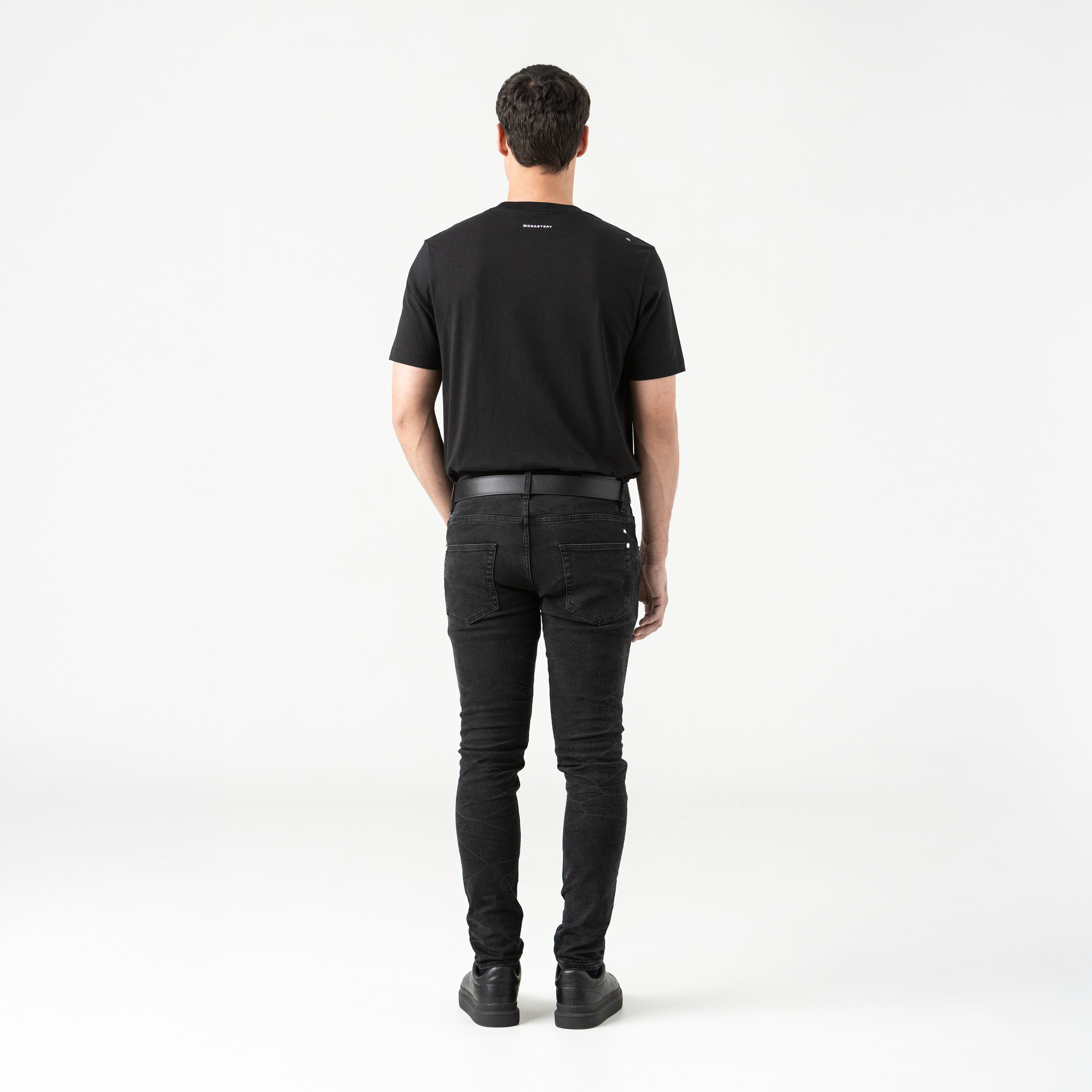 Men's 5-pocket jeans crafted from exclusive MST Denim Amento fabric, which redefines modern denim with its premium texture, stretch, and sophisticated visual finish. Designed in a slim silhouette, it combines a contemporary wash with luxurious details like a printed inner lining and punched-out components for an elevated and distinctive look.