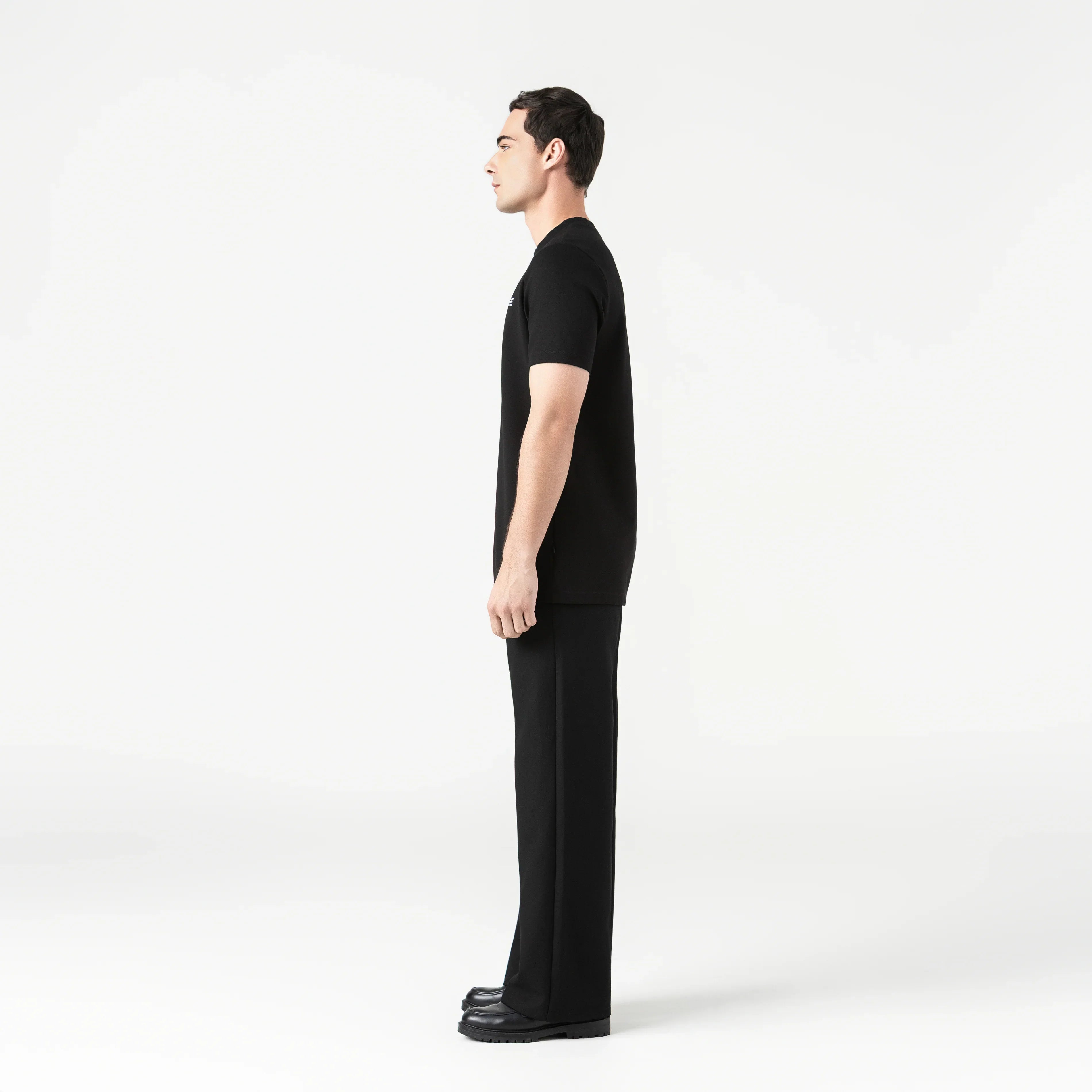 Kripton es una t-shirt masculina concebida para trascender lo esencial. Con silueta regular y cuello en rib de 2.5 cm, está confeccionada en la tela exclusiva MST Napoleón, que combina suavidad táctil y resistencia estructural. En el frente, un bordado plano con tipografías diversas introduce un gesto gráfico contemporáneo, equilibrado entre sofisticación y sutileza. La espalda incorpora un estampado en alta densidad, que otorga volumen y profundidad, reforzando la identidad de la prenda. Una pieza pensada para el hombre que aprecia la calidad en cada detalle y proyecta estilo con naturalidad.