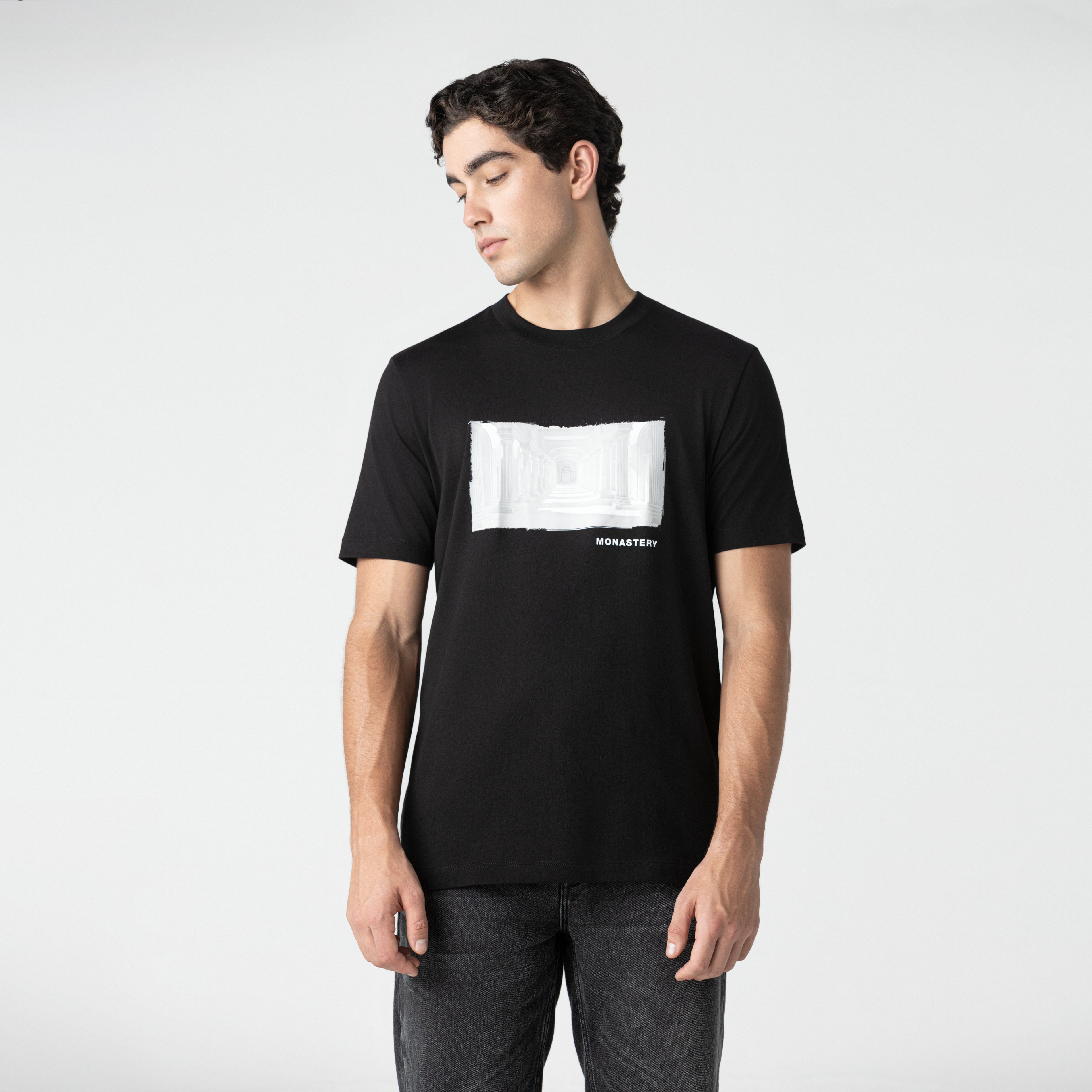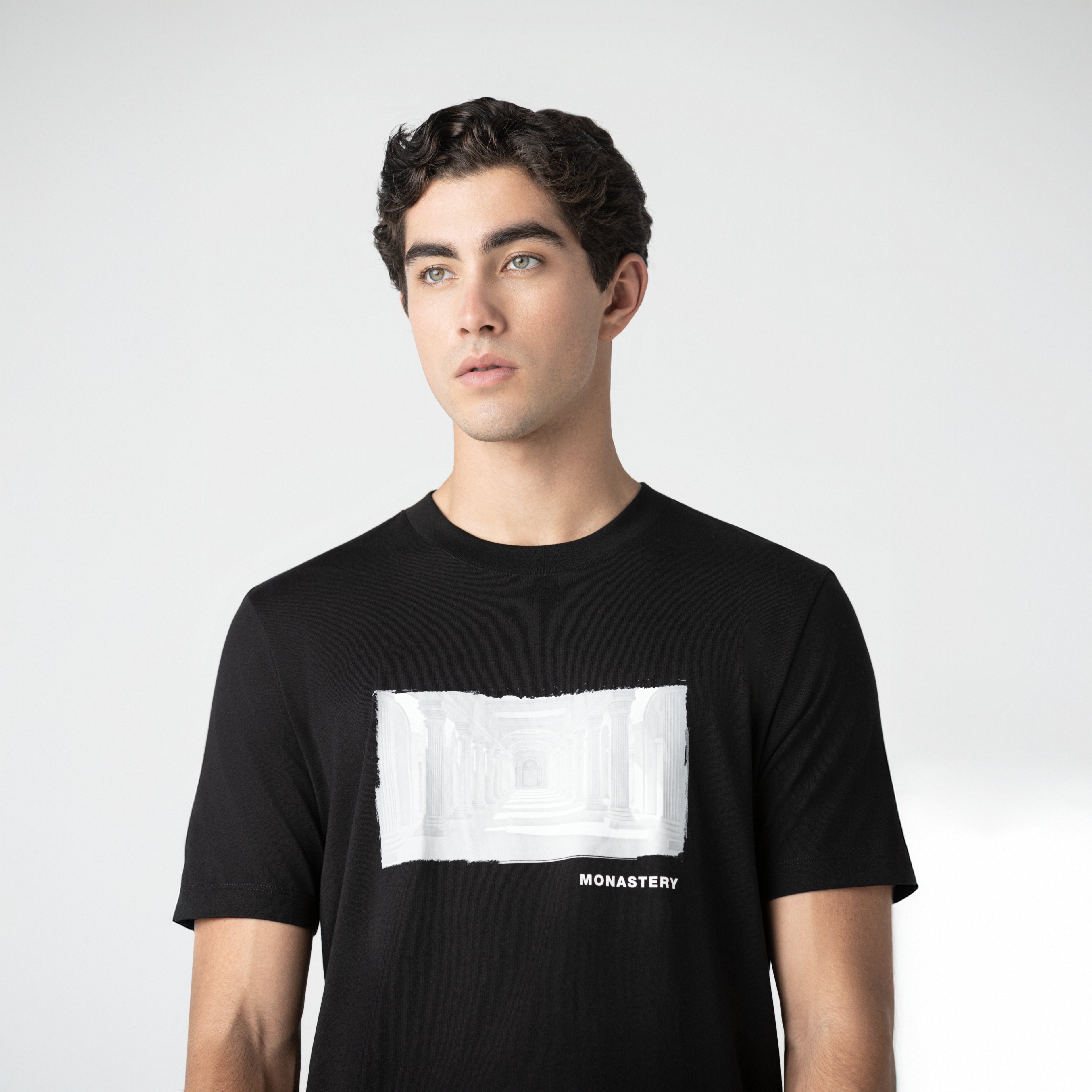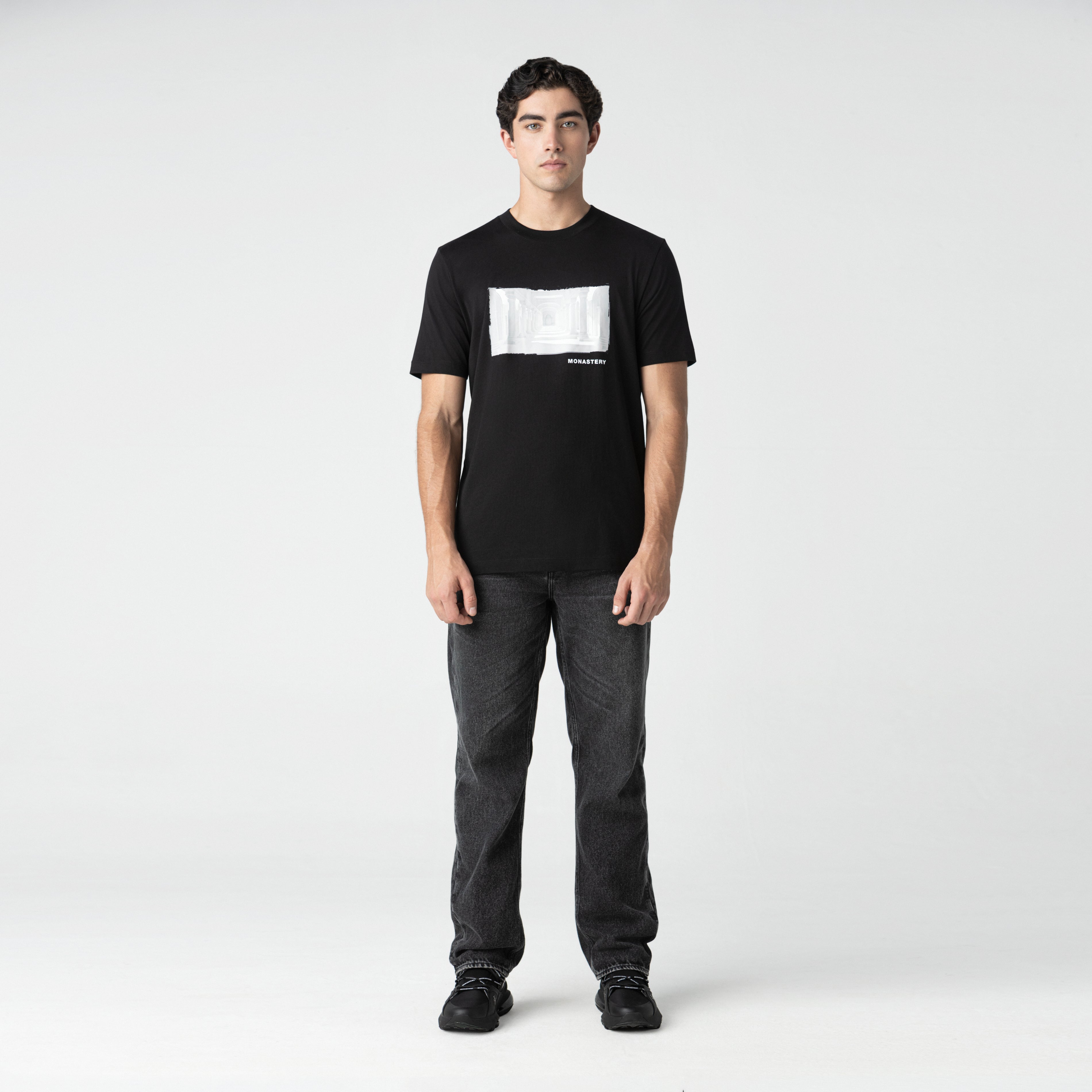 Men's T-shirt made from MST cotton fabric, with a soft feel and excellent comfort. It features a ribbed collar that provides structure and durability. The front has a striking print that elevates the design, while the back incorporates high-density prints that create a raised visual effect, resulting in a modern, versatile garment with a distinctive identity.