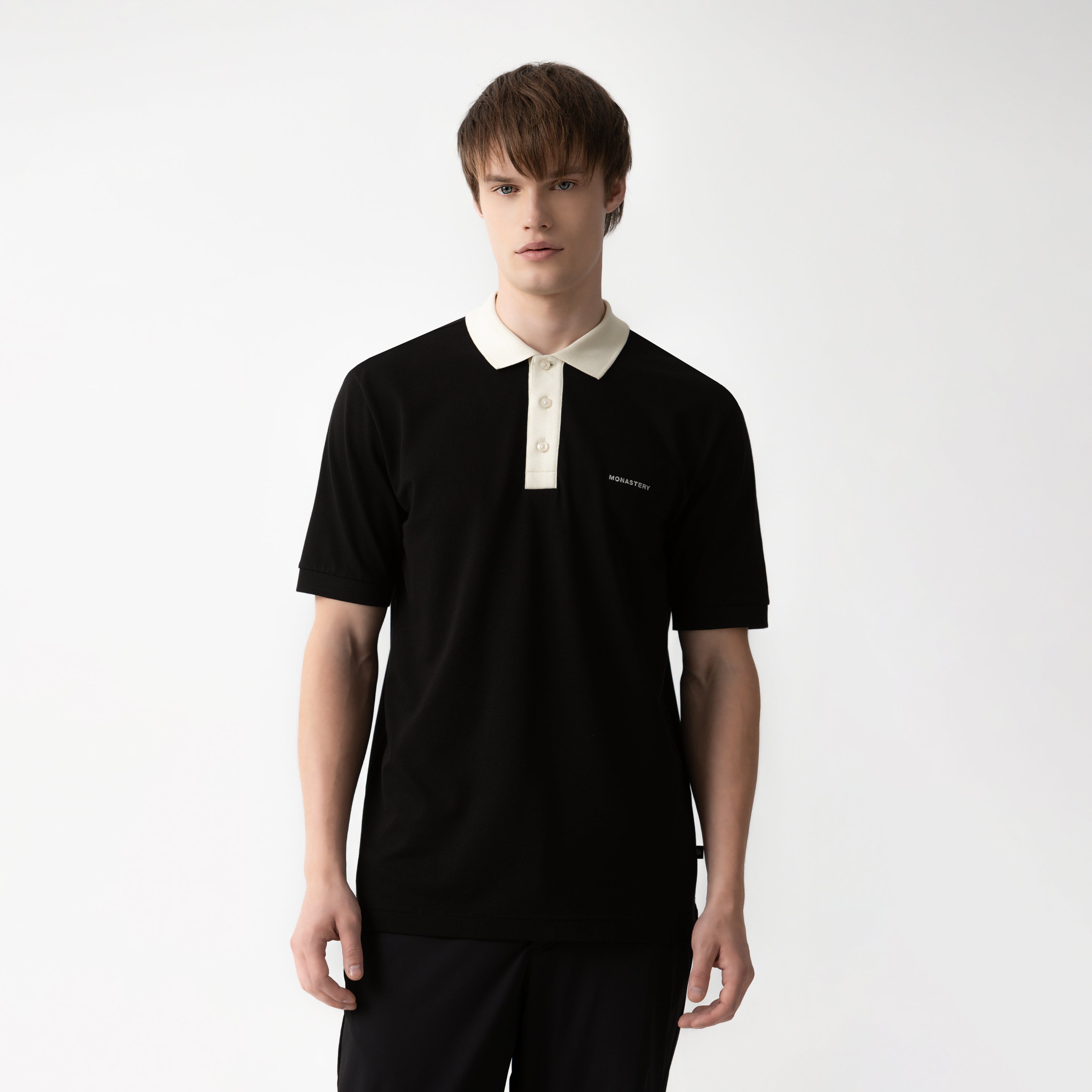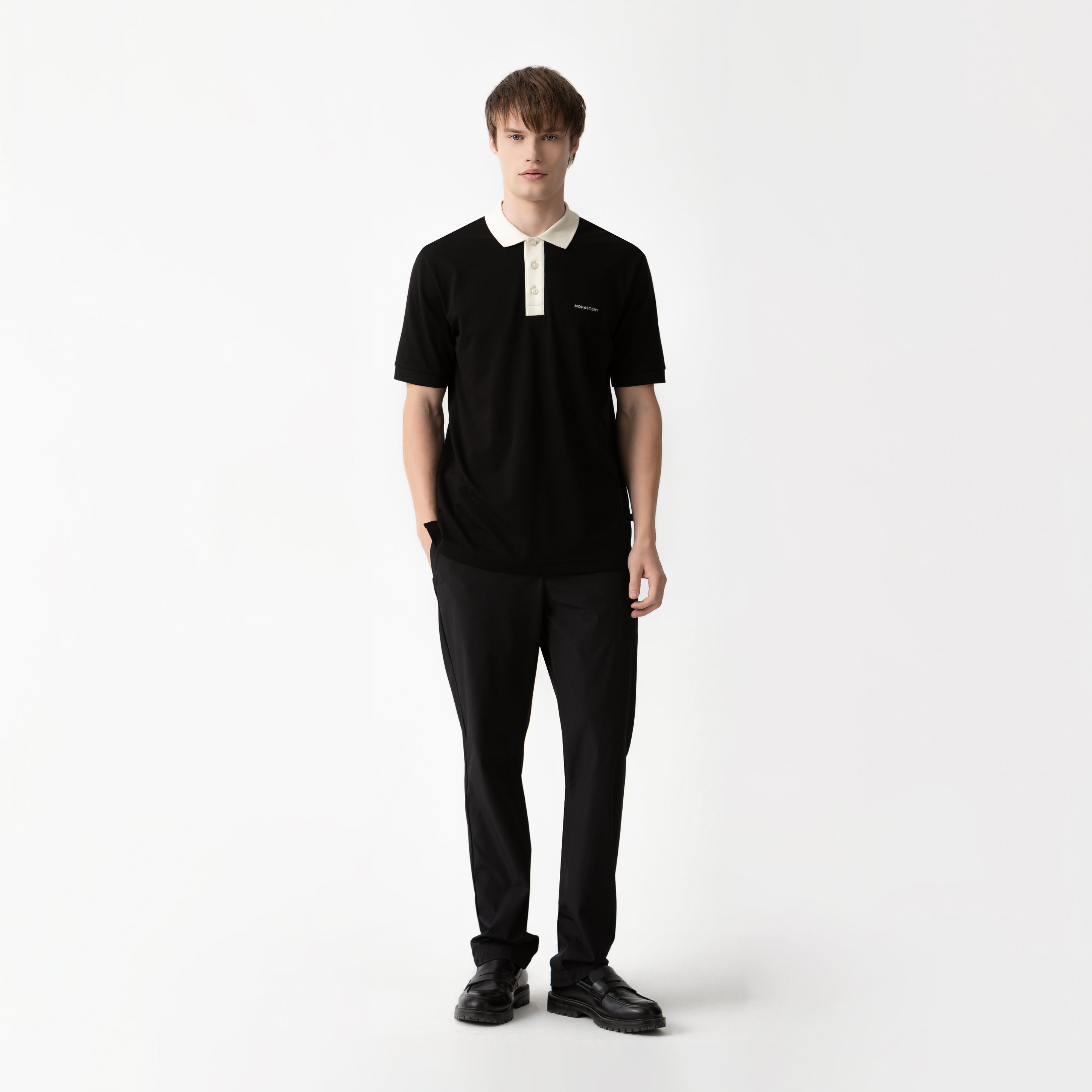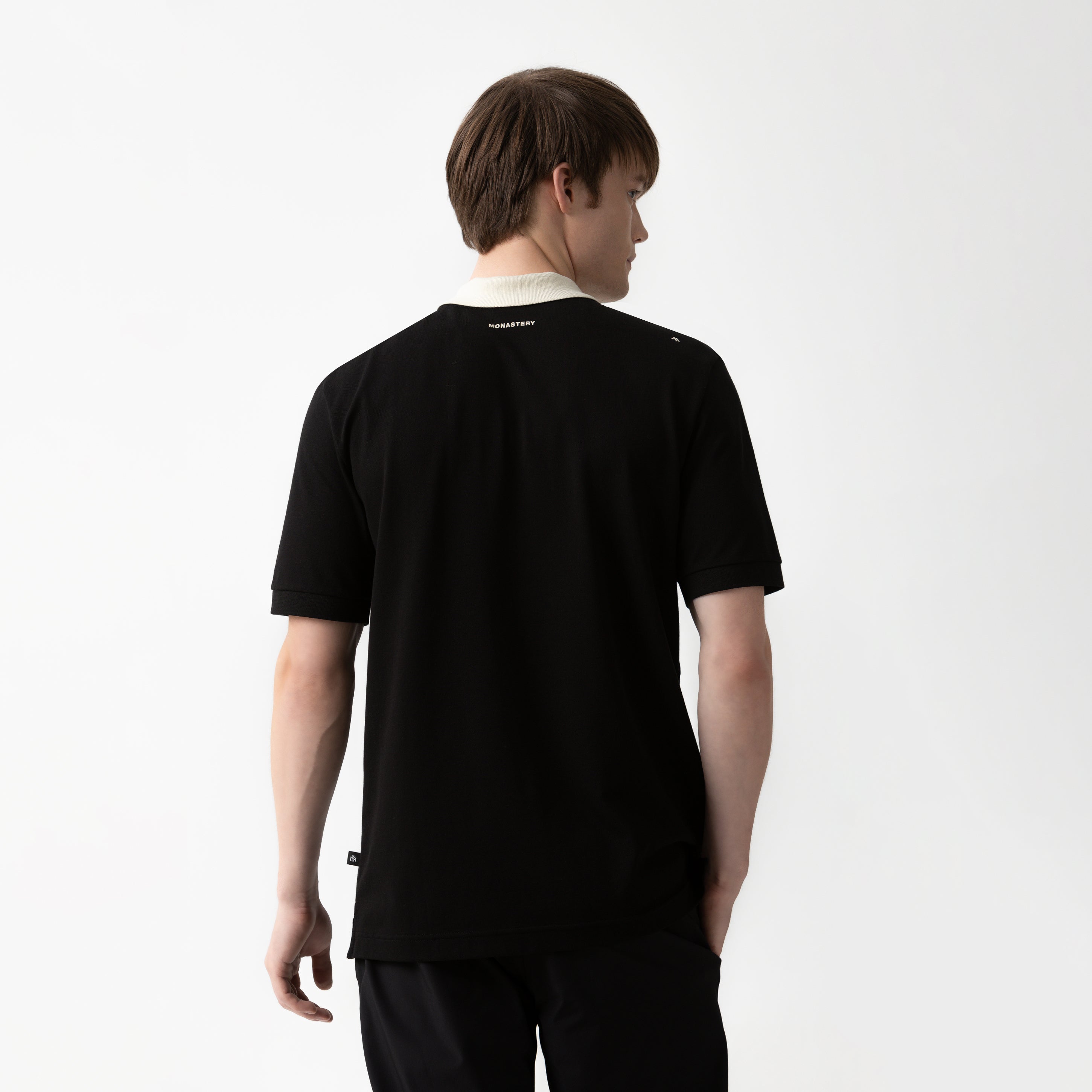 Lykos is a men's polo shirt crafted from Pima cotton piqué, a fiber renowned for its softness, breathability, and durability. With a regular fit, it features a contrasting knit collar and cuffs, adding character and definition to the design. A flat embroidery on the front adds a subtle and elegant detail, while a high-density print on the back reinforces the garment's identity with precision and contrast.
