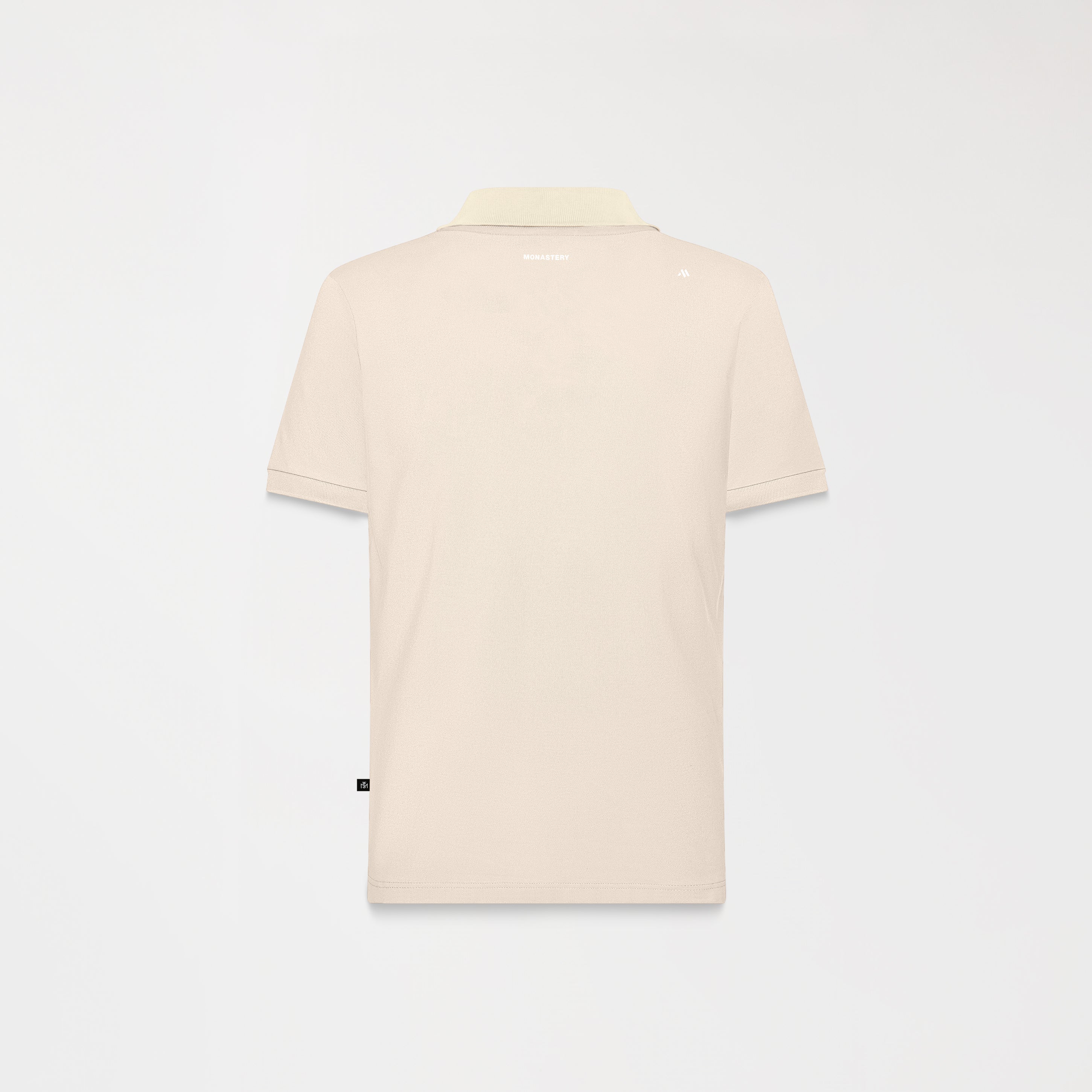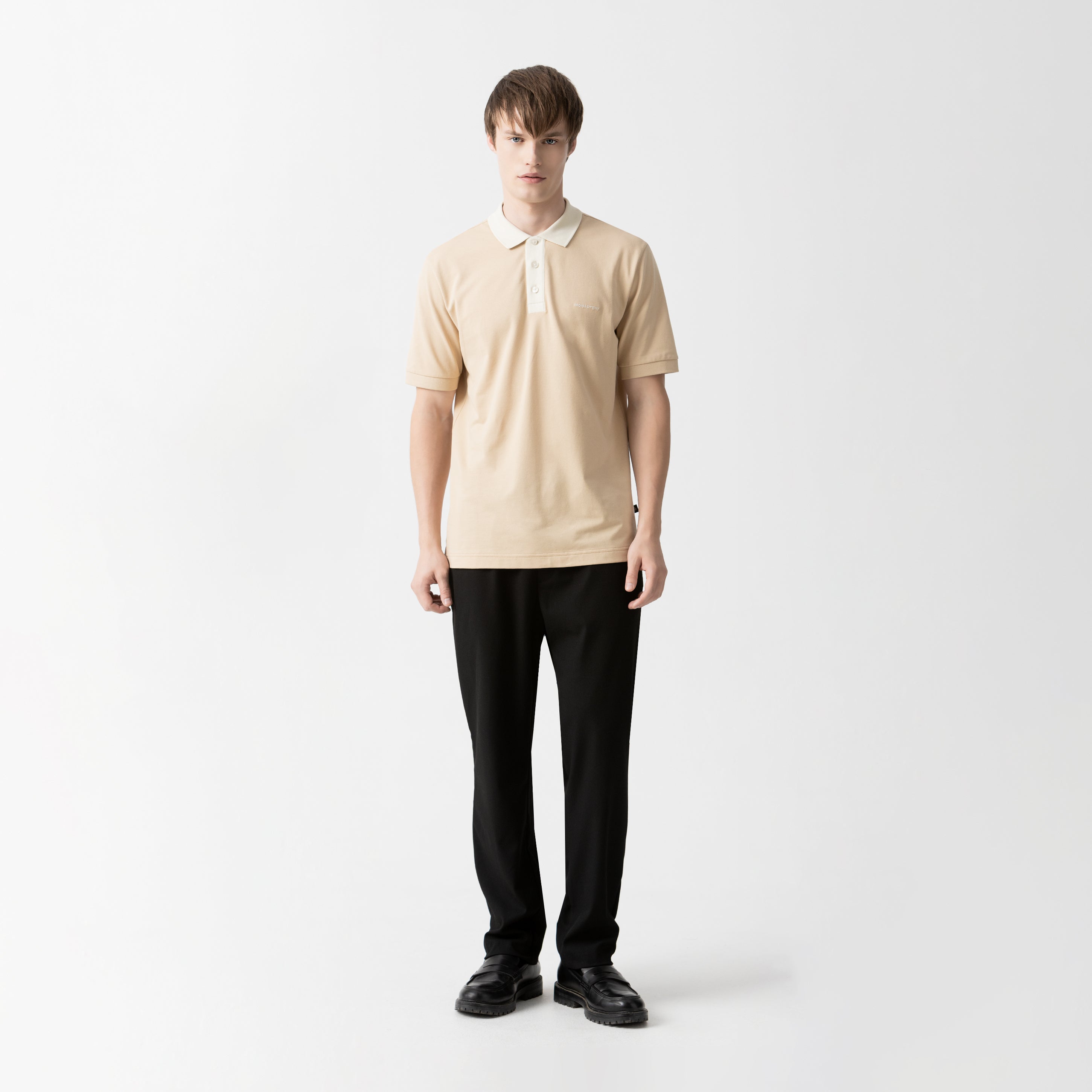 Lykos is a men's polo shirt crafted from Pima cotton piqué, a fiber renowned for its softness, breathability, and durability. With a regular fit, it features a contrasting knit collar and cuffs, adding character and definition to the design. A flat embroidery on the front adds a subtle and elegant detail, while a high-density print on the back reinforces the garment's identity with precision and contrast.
