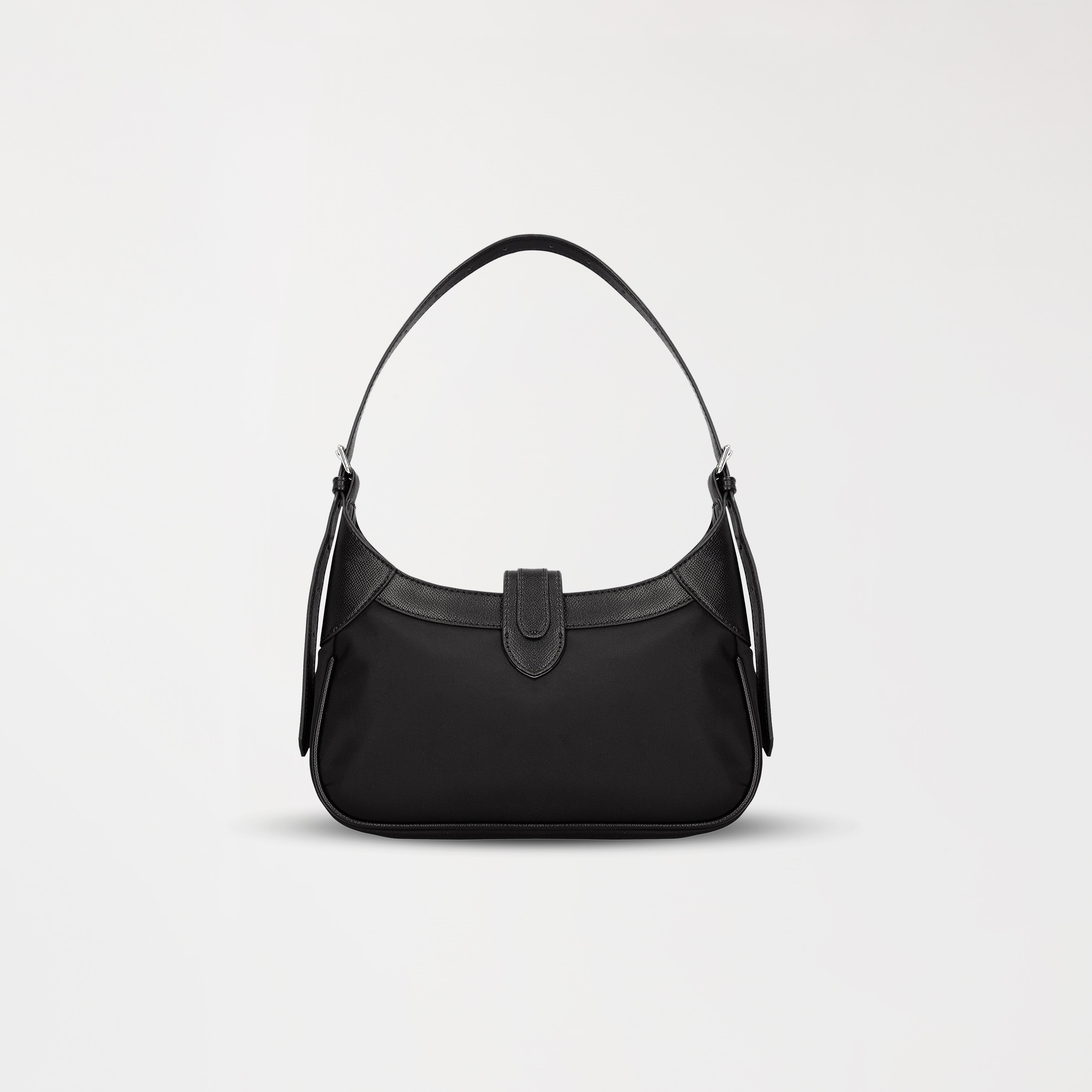 Shoulder bag made of polyamide and polyurethane, with a polyester lining, and an easy-access main compartment with a zipper covered by a decorative flap. It features slim, adjustable handles and silver-tone metal hardware. The MST logo is embellished with a metallic appliqué in the bottom corner. It combines versatility and style, suitable for everyday use or formal events thanks to its timeless and practical design.