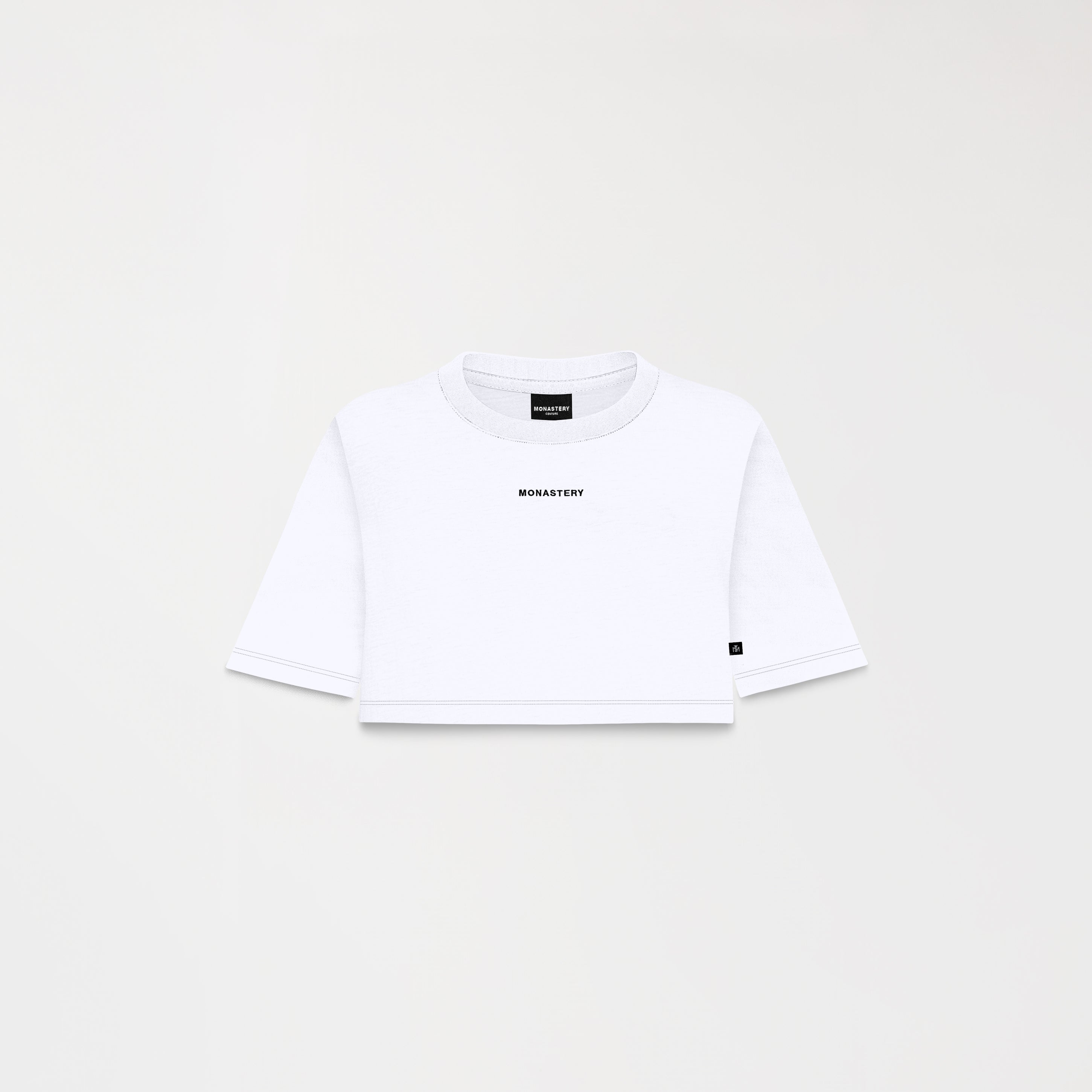 Naryssa is a crop top made from 100% high-quality, ultra-silicone-coated cotton that offers softness, freshness, and an excellent fit. It's cut in a small silhouette and is available in three colors: white, black, and sand dollar, an exclusive color to the collection. The front features a contrasting flat embroidery, providing a striking visual touch. The back combines flat embroidery and a flat print that complement the design with balance and style.