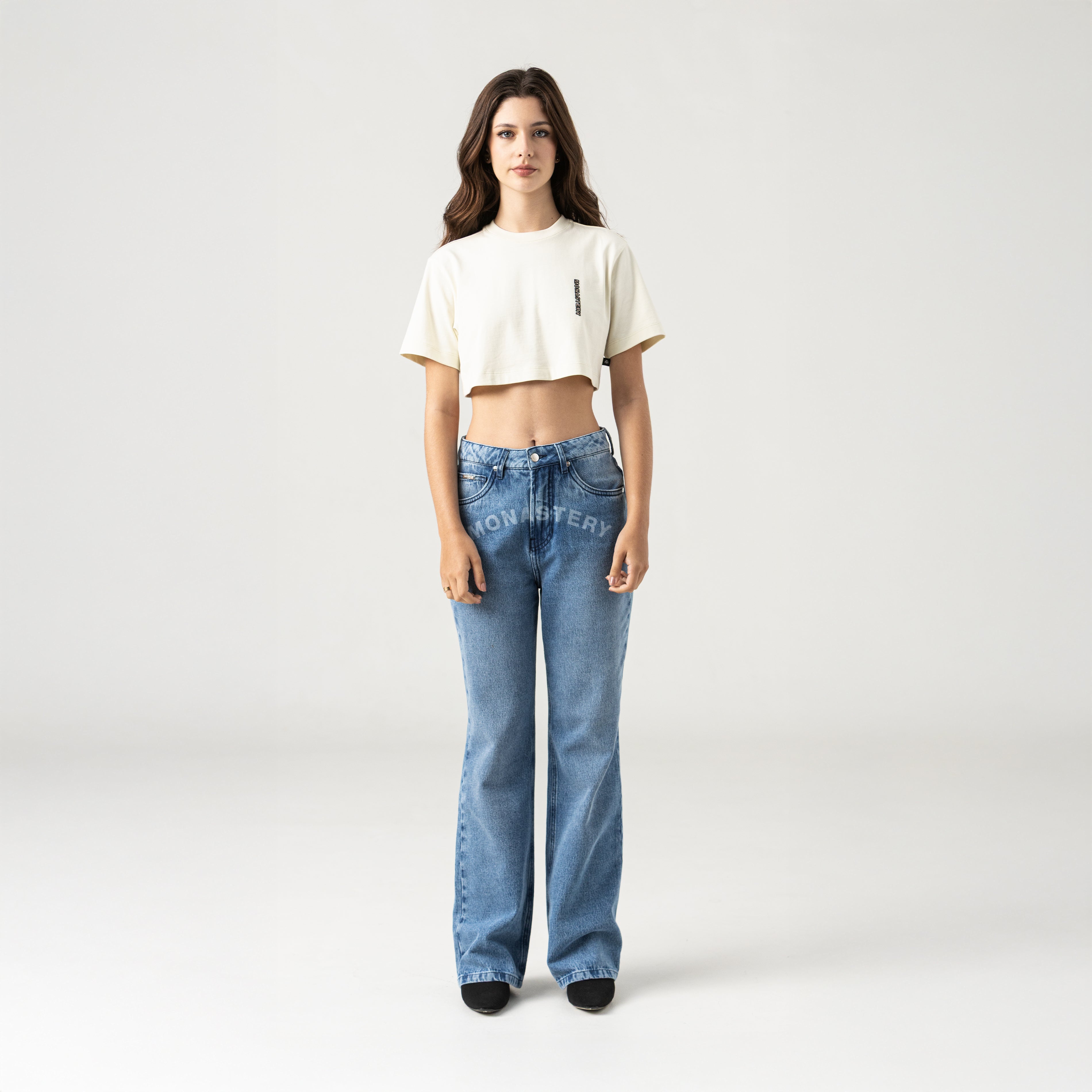 Feminine crop top in 100% cotton, exclusive to Monastery, with a small silhouette.