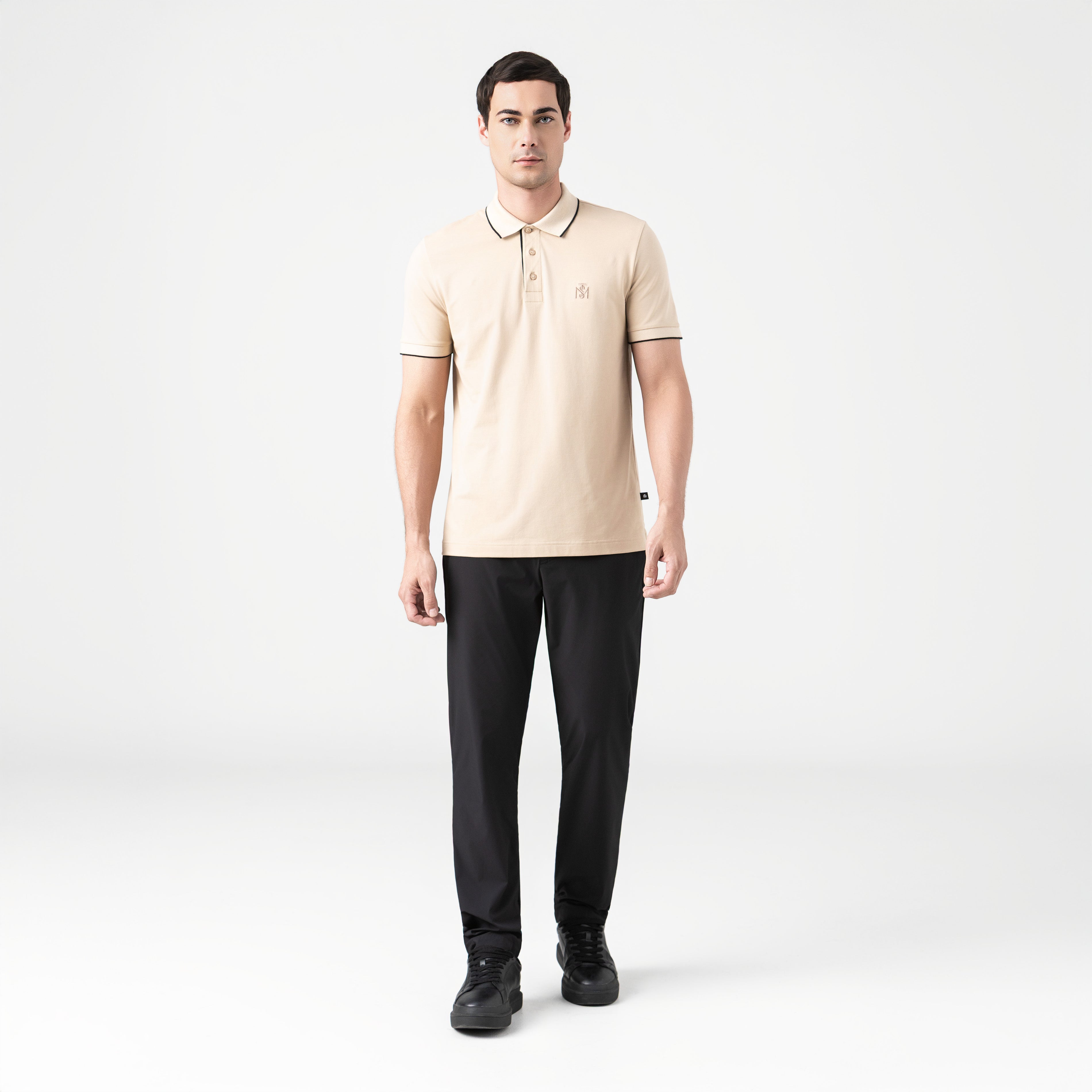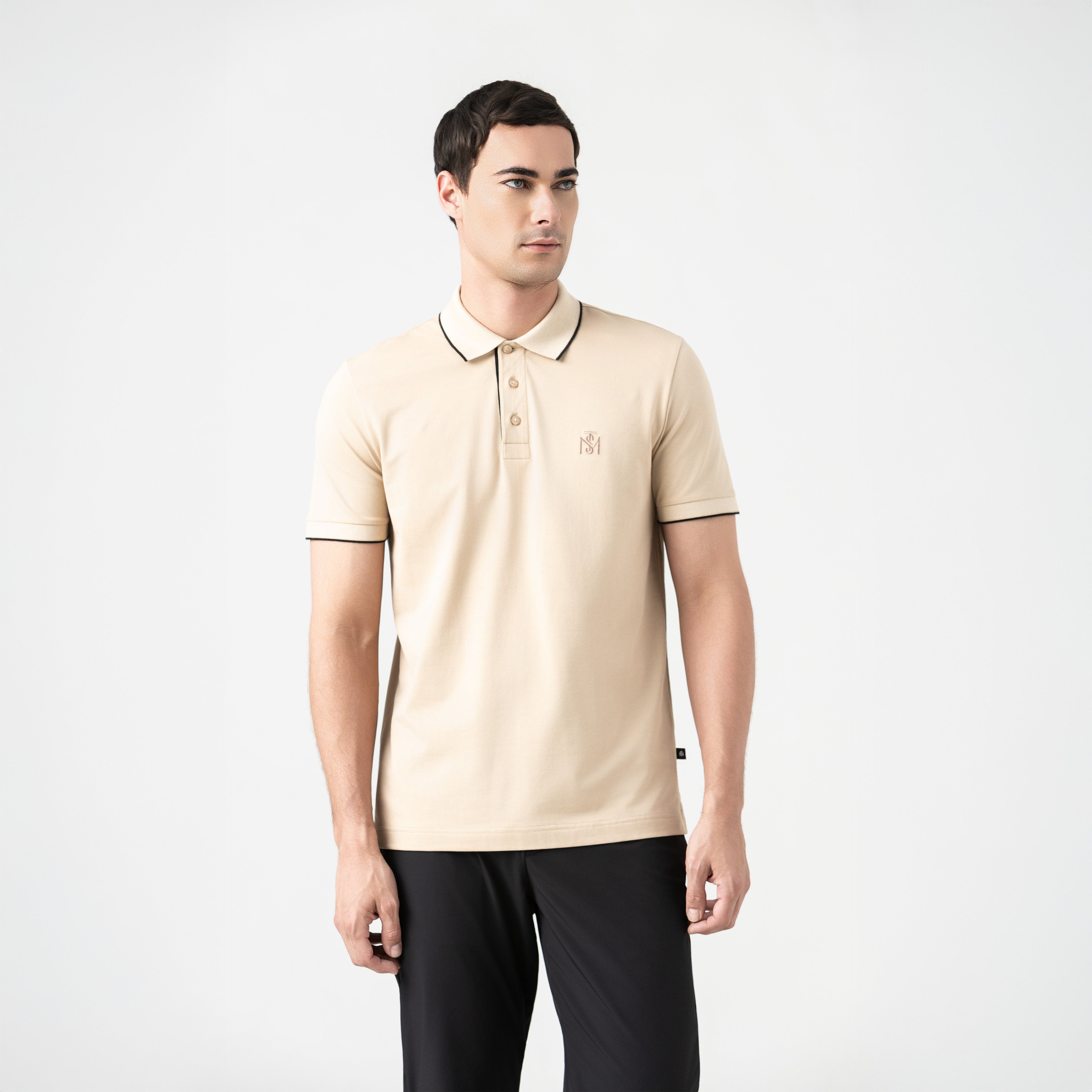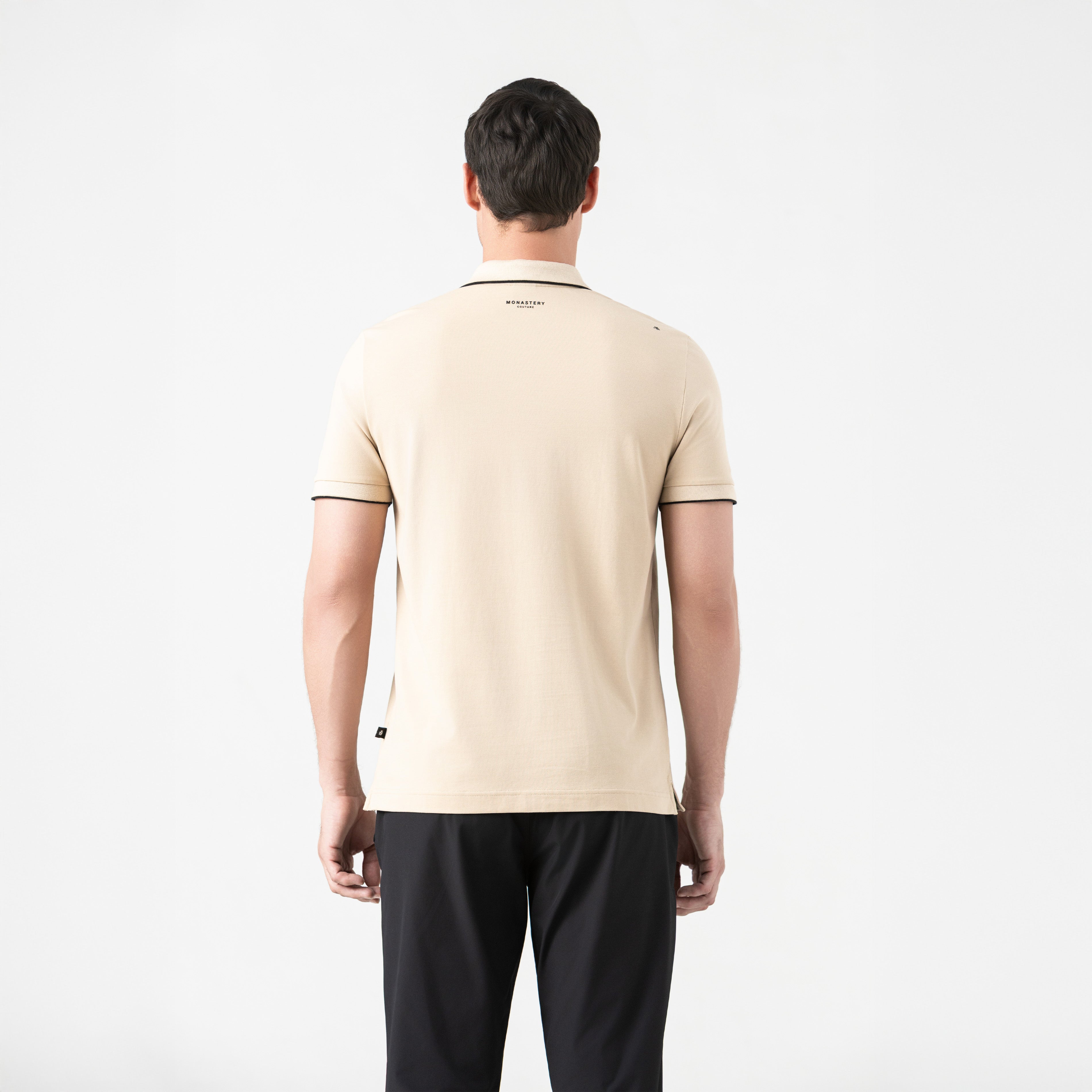 Nolan is a men's polo shirt, crafted in a regular fit, from 100% Peruvian Pima cotton exclusively for Monastery. The Nolan polo shirt combines sobriety and detail with a modern approach. It features a knit collar and woven cuffs with contrasting tipping that enhance its silhouette. The iconic TSM logo embroidered on the front and the high-density print on the back provide a subtle identity. The contrasting inner button placket adds a sophisticated finish, ideal for a purposeful casual look.