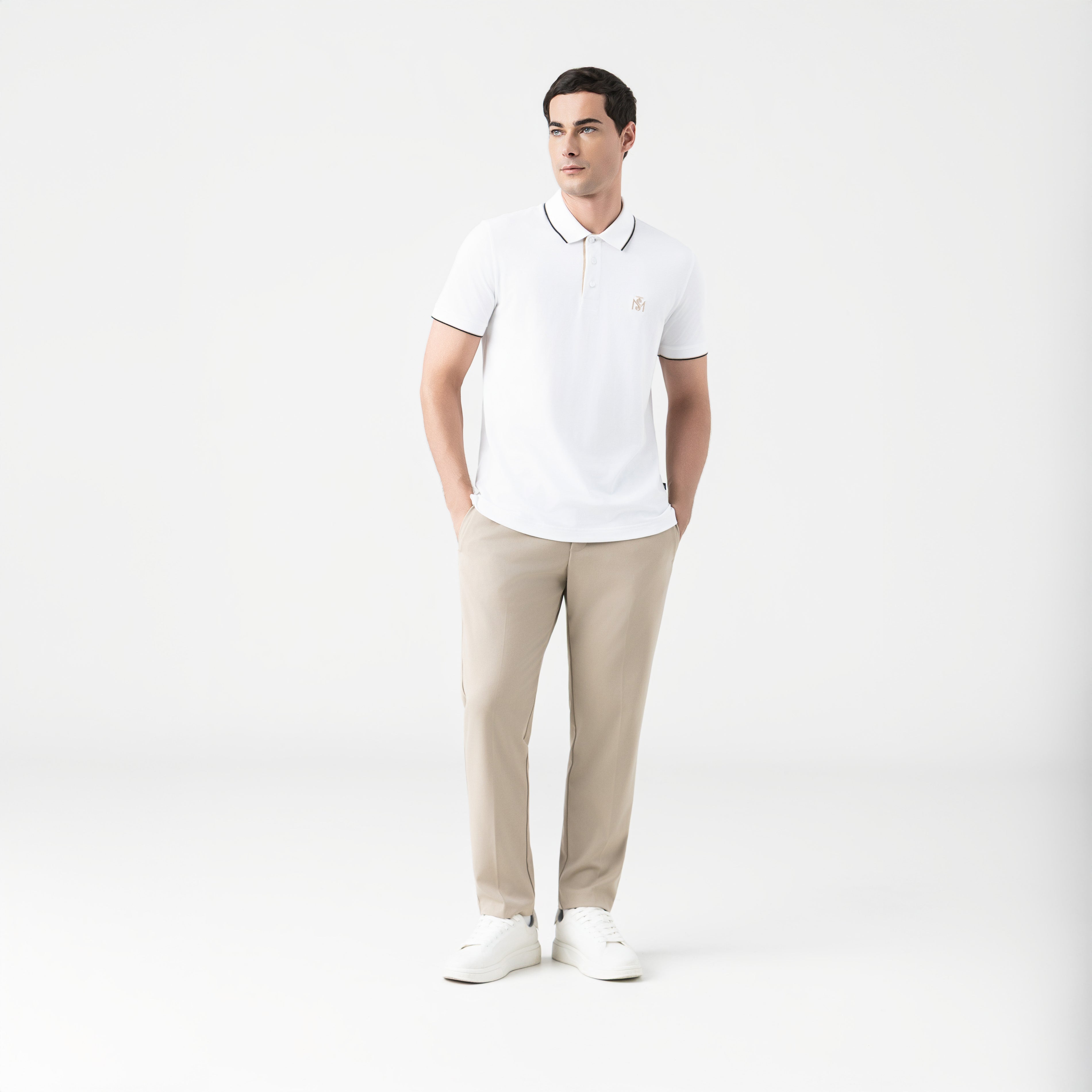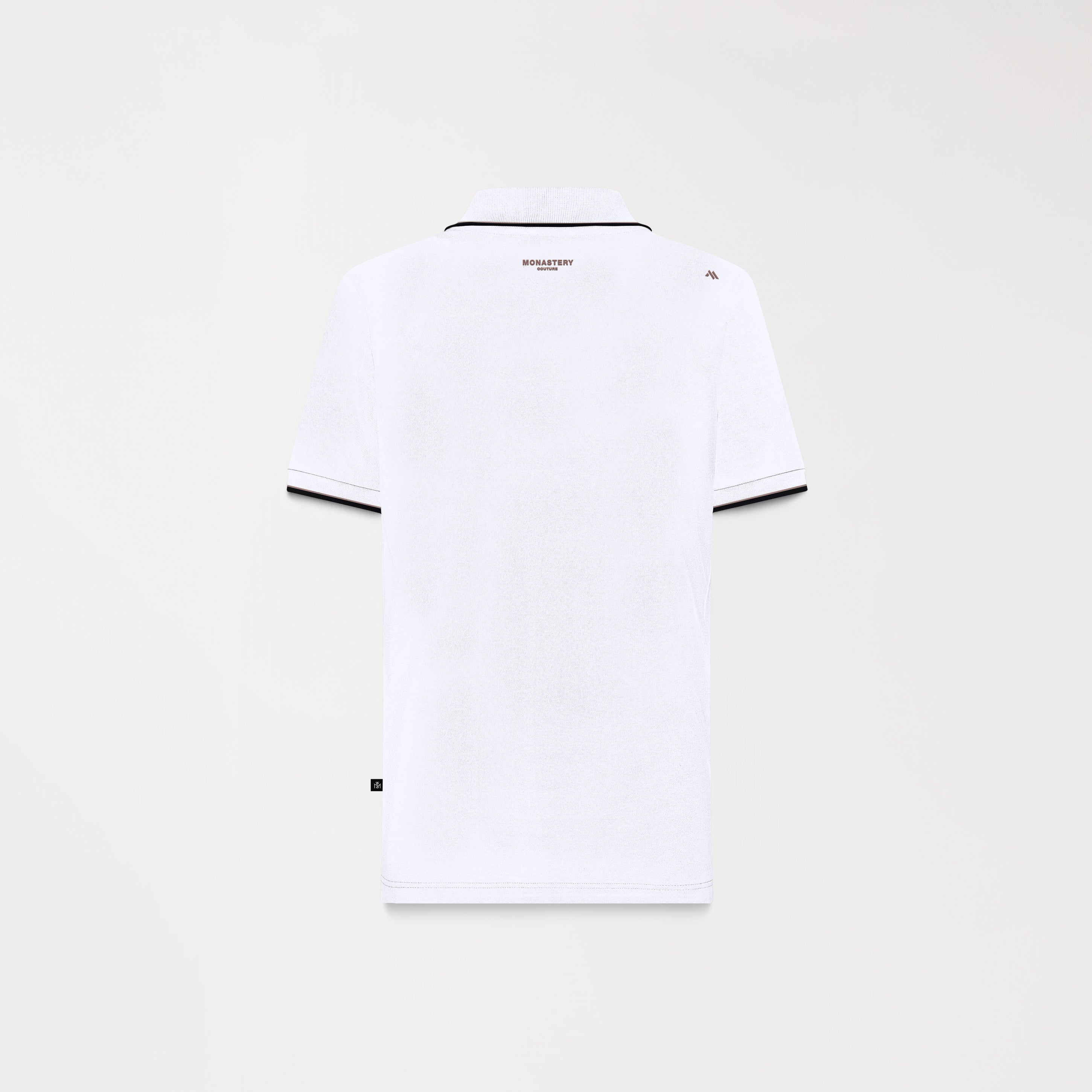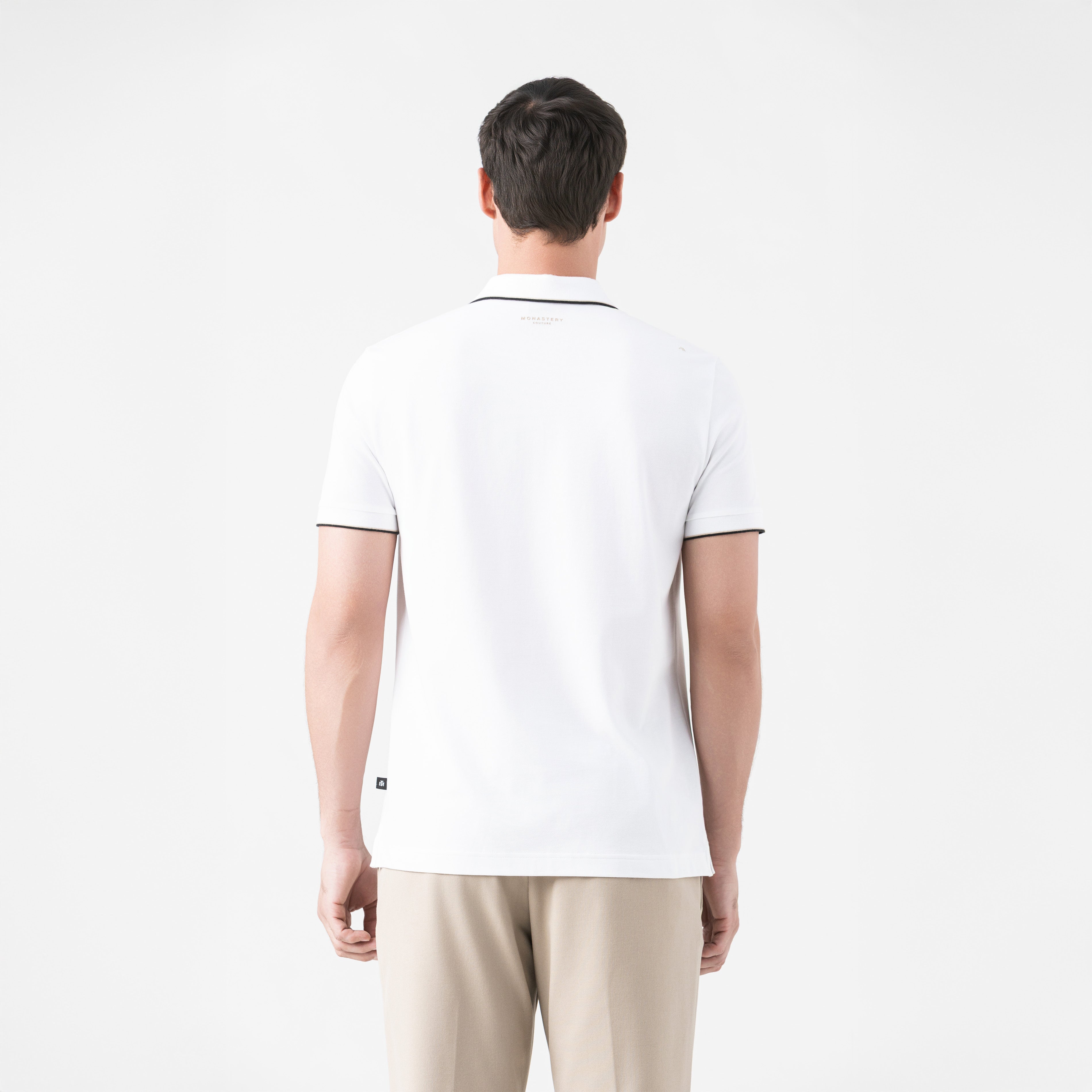 Nolan is a men's polo shirt, crafted in a regular fit, from 100% Peruvian Pima cotton exclusively for Monastery. The Nolan polo shirt combines sobriety and detail with a modern approach. It features a knit collar and woven cuffs with contrasting tipping that enhance its silhouette. The iconic TSM logo embroidered on the front and the high-density print on the back provide a subtle identity. The contrasting inner button placket adds a sophisticated finish, ideal for a purposeful casual look.
