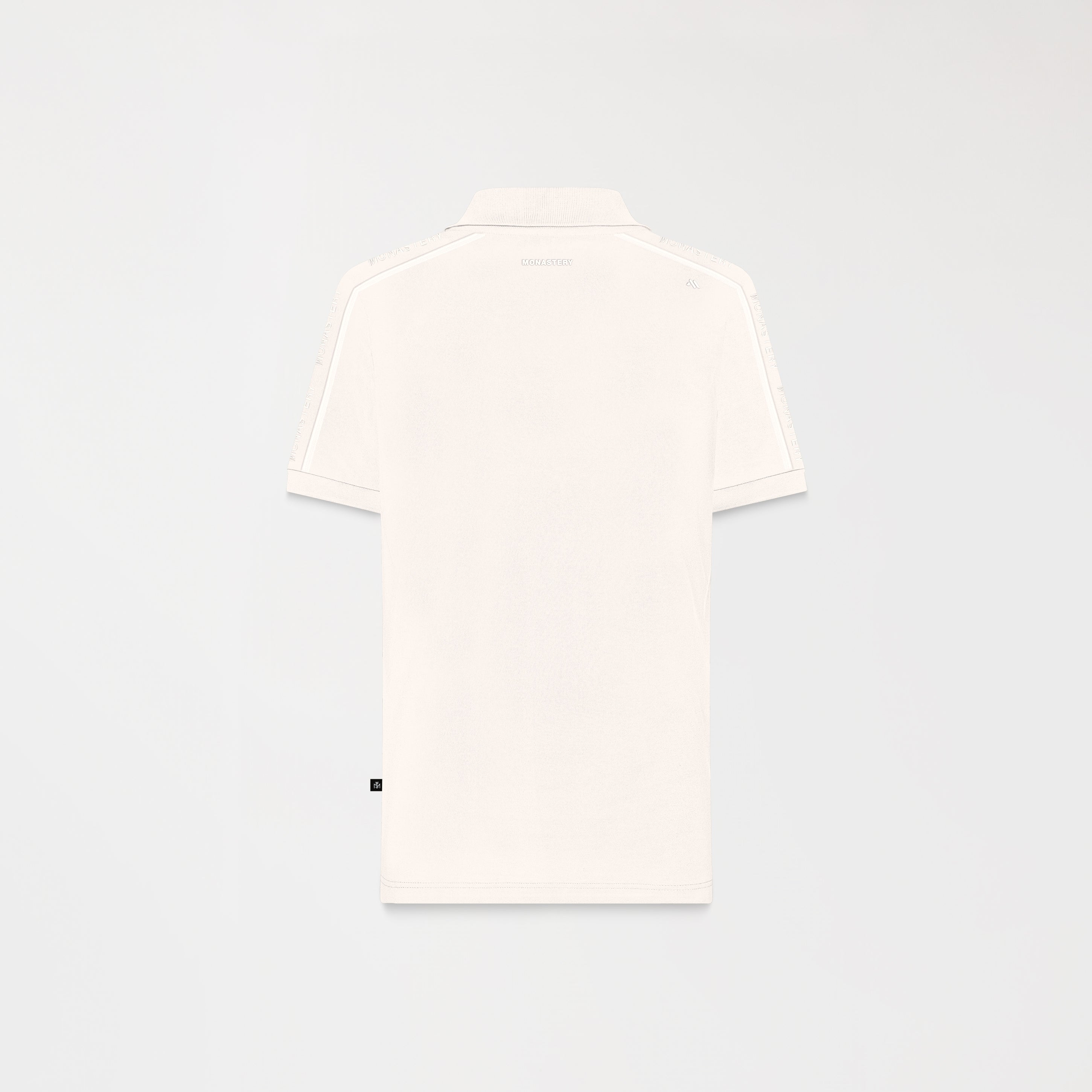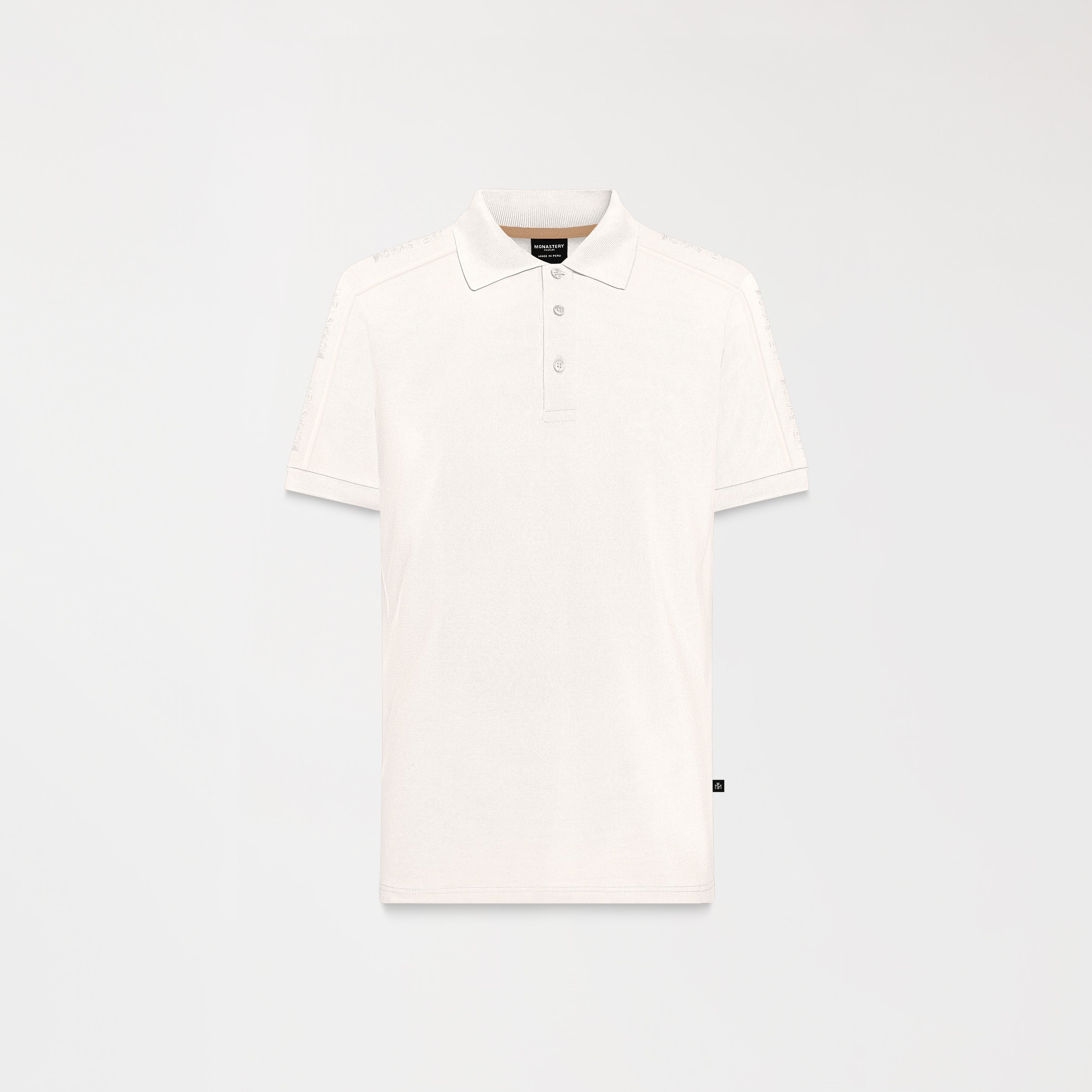 Prometheus is a men's polo shirt, crafted in a regular fit, from 100% Peruvian Pima cotton exclusively for Monastery. With a refined silhouette and carefully crafted details, it stands out for its shoulder and sleeve cuts with Monastery logo embroidery and bias binding that add dynamism and sophistication. The knitted collar and cuffs elevate its structure, and the high-density print on the back reflects identity and style. The matching buttons, counterpointed with the brand's emblem, complete a garment ideal for casual occasions with an elegant and distinctive touch.