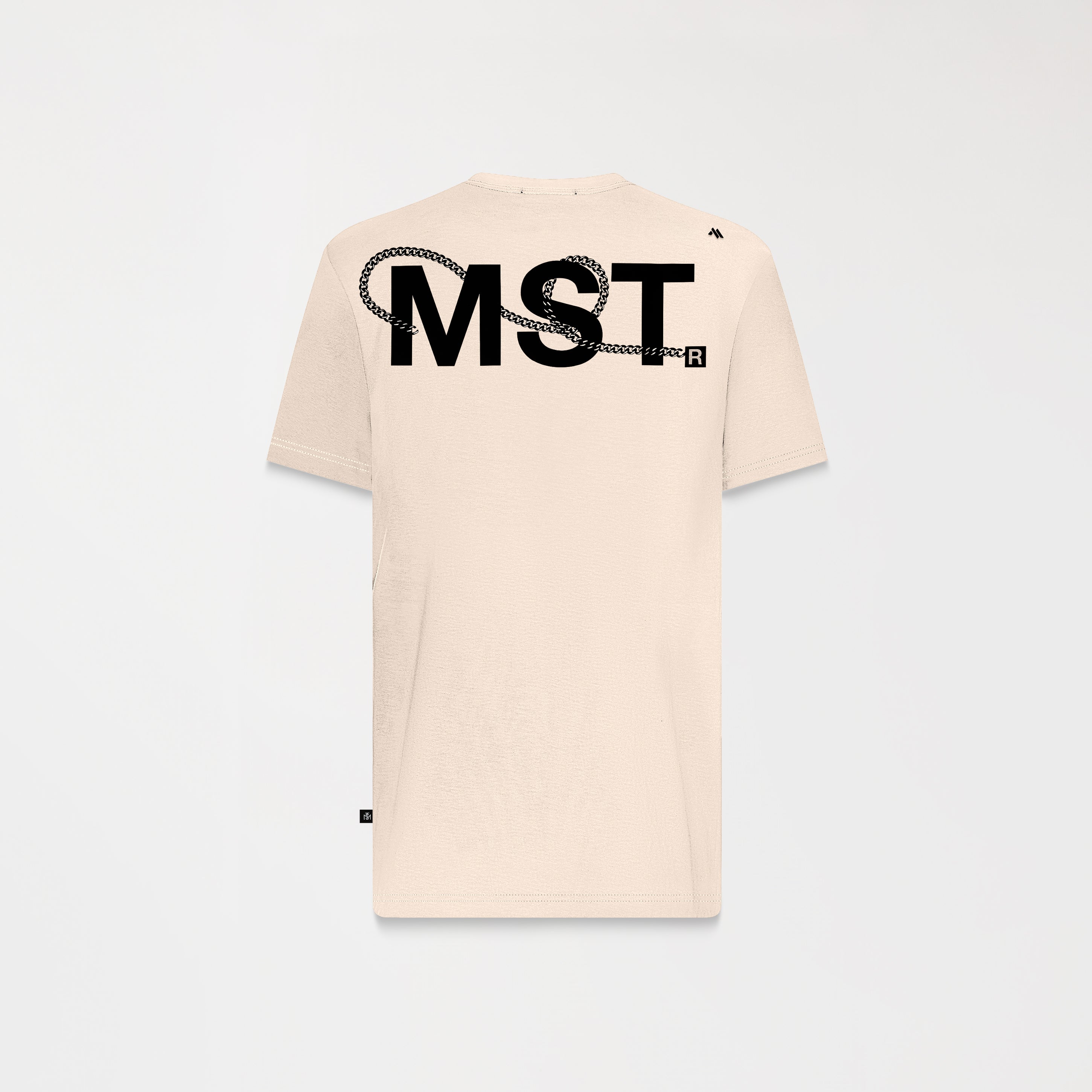 The Ramson men's t-shirt, with a bold and controlled aesthetic, is made from high-quality cotton and features a regular silhouette with a 2.5 cm ribbed neckline. The back MST logo graphic combines flat and high-density printing techniques, highlighting an intertwined chain detail that provides visual strength and sophistication. On the front, a high-density print reinforces the garment's identity. Perfect for a casual style with attitude.