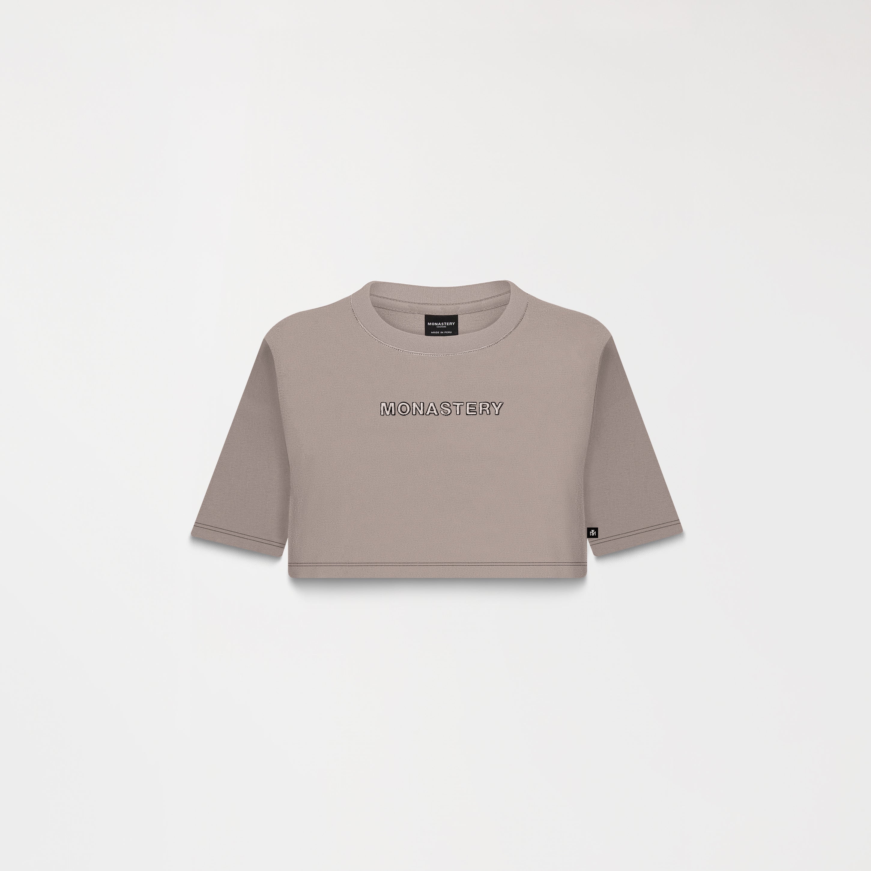 Roisin features the Monastery logo on the front in 3D embroidery + contrast stitching on the hem and sleeves.