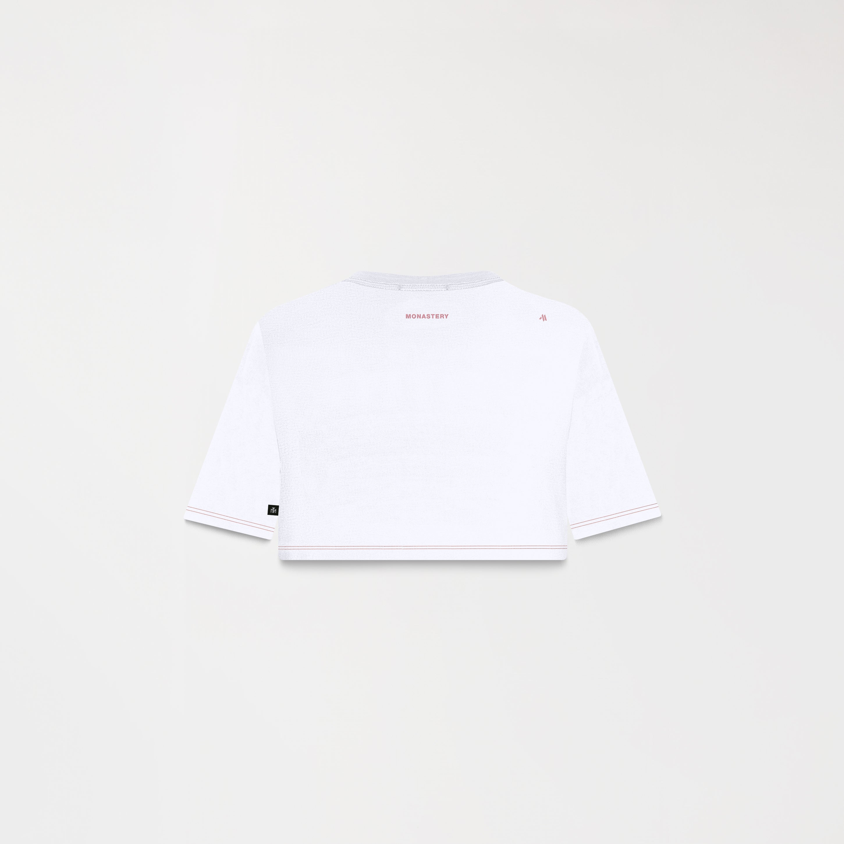 Feminine crop top in 100% cotton, exclusive to Monastery, with a small silhouette.