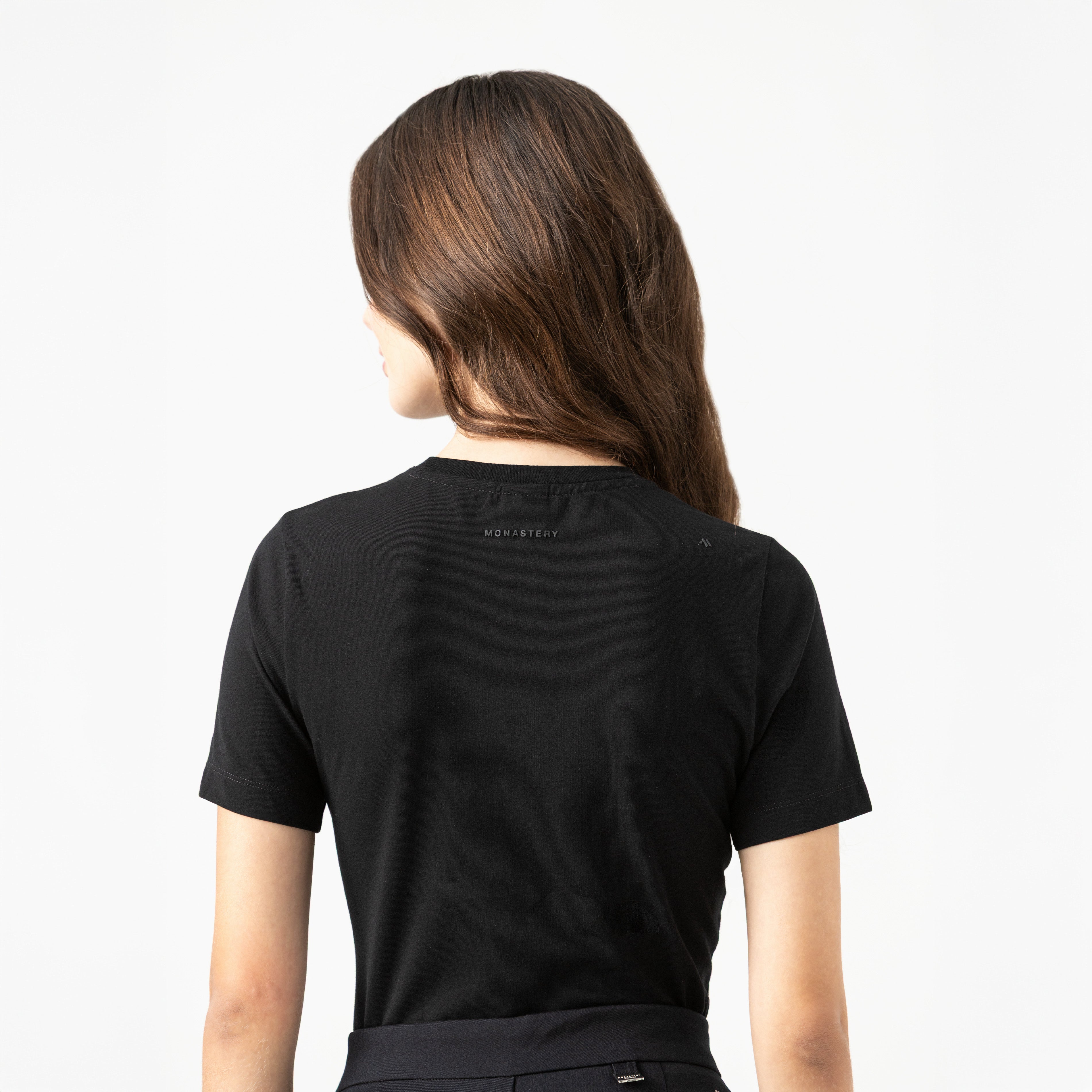 Women's T-shirt with a small silhouette, made from high-quality Peruvian cotton, designed to enhance the figure with style and originality. It features a caviar print on the front, providing texture and a sophisticated finish, while the back incorporates traditional artwork in a high-density print, creating a visual and tactile contrast that highlights its unique identity. The Saylor T-shirt is ideal for those looking for a garment with character, detail, and quality.