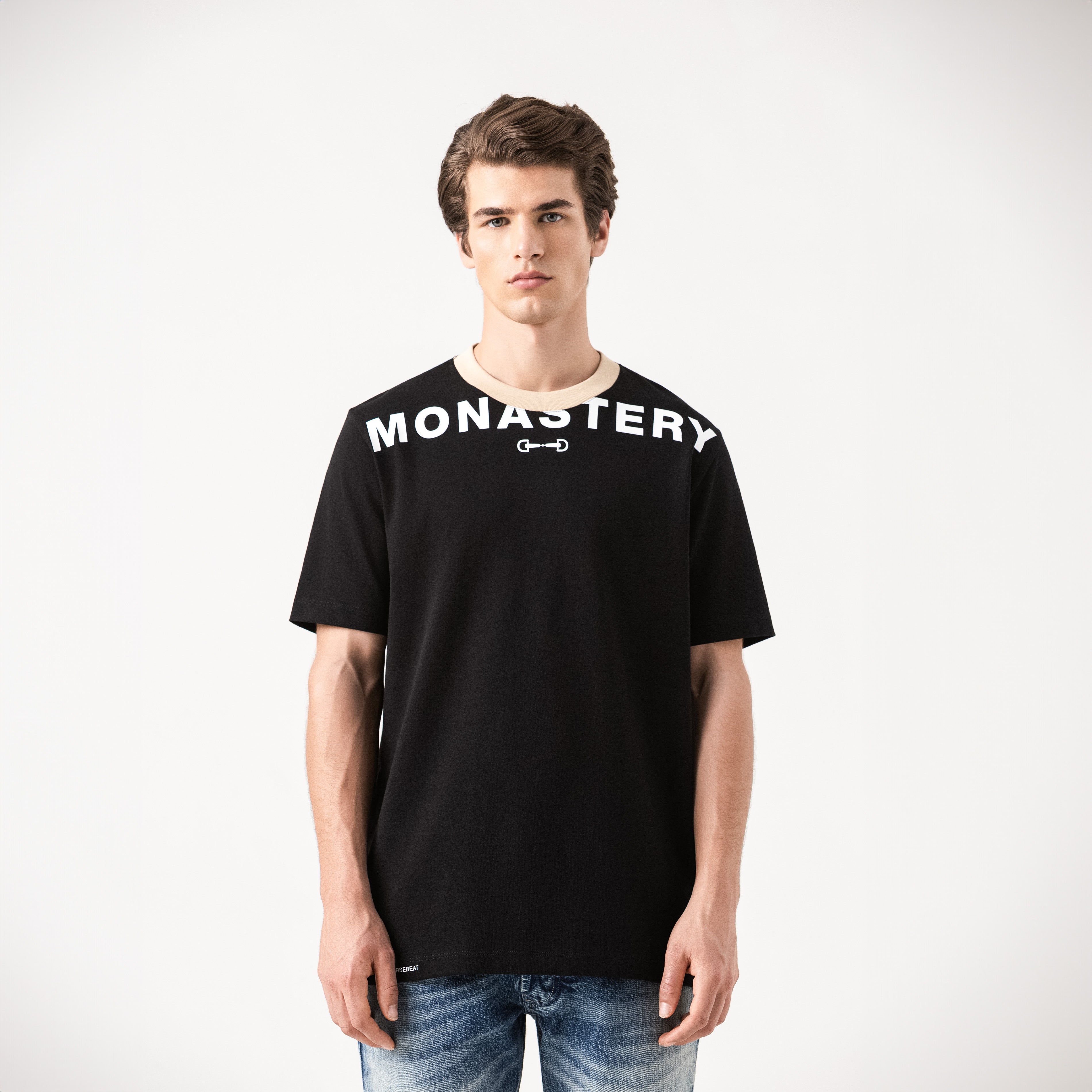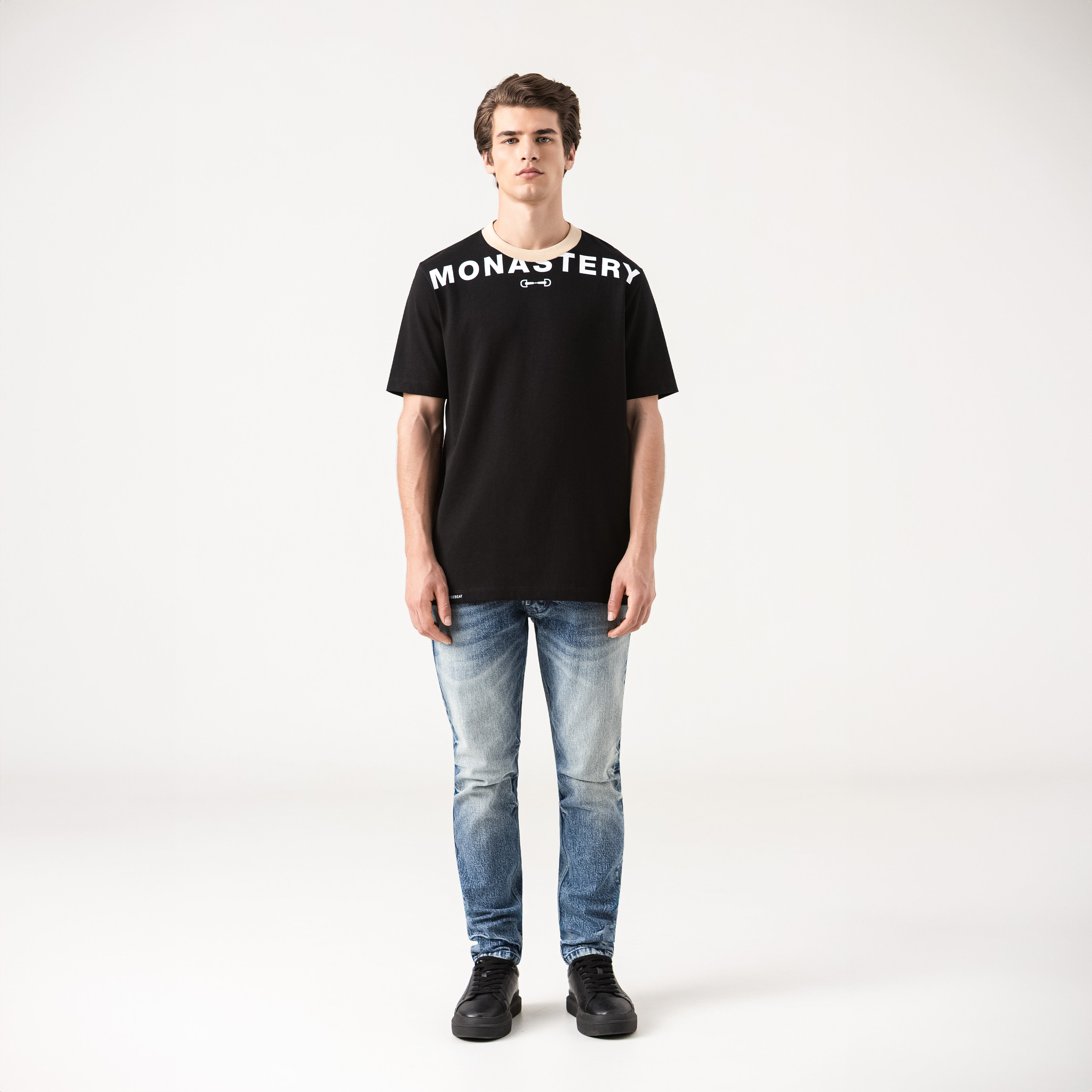 Slepnir is a men's t-shirt. With a regular silhouette, a 2.5 cm ribbed collar in a contrasting color, and made of high-quality cotton, this t-shirt stands out for its balance of simplicity and detail. The flat print on the front provides a clean, modern touch, while on the back, a high-density print introduces texture and depth, elevating the piece with understated sophistication. Perfect for those who value refined design and seek to subtly stand out in their casual moments.