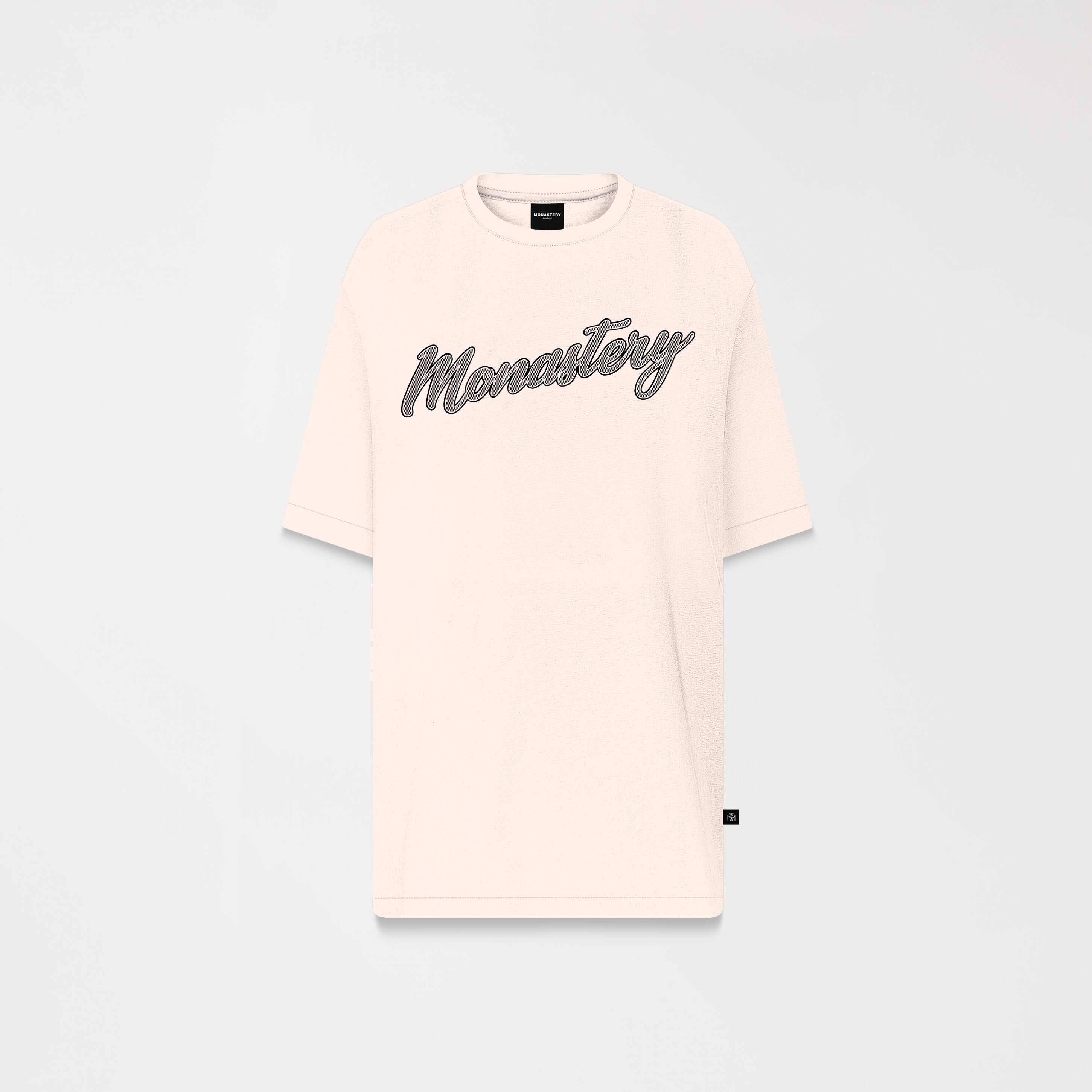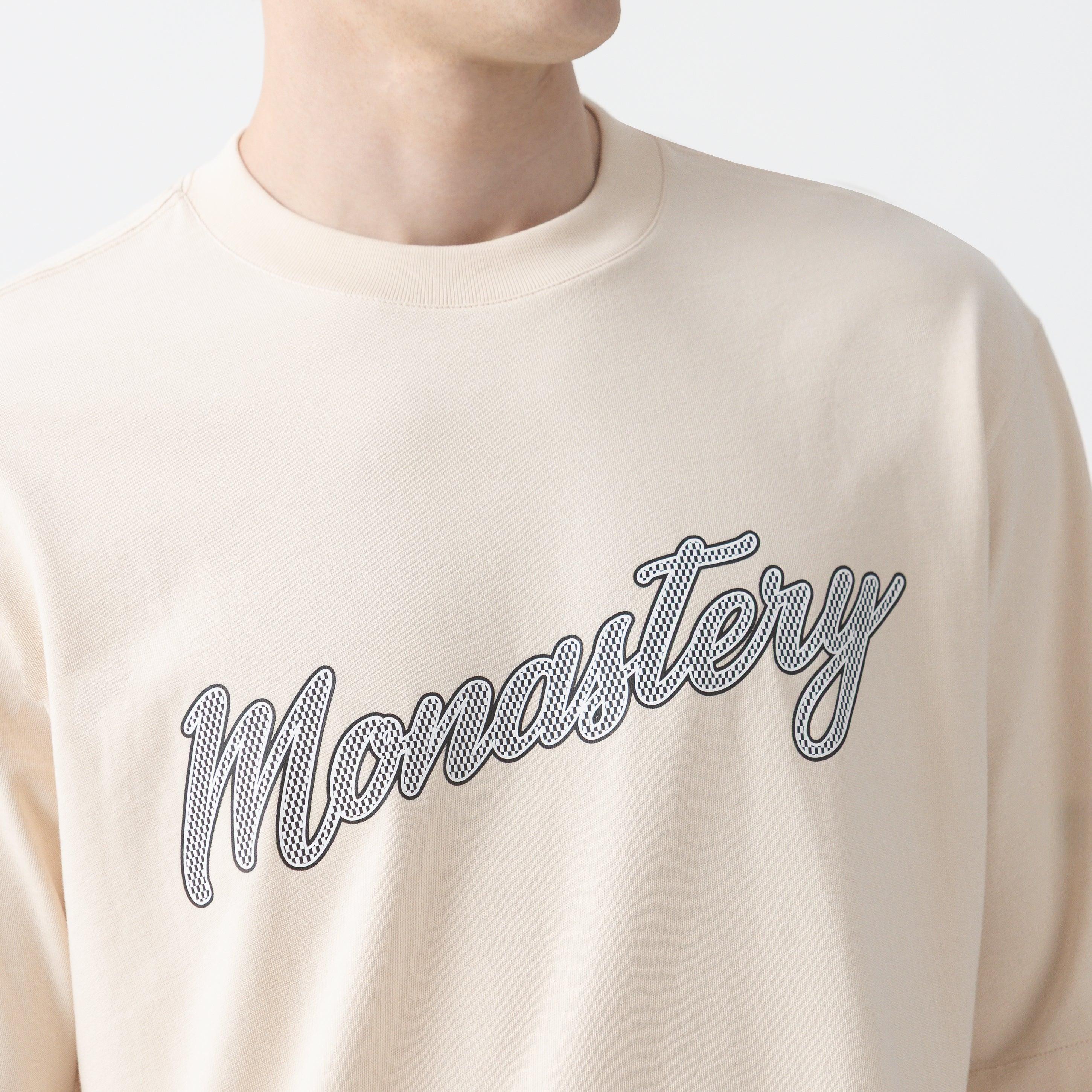 Its design features a ribbed collar and flat prints on the front and back, where the brand's logos are presented with understated elegance and graphic impact. A piece with a contemporary and urban aesthetic, created for those seeking ample comfort and an authentic, versatile style, true to the Monastery DNA.