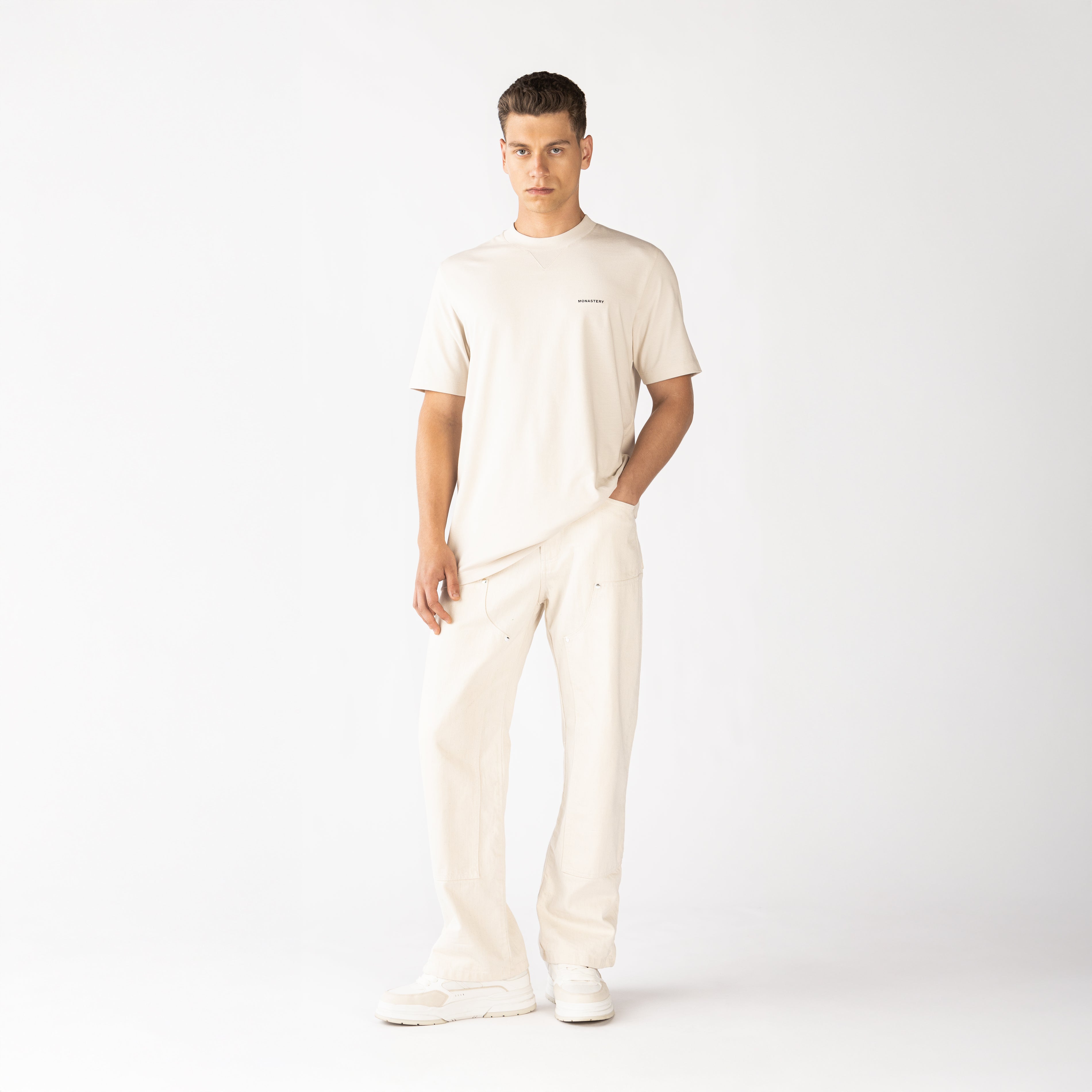 This moonbeam Stirling men's T-shirt, made in high quality Monastery cotton, combines comfort and style. It features a 3 cm rib collar and a triangular cut at the bottom, adding a modern and stylish touch. On the front, a flat embroidery on the heart stitch adds elegance, while the back is highlighted with high-density logo artwork, ensuring a distinctive and durable finish. Ideal for those who want a unique and comfortable garment, this T-shirt easily adapts to any casual look.