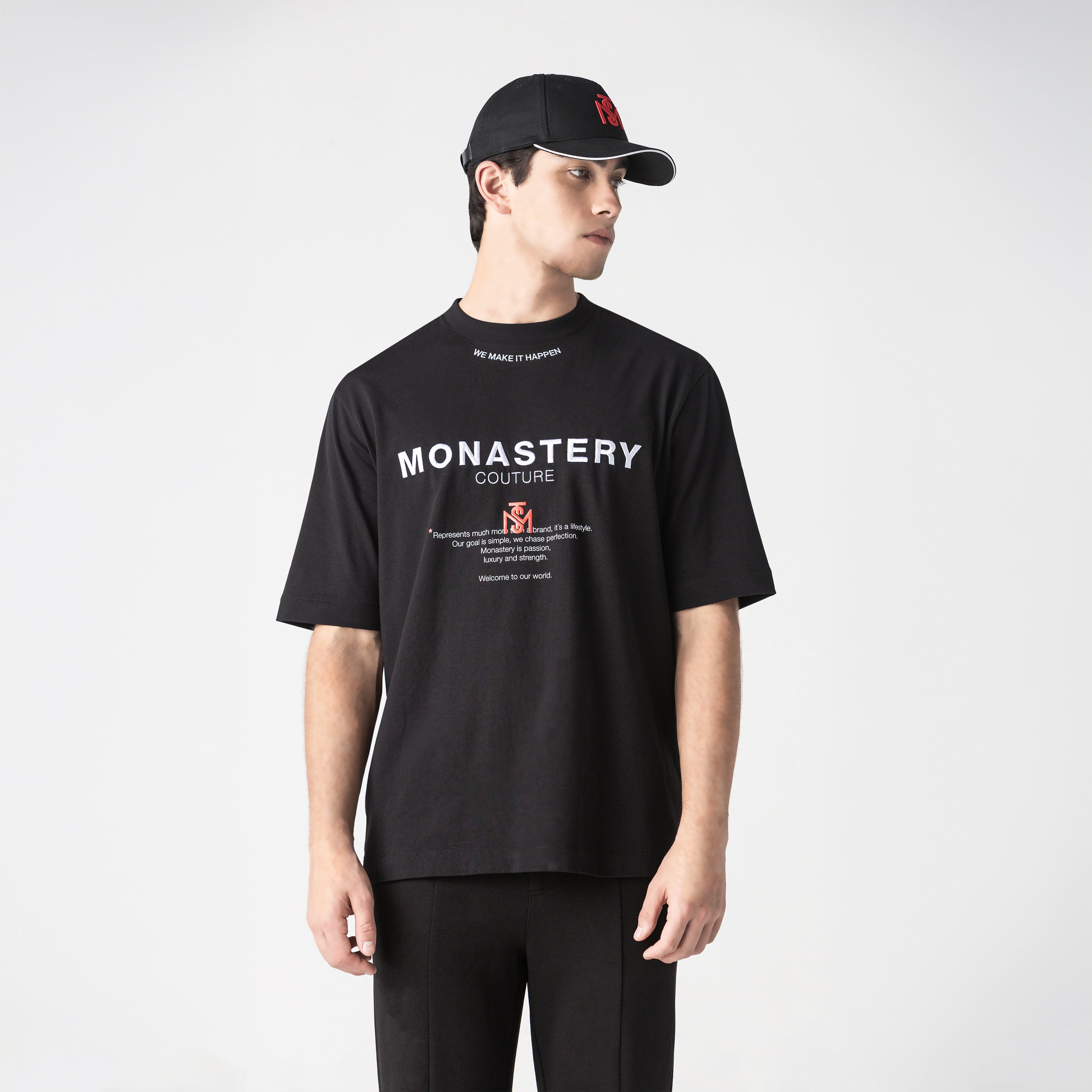 Men's oversized T-shirt with a 2.5 cm ribbed collar, made from high-quality, ultra-siliconized Peruvian cotton, offering superior softness, lasting comfort, and a flawless drape. Its relaxed fit adds presence and a sophisticated urban aesthetic.