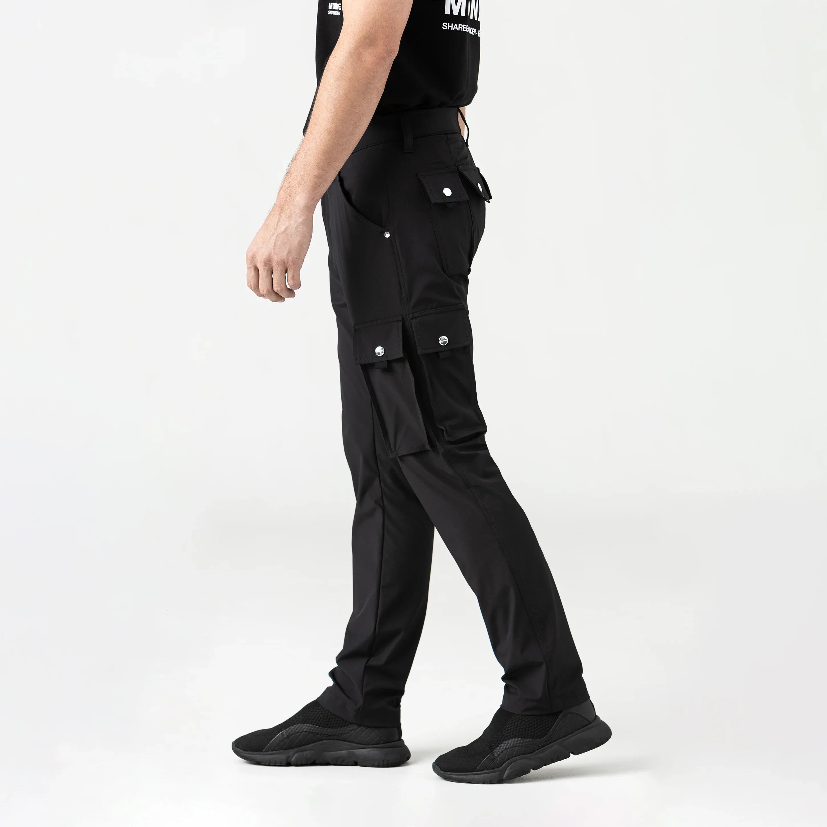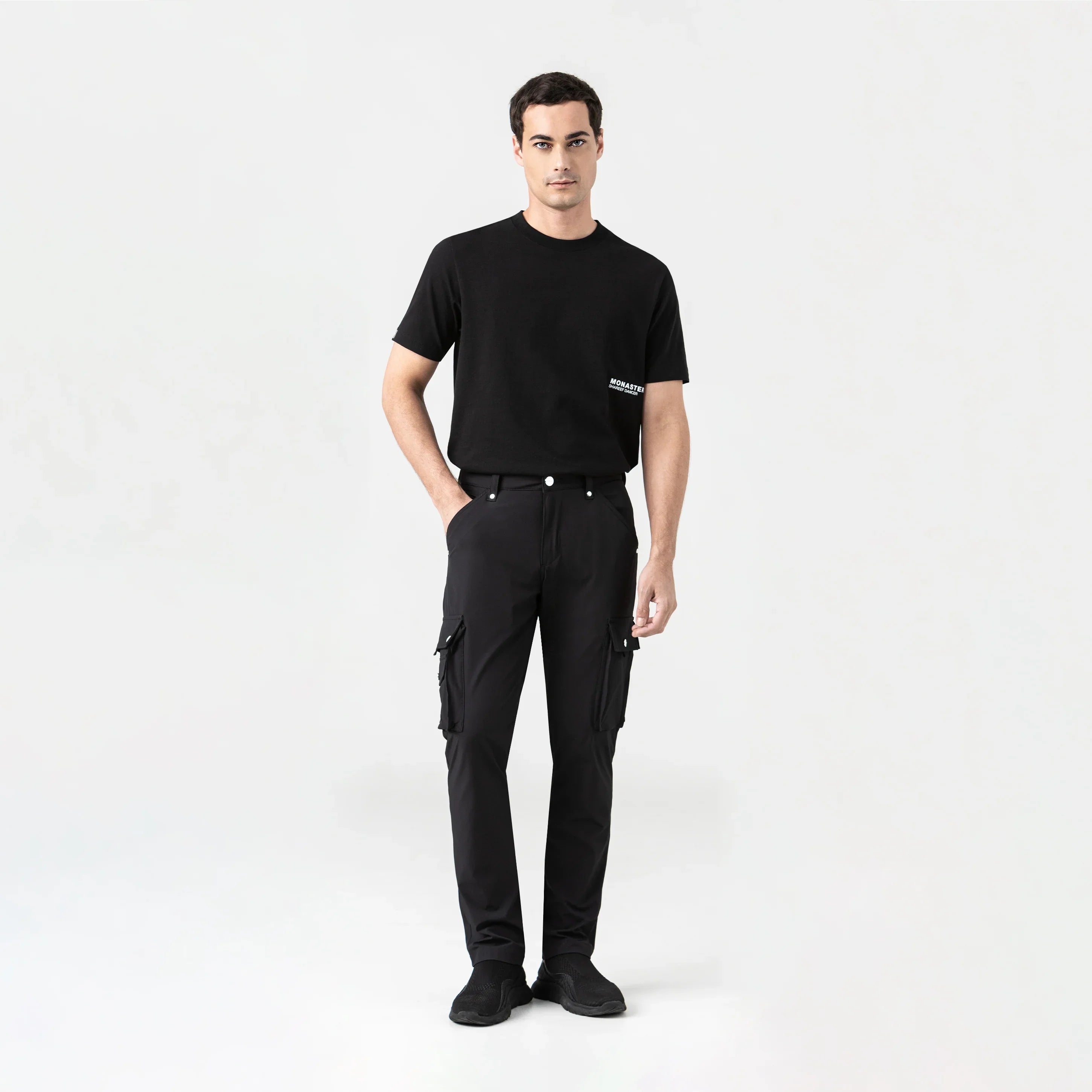 Designed for the modern man, these cargo pants balance functionality and design with a sophisticated approach. Every detail has been carefully considered: counterstained metal hardware, embroidered logo on the back pocket, and multiple pockets that reinforce their utilitarian character. A piece that translates urban style into an elegant touch, ideal for effortlessly transitioning from day to night.