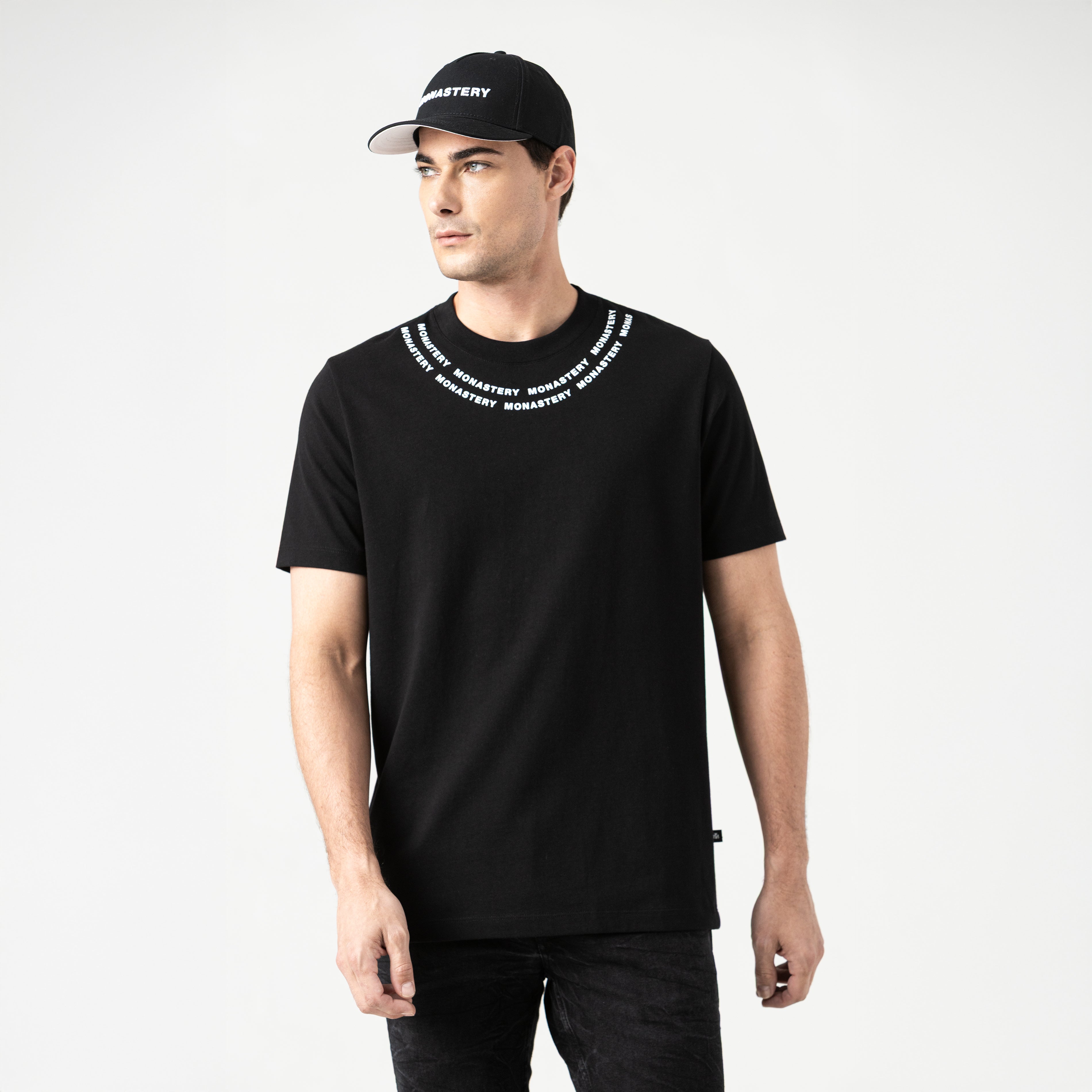 Subtle yet distinctive, the Trot men's t-shirt is made from 100% cotton and designed with a regular silhouette that offers comfort and structure. The front graphic repeats the Monastery logo in a high-density print, creating a tactile and distinctive pattern. On the back, a subtle high-density print adds balance and depth. The 2.5 cm ribbed collar completes this essential piece with a clean, contemporary aesthetic.