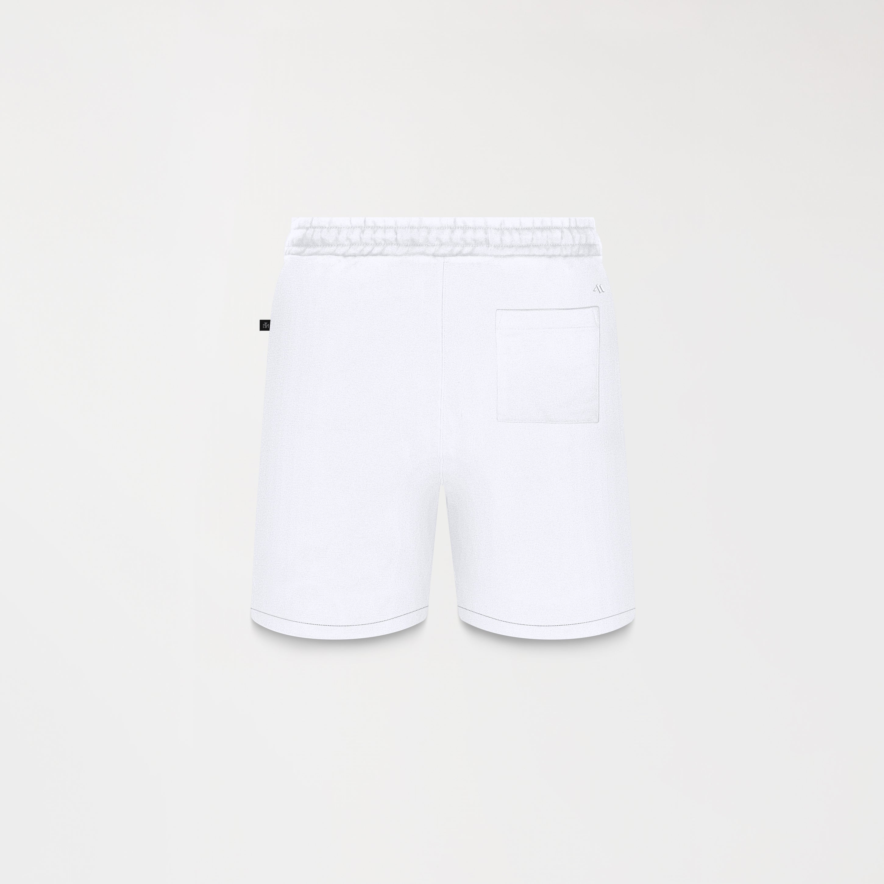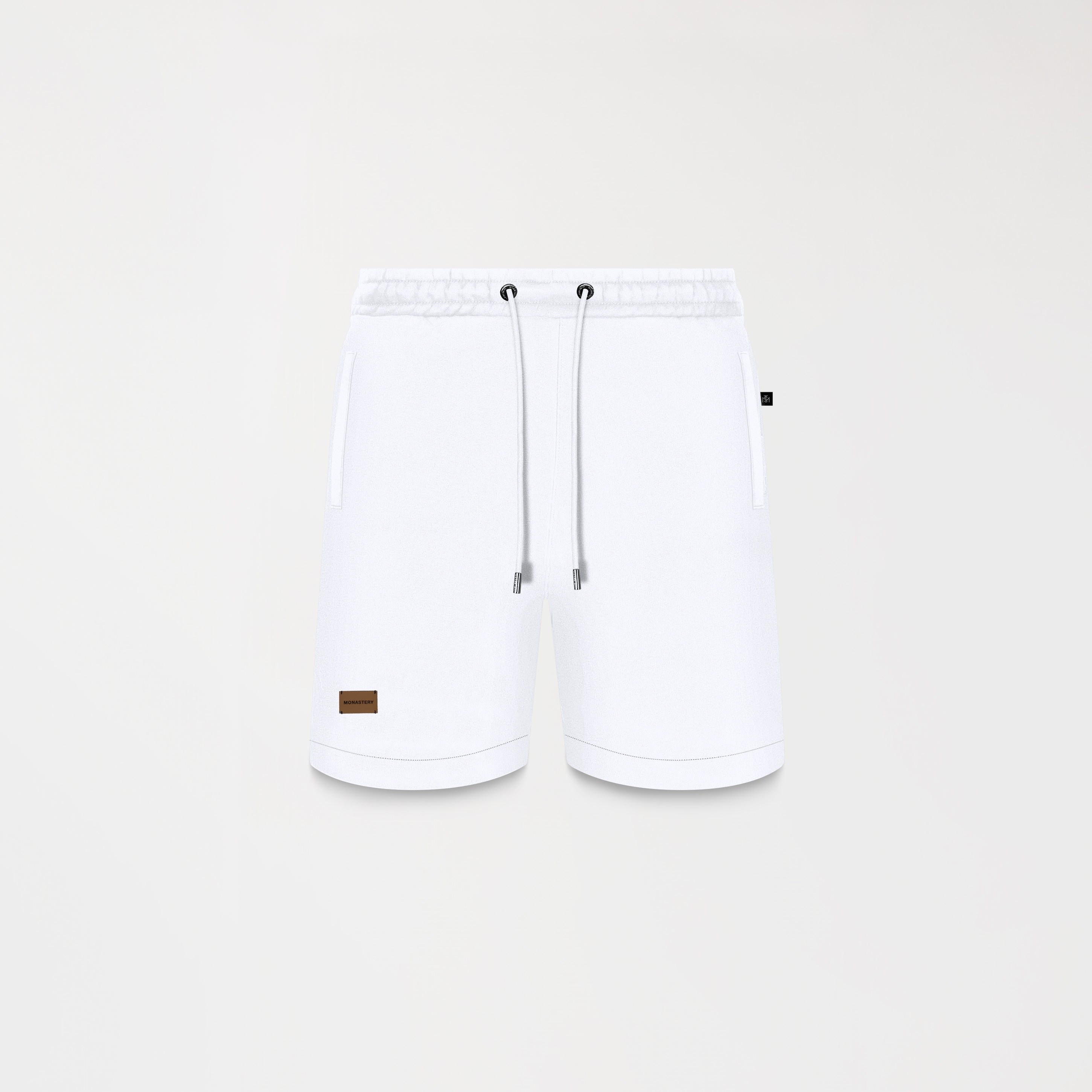 Vikrant is a Burda set, featuring an oversized T-shirt with a fluid drape and relaxed structure. Its design is enhanced by a semi-high-density print on the front and back. A pair of shorts complements the set with an oversized silhouette and high-end tailoring details. It features a matching drawstring with contrasting metal toe caps, providing a distinctive and functional accent. The design includes a semi-high-density print and polyurethane appliqué, a combination of comfort, structure, and meticulously designed details.