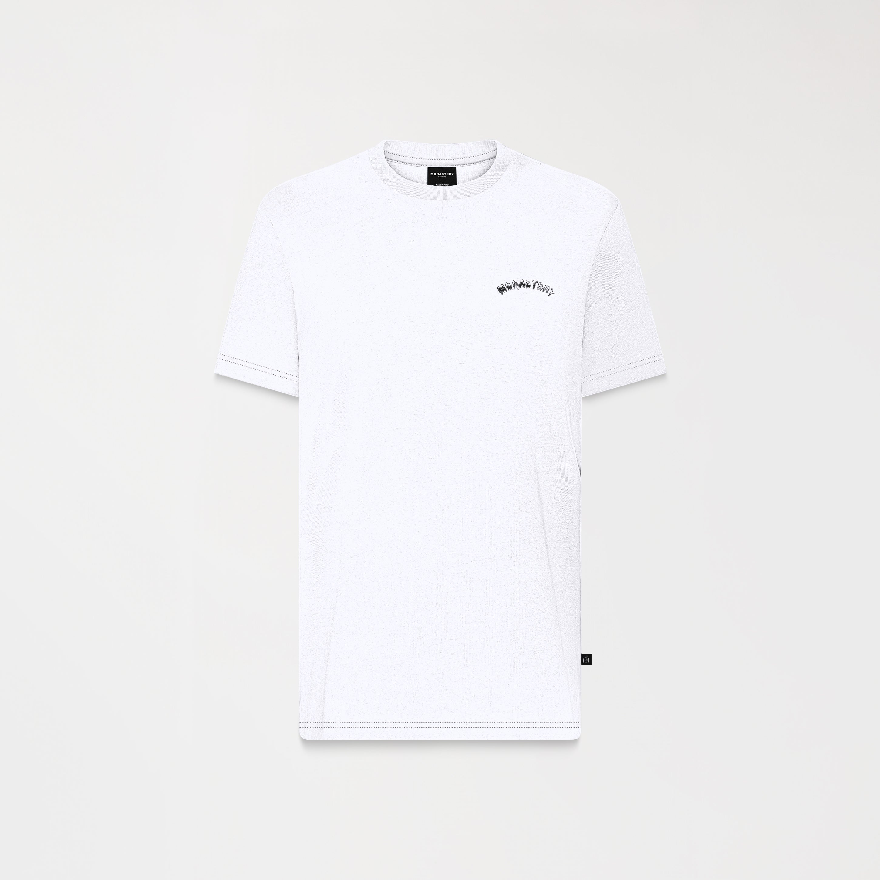 Yankton is a men's regular-fit T-shirt made from MST cotton, a soft and durable fabric that offers lasting comfort. The front and back feature prints applied using a flat plastisol technique, where the intentional use of contrasting colors enhances the graphic presence and visual identity of the garment. An essential piece with character, designed to stand out within a refined and contemporary aesthetic.