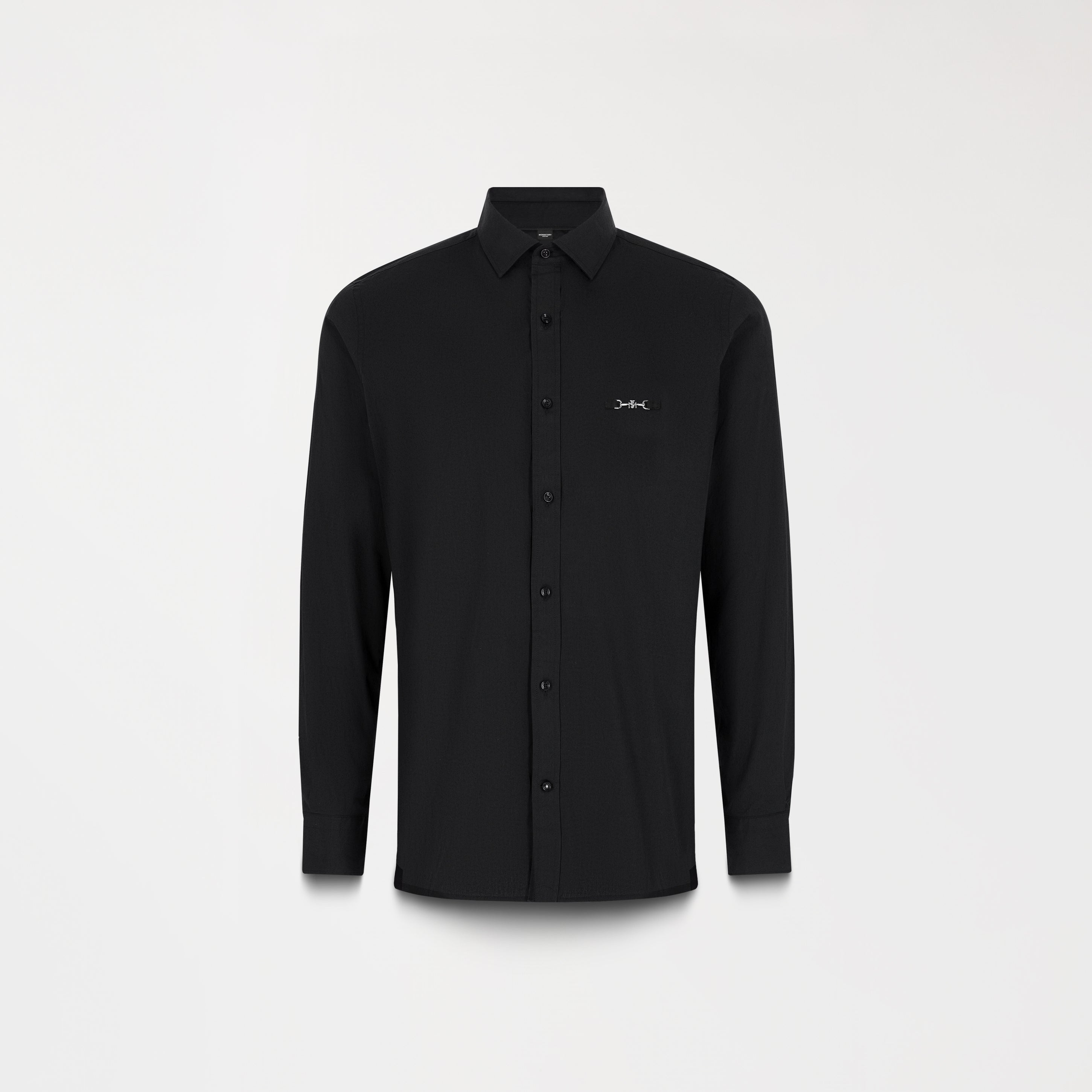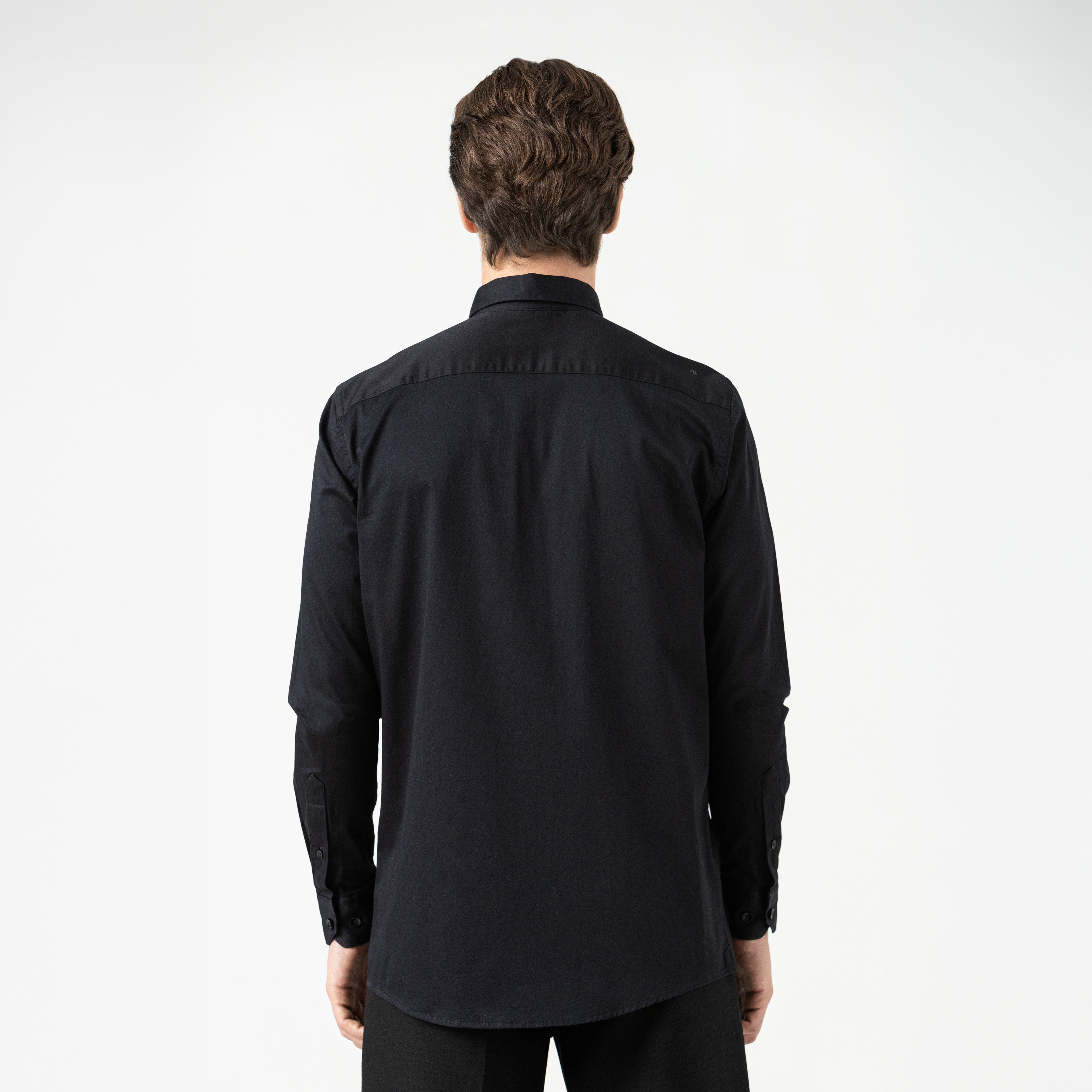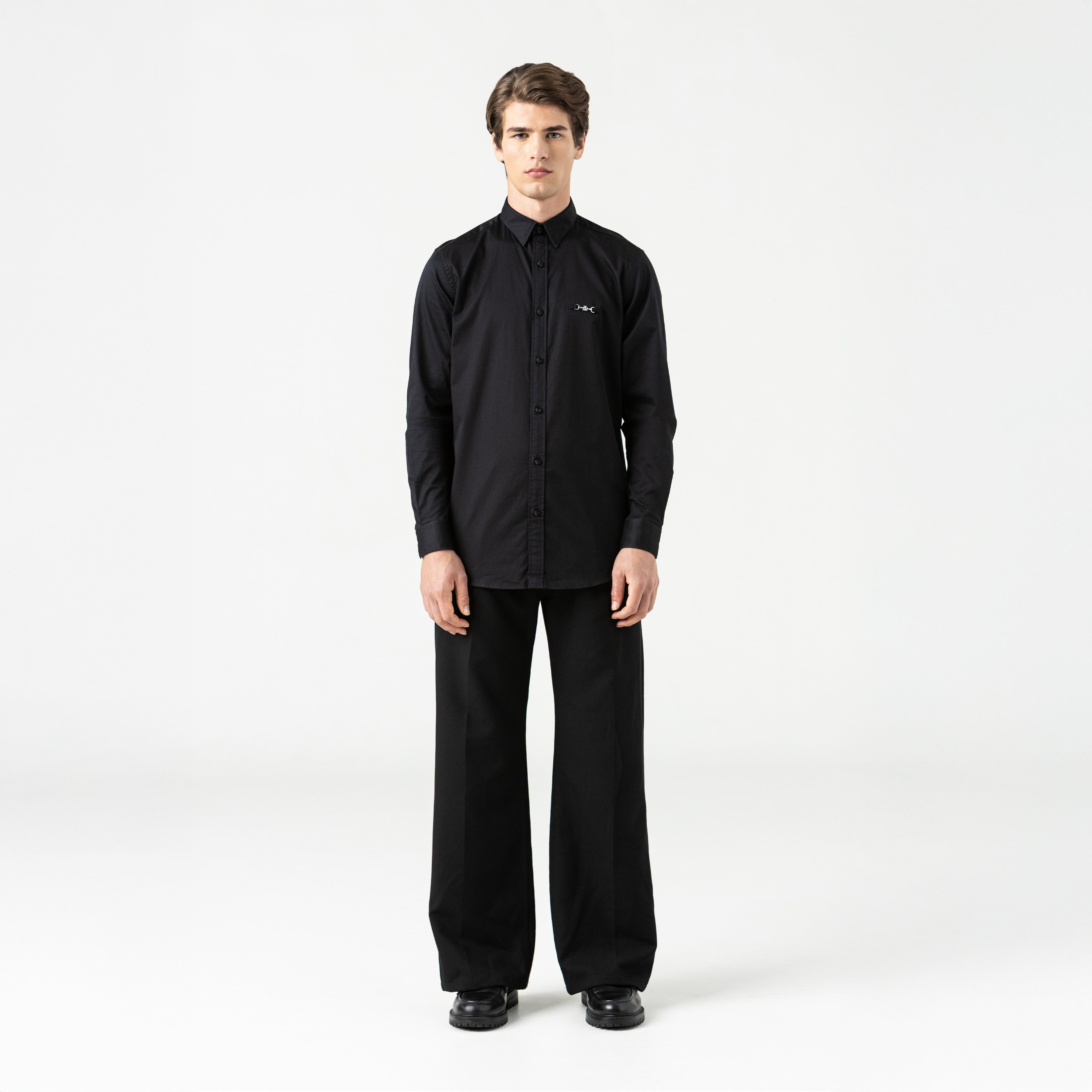 The Zar Shirt is distinguished by its refined design and beneficial finishes. Made from cotton with elastane, it offers a regular silhouette that balances comfort and style, accompanied by a soft and lightweight feel. A high-quality metallic appliqué on the front adds a modern accent, while the high-density print on the back reinforces its visual appeal. The signature logo embroidered inside the knob and the contrasting buttons enhance the tailoring details, reaffirming the garment's premium essence. Versatile and distinctive, it adapts to both a formal style and a casual look with personality.