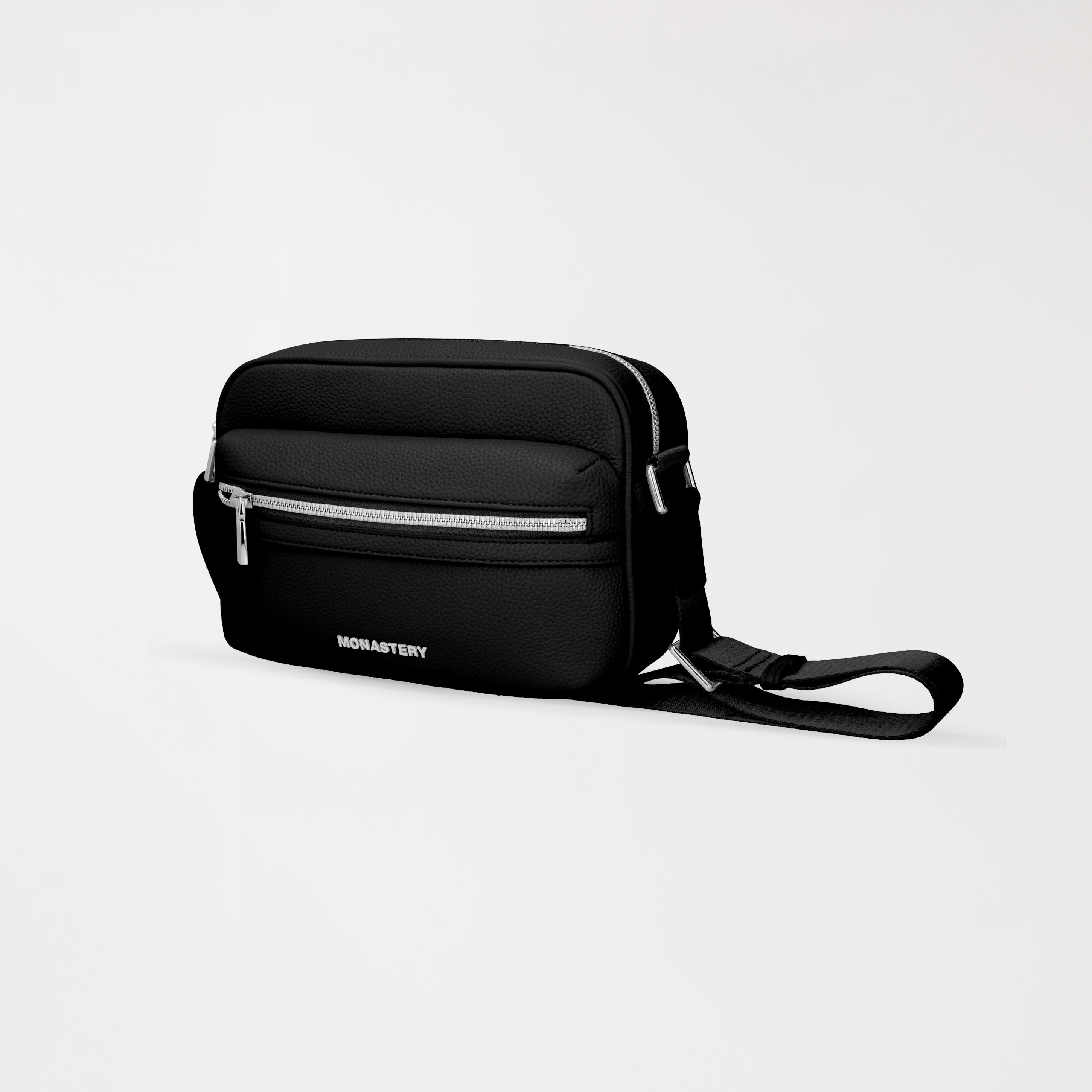 The contrasting straps allow for a comfortable fit, while the contrasting metallic hardware reinforces its exclusive character. On the front, the MONASTERY logo in metallic appliqué provides an elegant and distinctive visual signature that elevates the overall design of the piece.